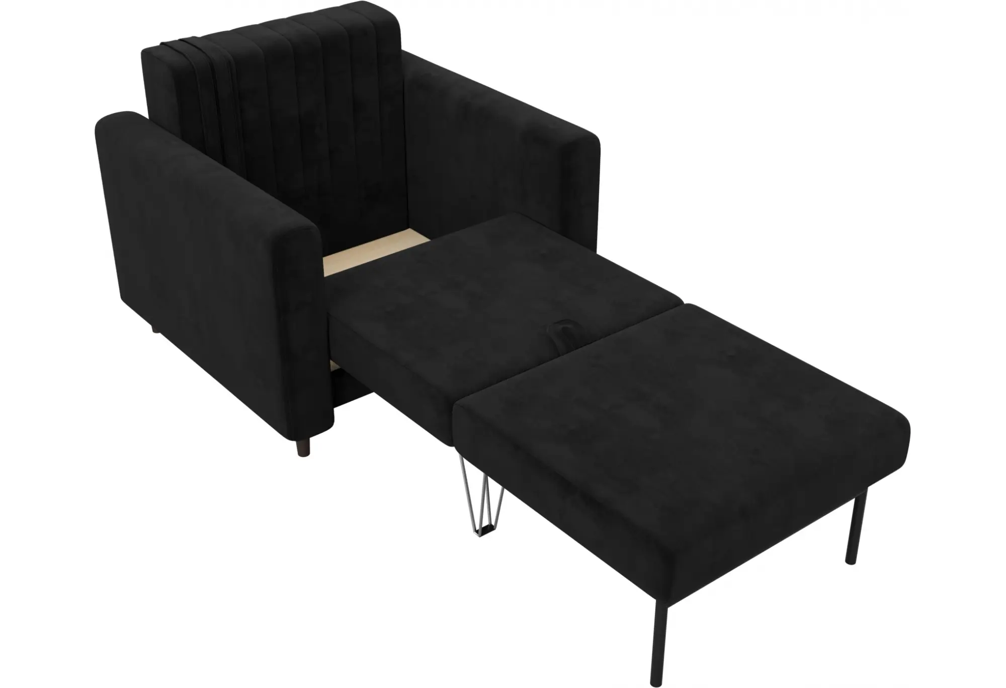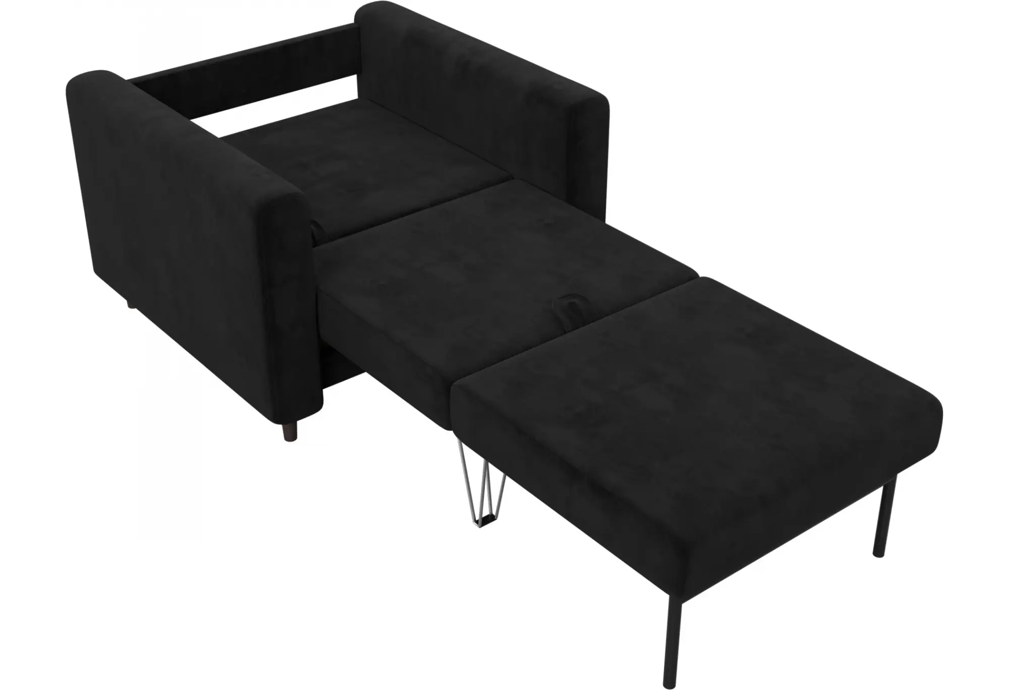 Кресло Лига-070 SEVEN 35 черного цвета — это сочетание стиля и функциональности. Выполнено из высококачественного велюра, оно добавит элегантности в вашу гостиную. Благодаря возможностям трансформации, кресло легко превращается в односпальную кровать, что делает его идеальным решением для экономии пространства.
