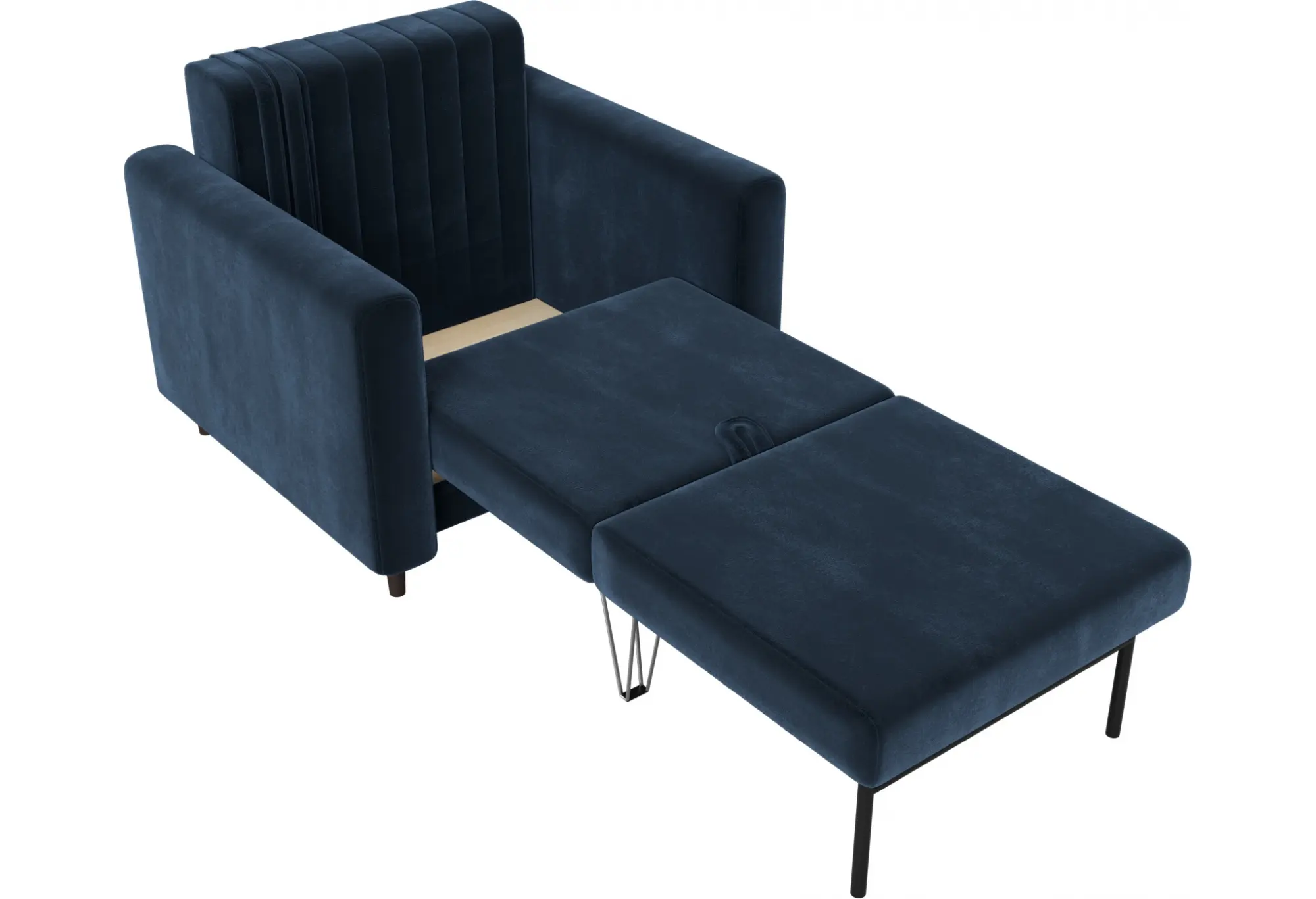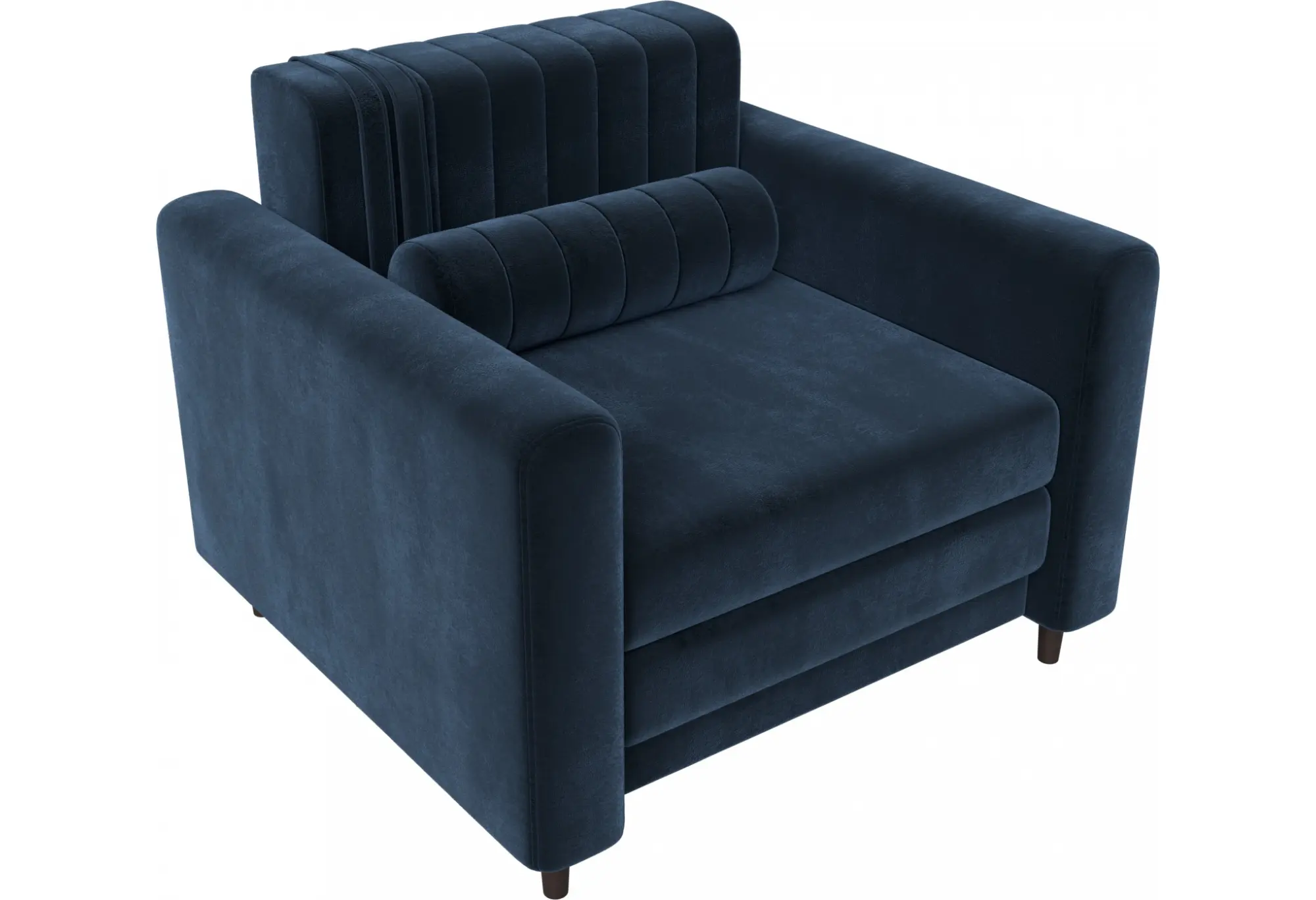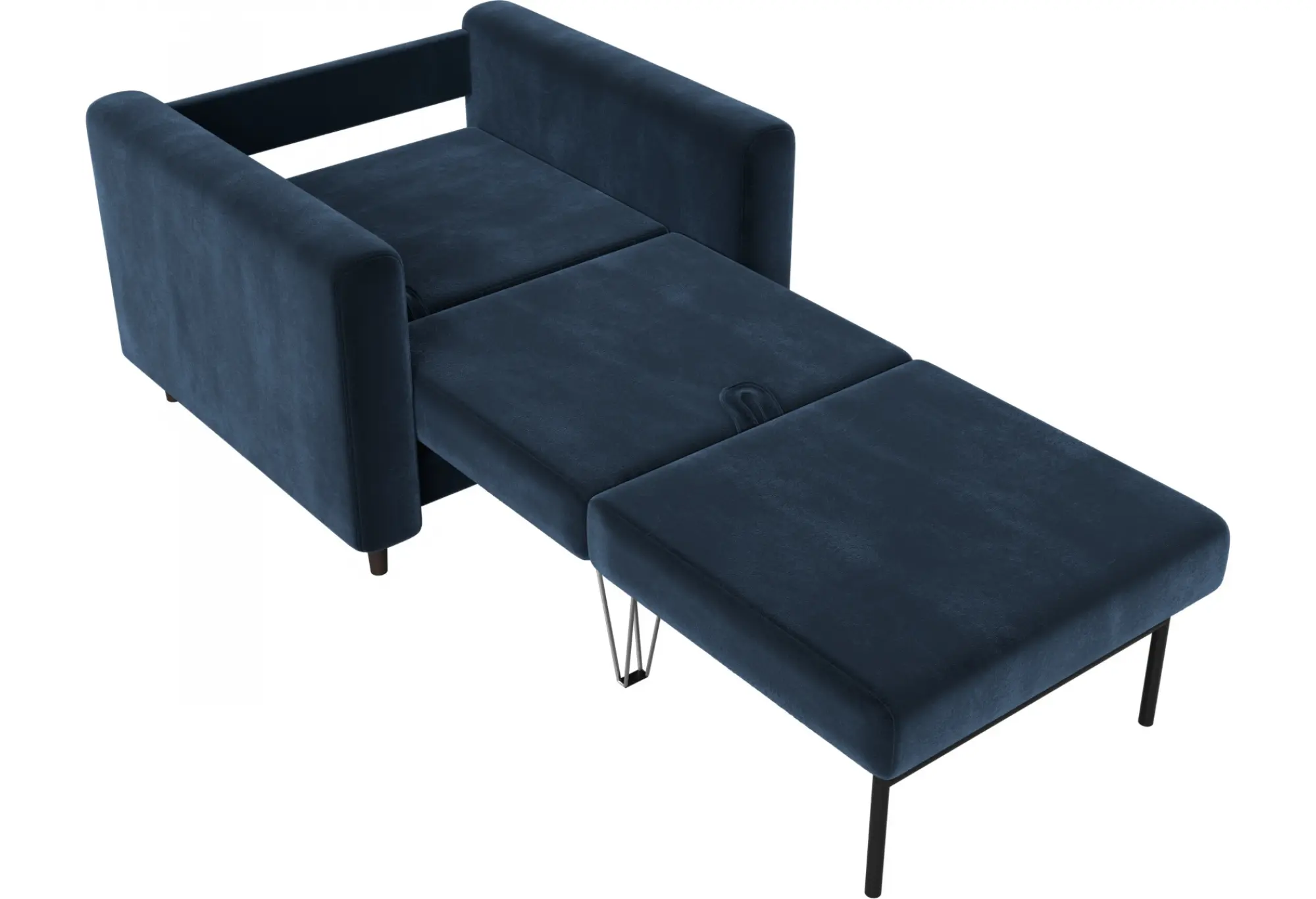 Кресло Лига-070 в синем велюре – это стильное и практичное решение для вашего интерьера. Его компактные размеры делают его идеальным выбором для небольших пространств, а раскладной механизм легко преобразует кресло в удобную односпальную кровать в случае необходимости. Прочные деревянные ножки не только обеспечивают надежность конструкции, но и свободный доступ для робот-пылесоса. Мягкие подлокотники добавляют комфорта, делая времяпровождение более приятным.