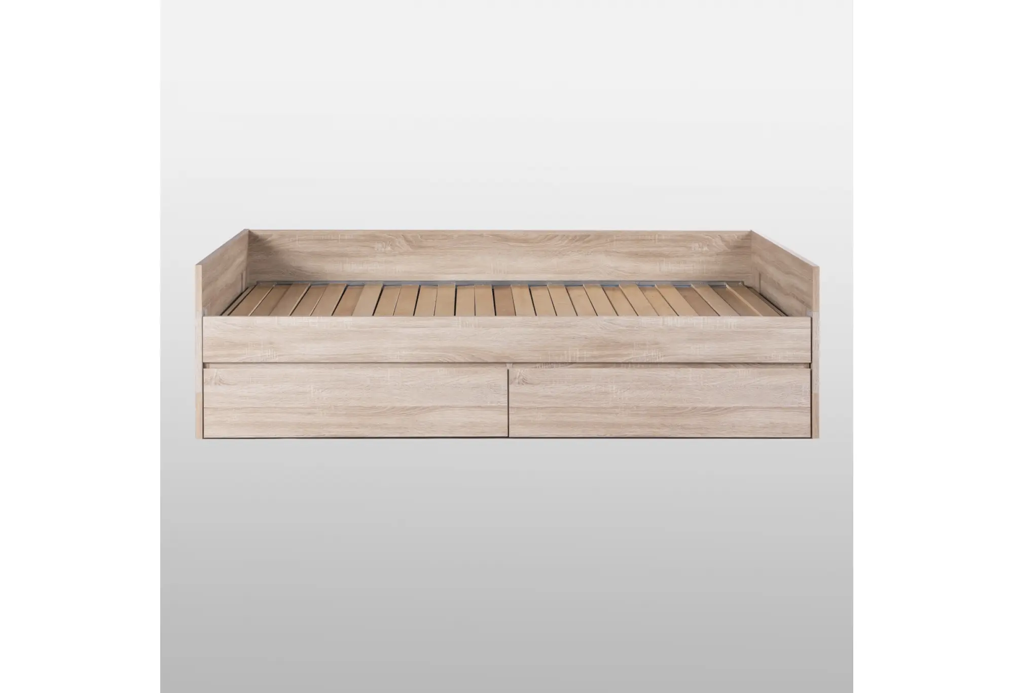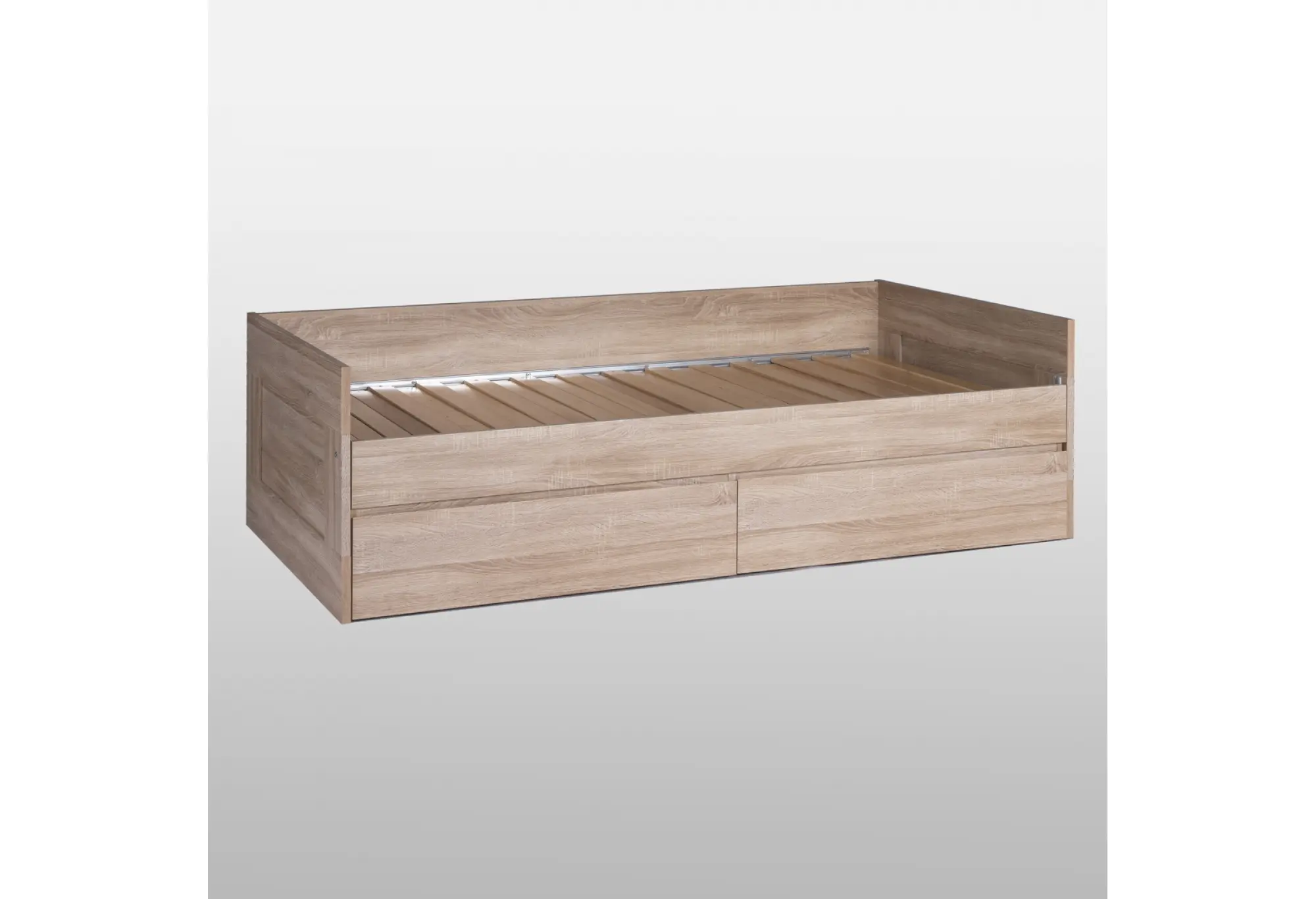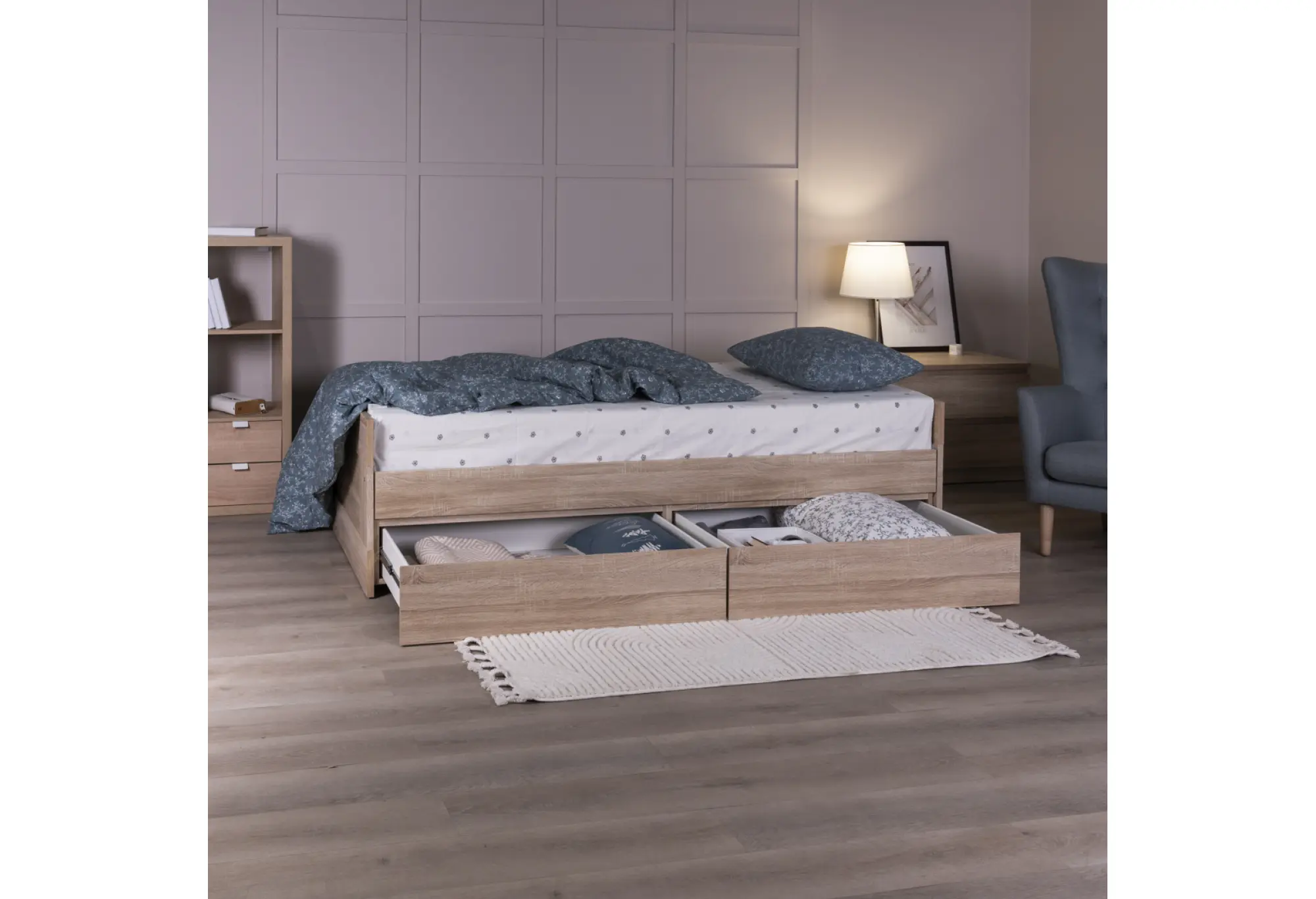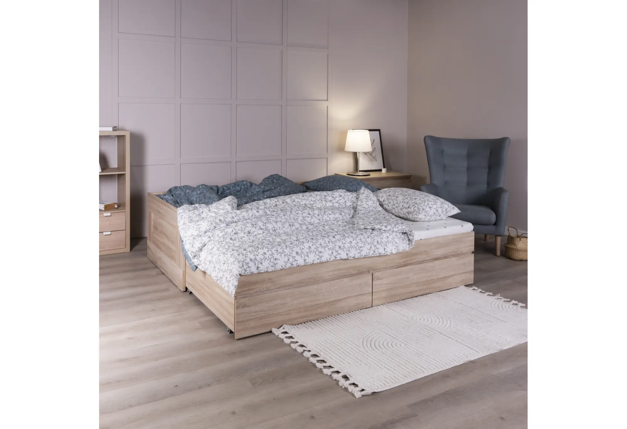 Два выдвижных ящика под кроватью позволяют удобно хранить постельное белье или другие вещи, освобождая дополнительное место в комнате. Ортопедическое основание способствует здоровому и комфортному сну, поддерживая правильное положение тела.
