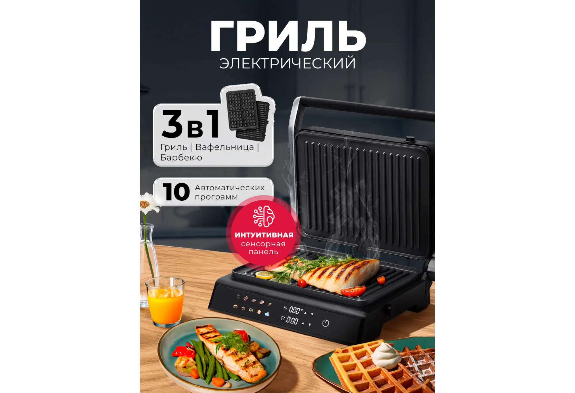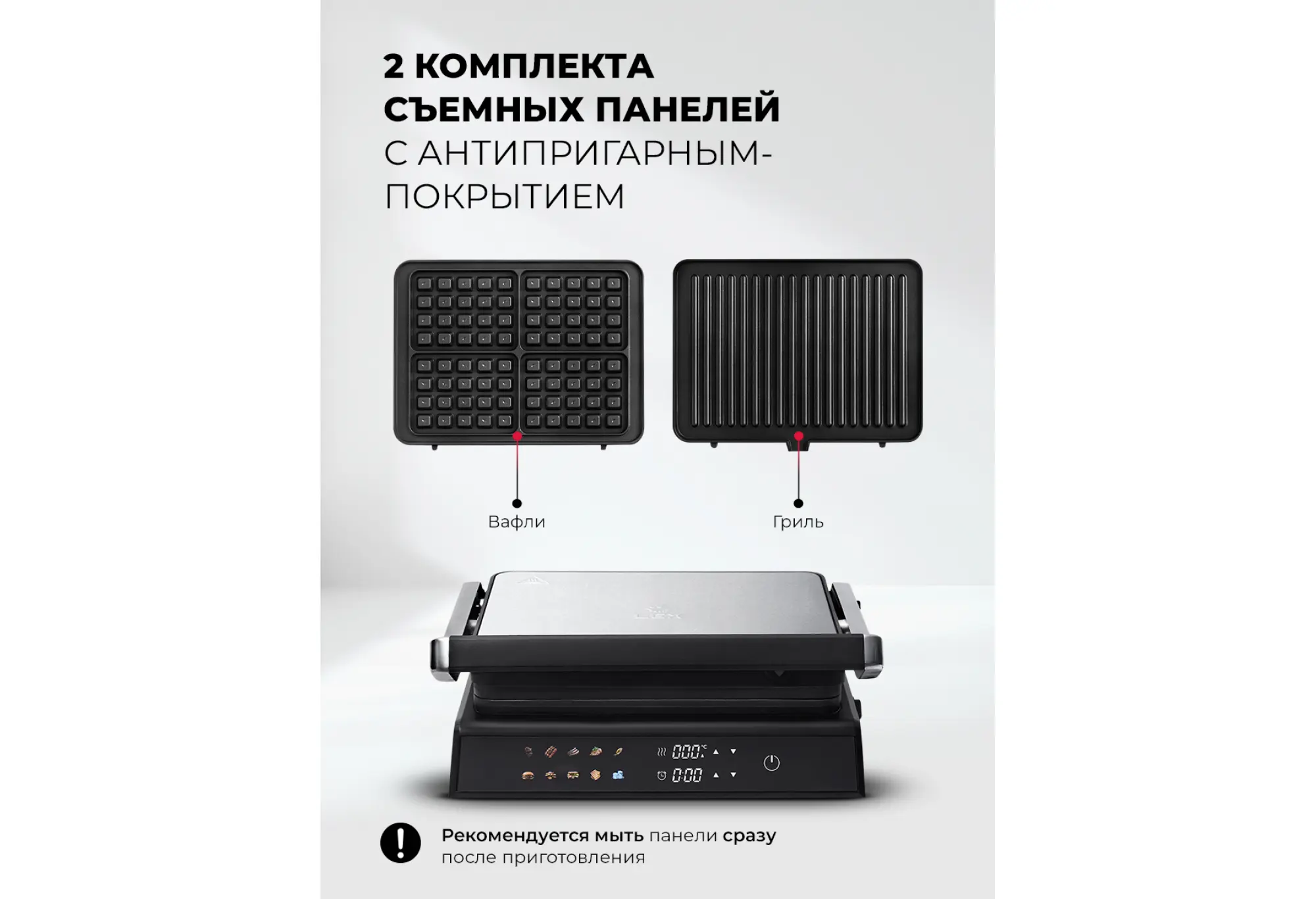 Гриль электрический со съемными панелями с вафельницей