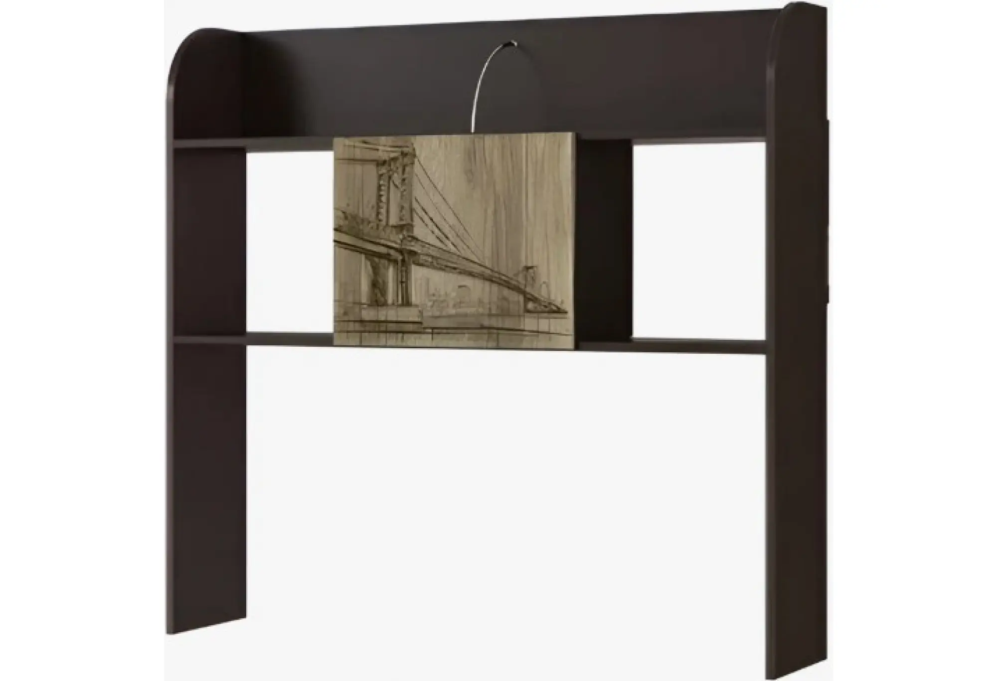 Сочетание декоров «Ясень шимо» и «Дуб сонома» делает надстройку визуально лёгкой и современной. Нейтральная, тёплая цветовая гамма гармонично вписывается в большинство интерьеров – от детской и подростковой до домашнего кабинета. Фасад с фотопечатью придаёт рабочему месту индивидуальность и становится выразительным акцентом над столом.