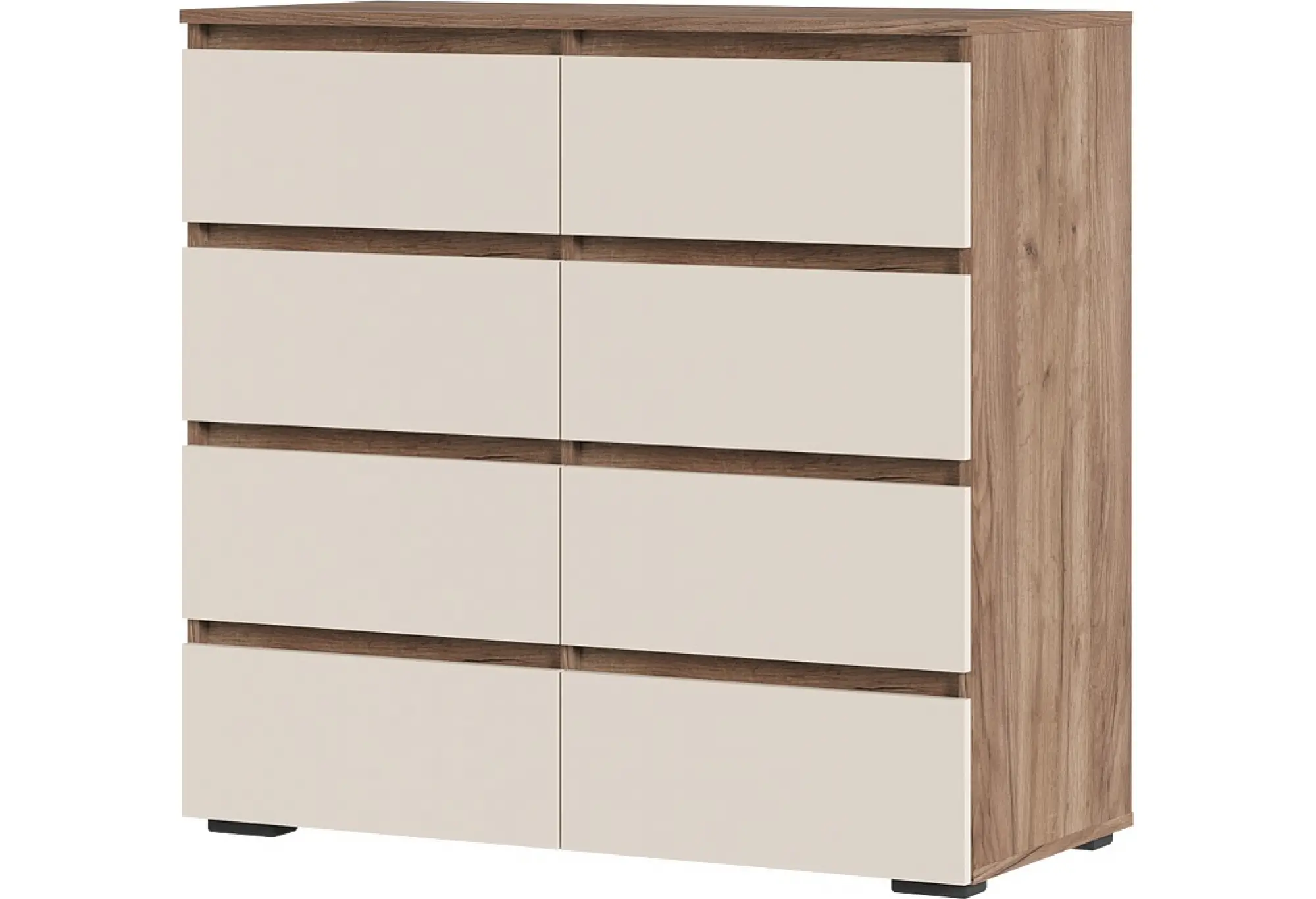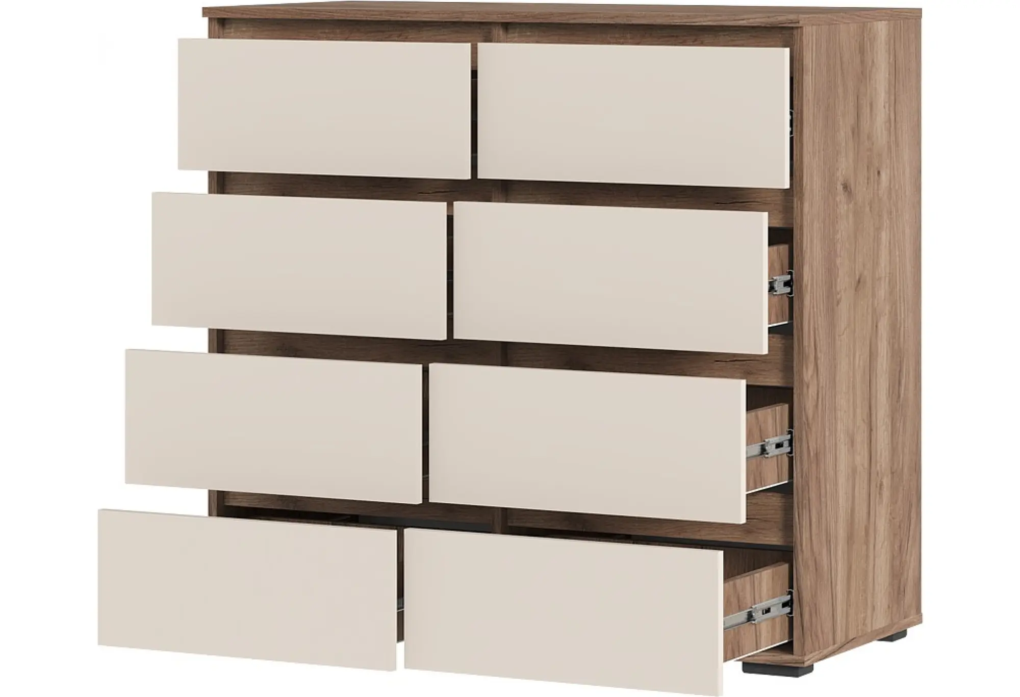 Просторные ящики на шариковых направляющих обеспечивают легкость и плавность открывания, предлагая достаточно места для хранения. Надежные пластиковые опоры высотой 20 мм гарантируют устойчивость и долговечность конструкции.