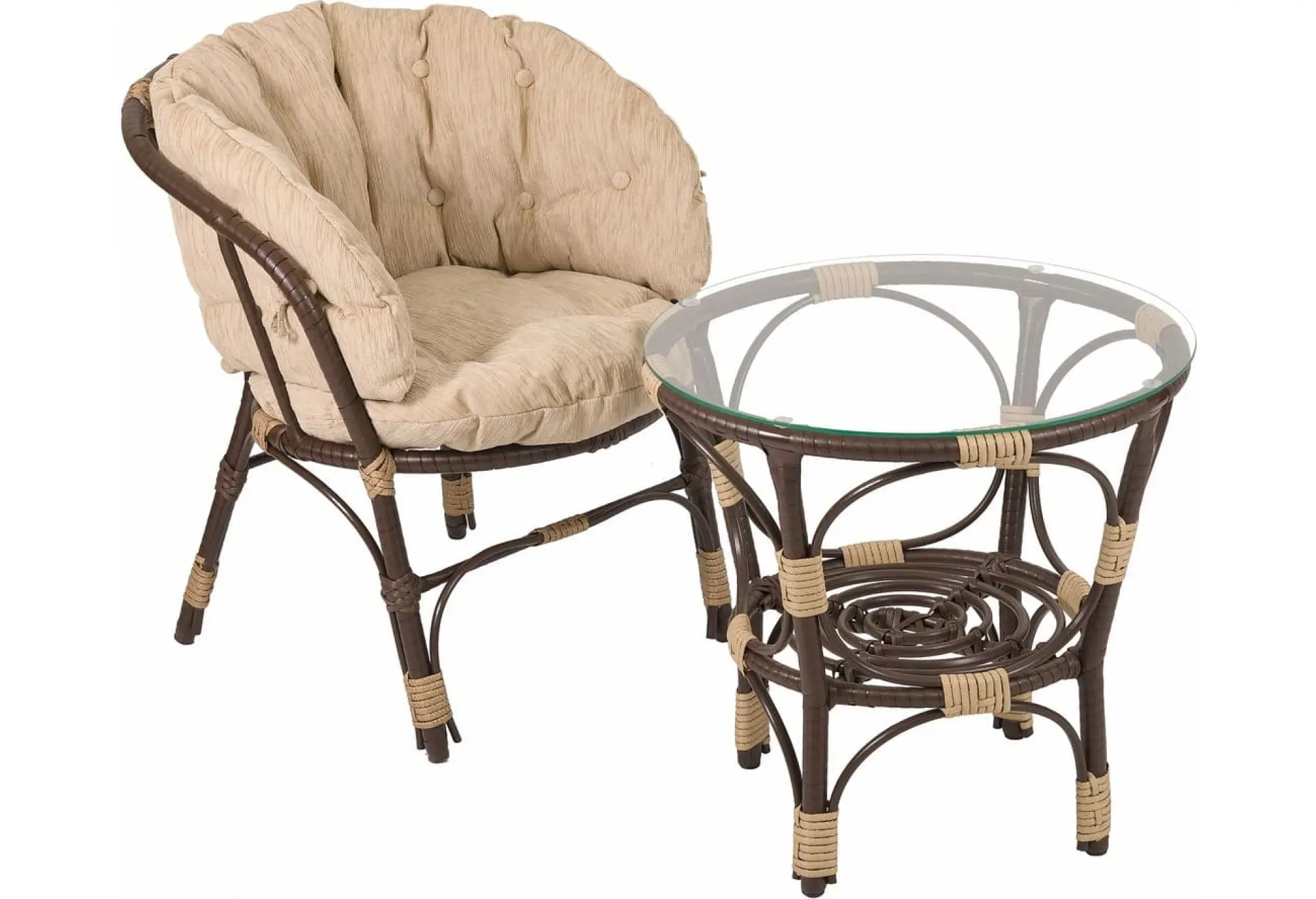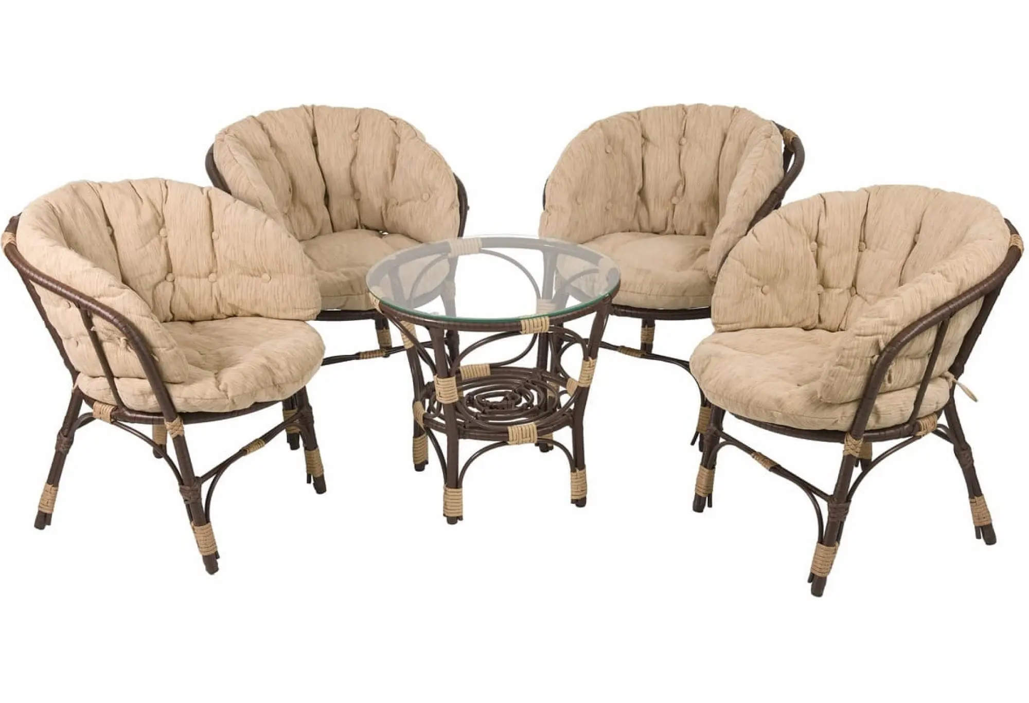 Комплект мебели из искусственного ротанга с бежевыми подушками