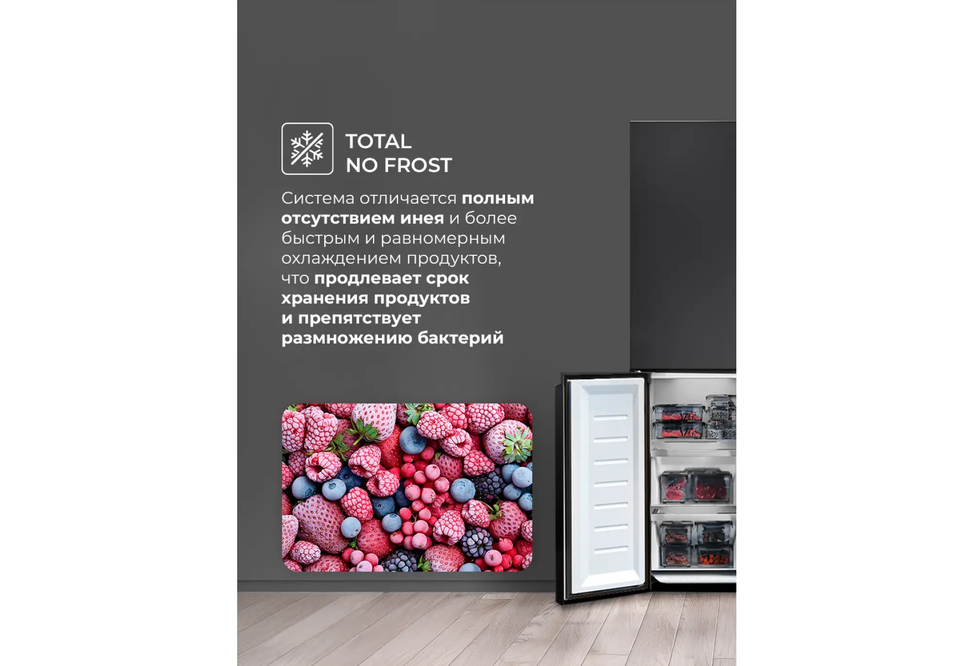 - Система No Frost в холодильной и морозильной камерах