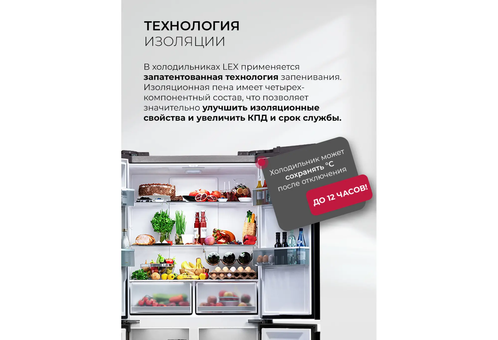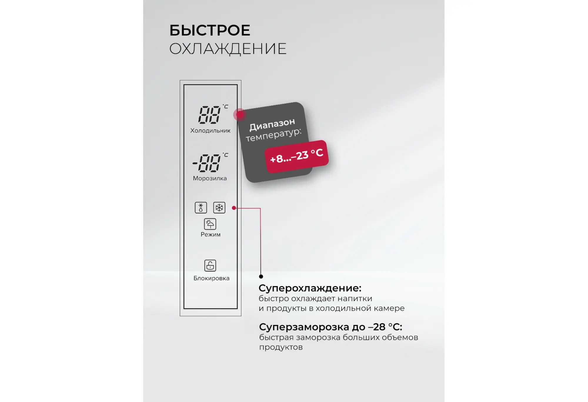 - Полезные режимы - «Отпуск», «Суперзаморозка», «Суперохлаждение»