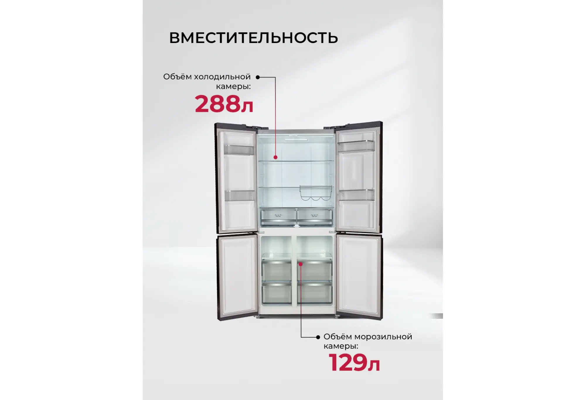 Преимущества:- Вместительный объём 450 л и формат Cross Door