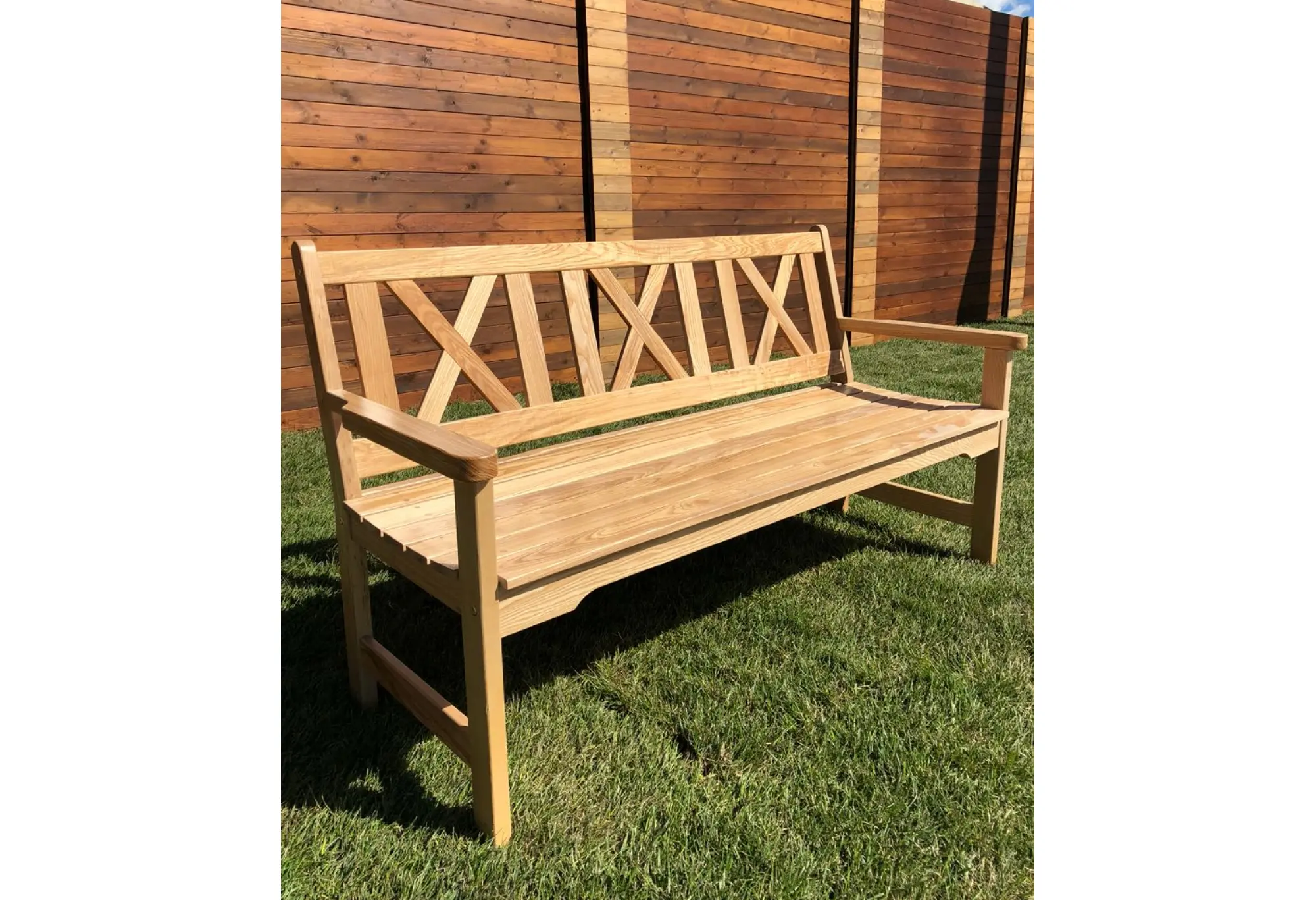 Классическая садовая скамья для 2-х человек. Садовая мебель приобретается для отдыха и обязана располагать к нему. Модели с анатомическими выверенными деталями конструкций в прямом смысле помогут расслабиться. Достаточно подлокотников, расположенных на комфортном уровне — безмятежный отдых на пару часов обеспечен. Изделие неокрашенное.