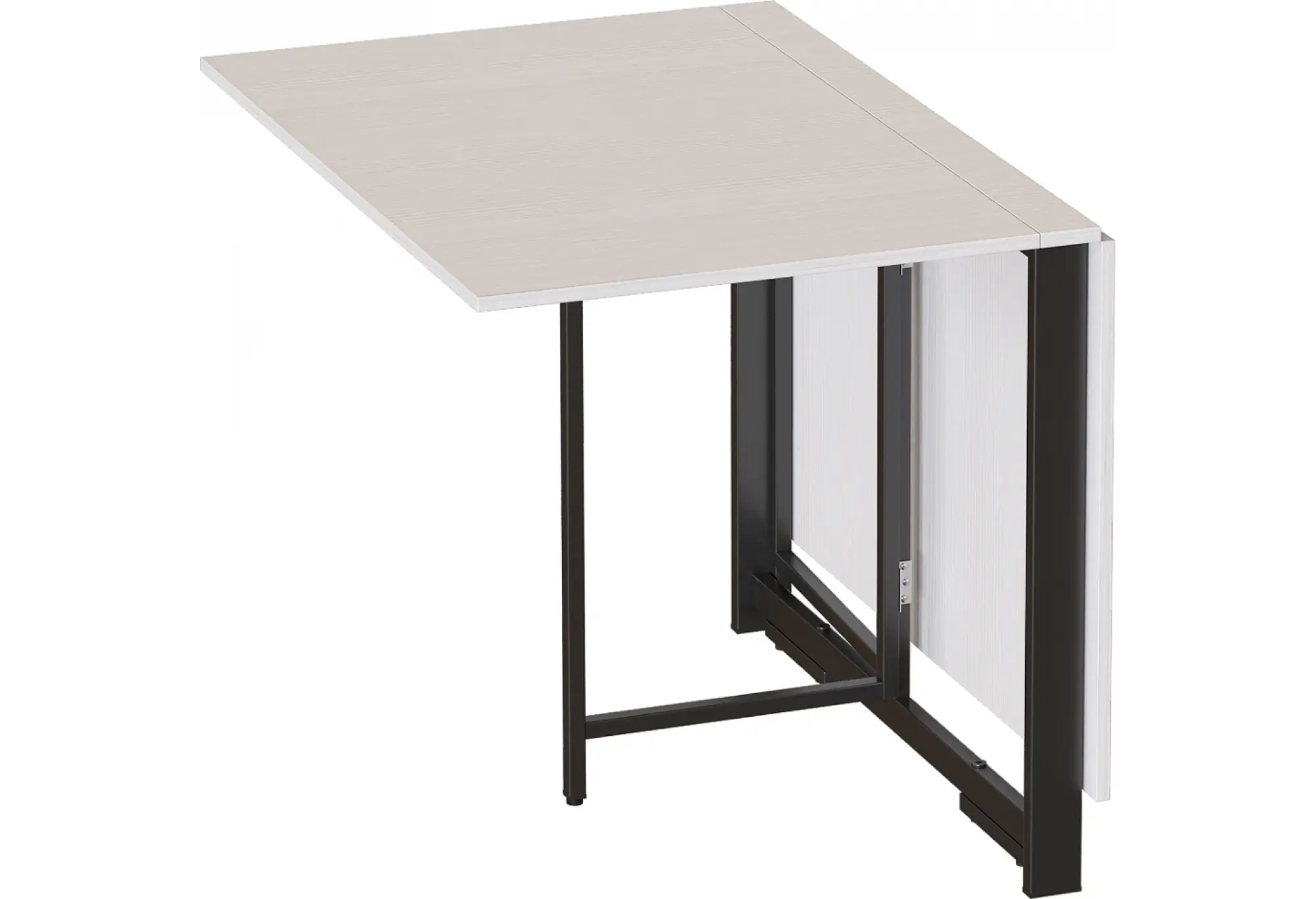 Раскладной стол "Брион 2" со столешницей из ЛДСП. Опорой для столешницы служит металлокаркас. В конструкции изделия предусмотрены регулируемые по высоте опоры.