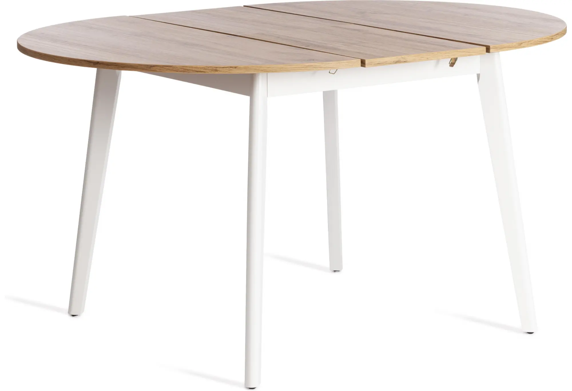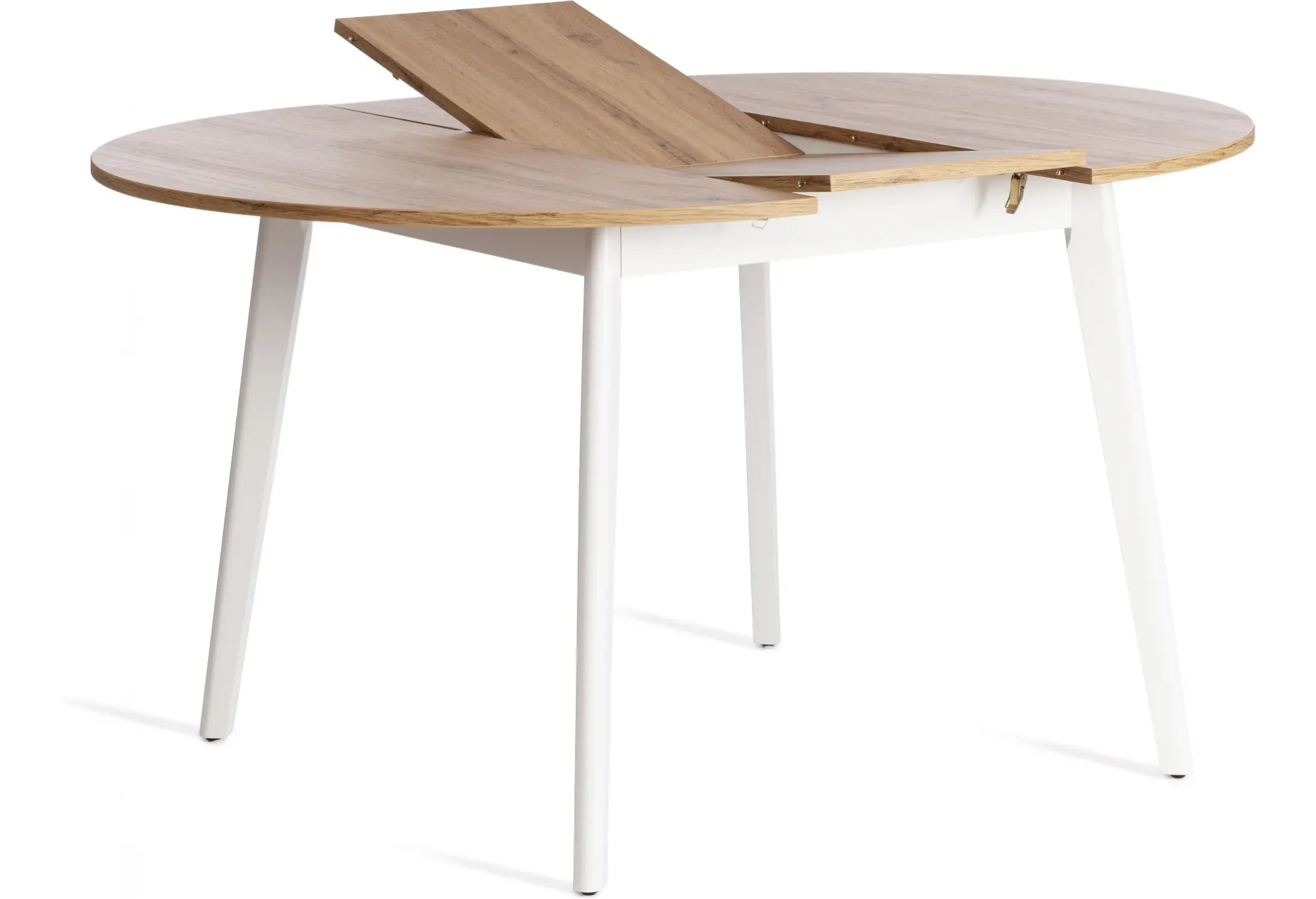 Одновременно простой и невероятно стильный обеденный стол SVELTO поможет создать уют и комфорт в вашем доме. Круглая столешница изготовлена из ЛДСП 18 мм, кромка выполнена из ABS 2мм. Такая поверхность обладает отличными эксплуатационными качествами, не требует сложного ухода, выдерживает воздействие жидкости и тепла, устойчива к возникновению порезов и царапин. Царговый пояс выполнен из ЛДСП 18 мм, кромка из ABS 0,5мм. Удобная конструкция стола с раздвижным механизмом бабочка поможет грамотно организовать пространство и комфортно разместить от четырех до шести человек. Модель не имеет острых углов, что является неоспоримым преимуществом при выборе предмета интерьера для дома. Ножки из массива березы основательны и надежны. Обеденный стол SVELTO удачно впишется в интерьер квартиры, загородного дома, кафе или ресторана. Контрастное сочетание белого основания и столешницы цвета Дуб Вотан выглядит стильно и непринужденно. Уникальная модель впечатлит своей прочностью, простотой в уходе и долговечностью, придаст помещению элегантность, изысканность и акцентирует внимание гостей на обеденной зоне. Стол поставляется в разобранном виде, необходима простая сборка по прилагаемой инструкции.