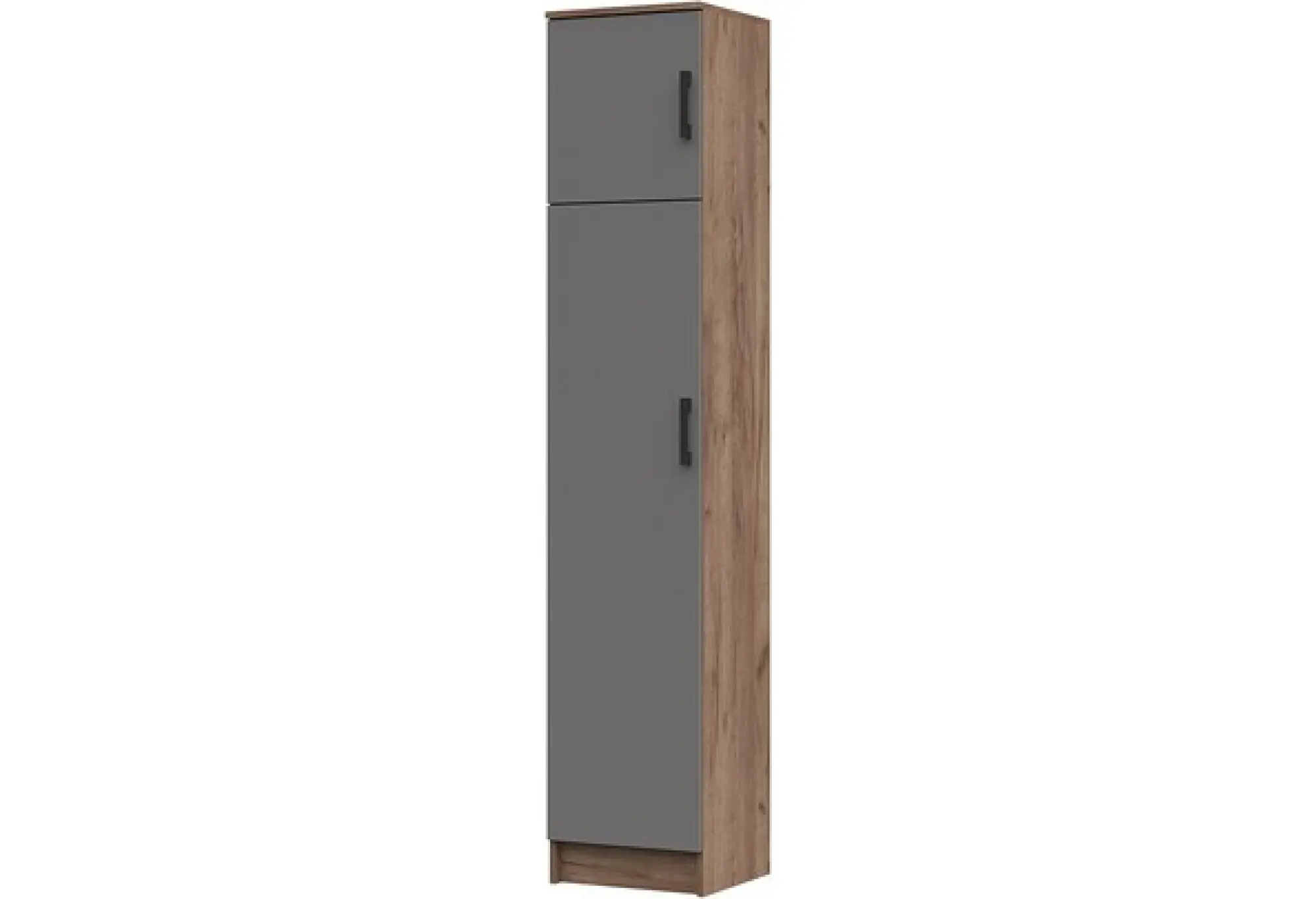 Узкий пенал с полками станет практичным решением для хранения вещей в любой комнате — от спальни до прихожей. Высокий корпус позволяет рационально использовать вертикальное пространство, а компактная ширина делает модель удобной для небольших помещений или узких ниш. Внутри расположены полки, на которых удобно размещать одежду, белье, документы, бытовые мелочи или текстиль.