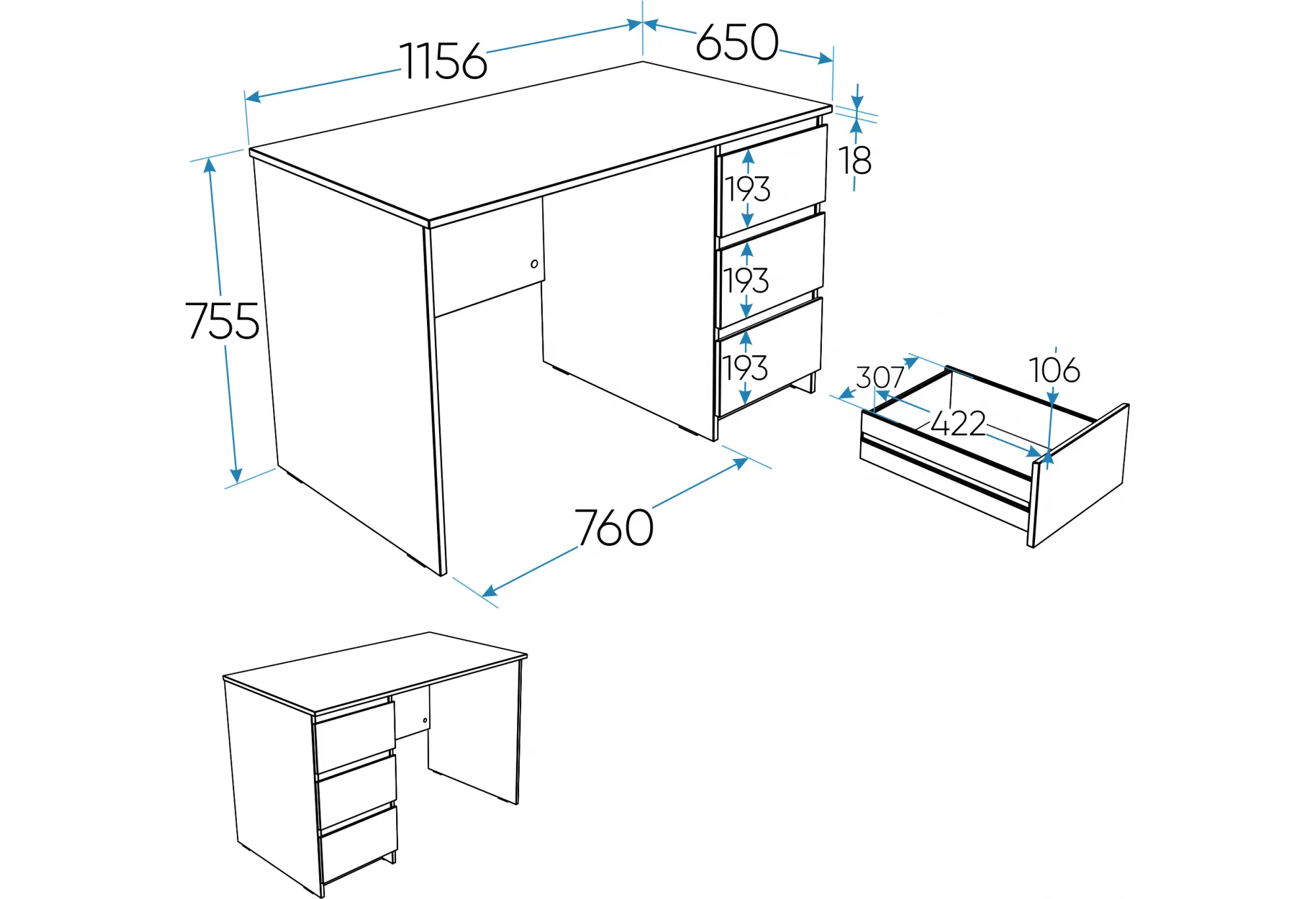 Оптимальные размеры 1156x650x750 мм обеспечивают достаточно рабочей поверхности, сохраняя компактность. Данный стол идеально подходит как для дома, так и для офиса, где важны как стиль, так и практичность.