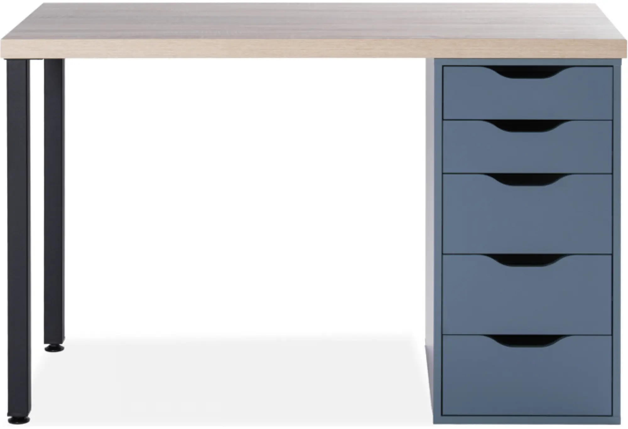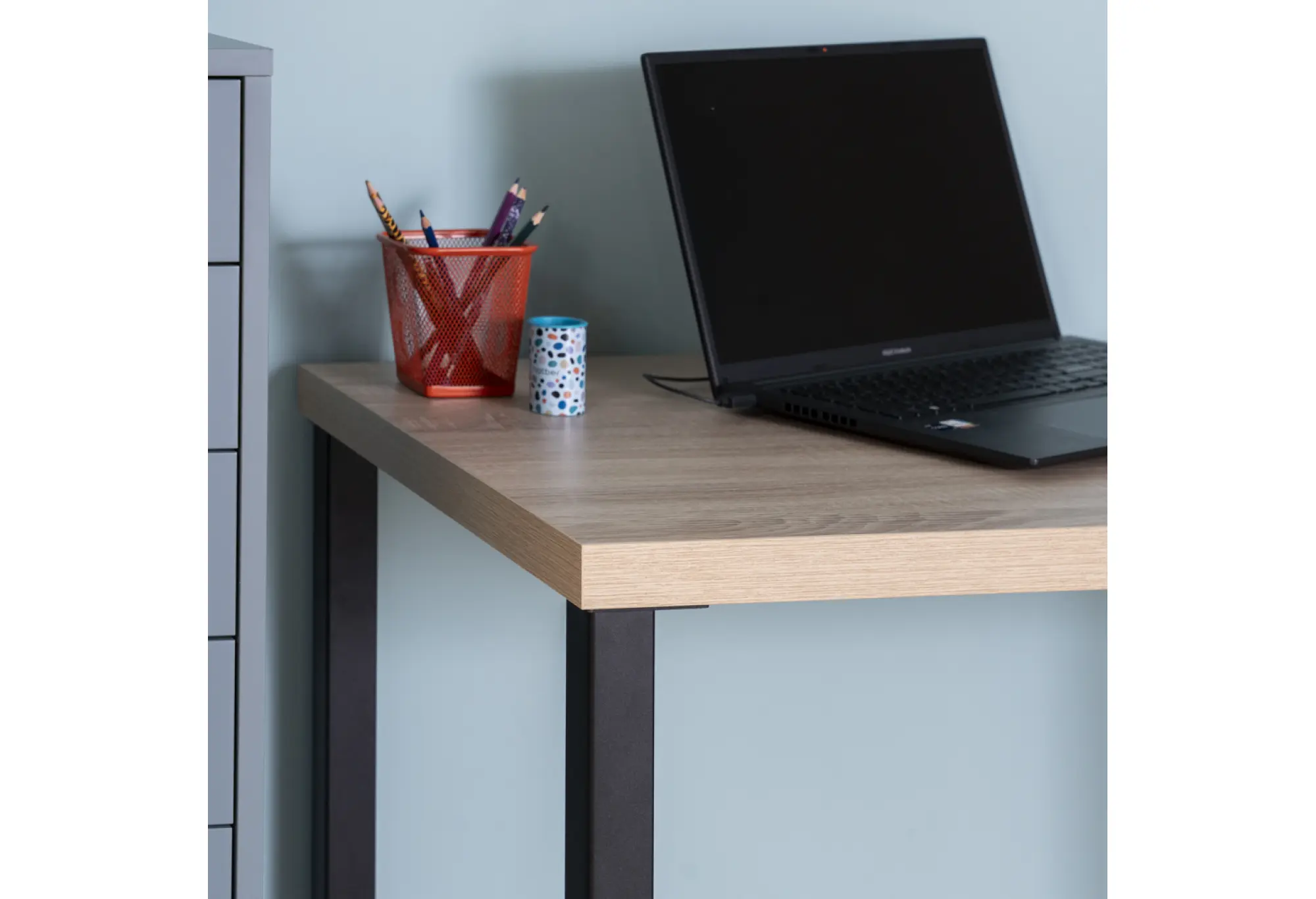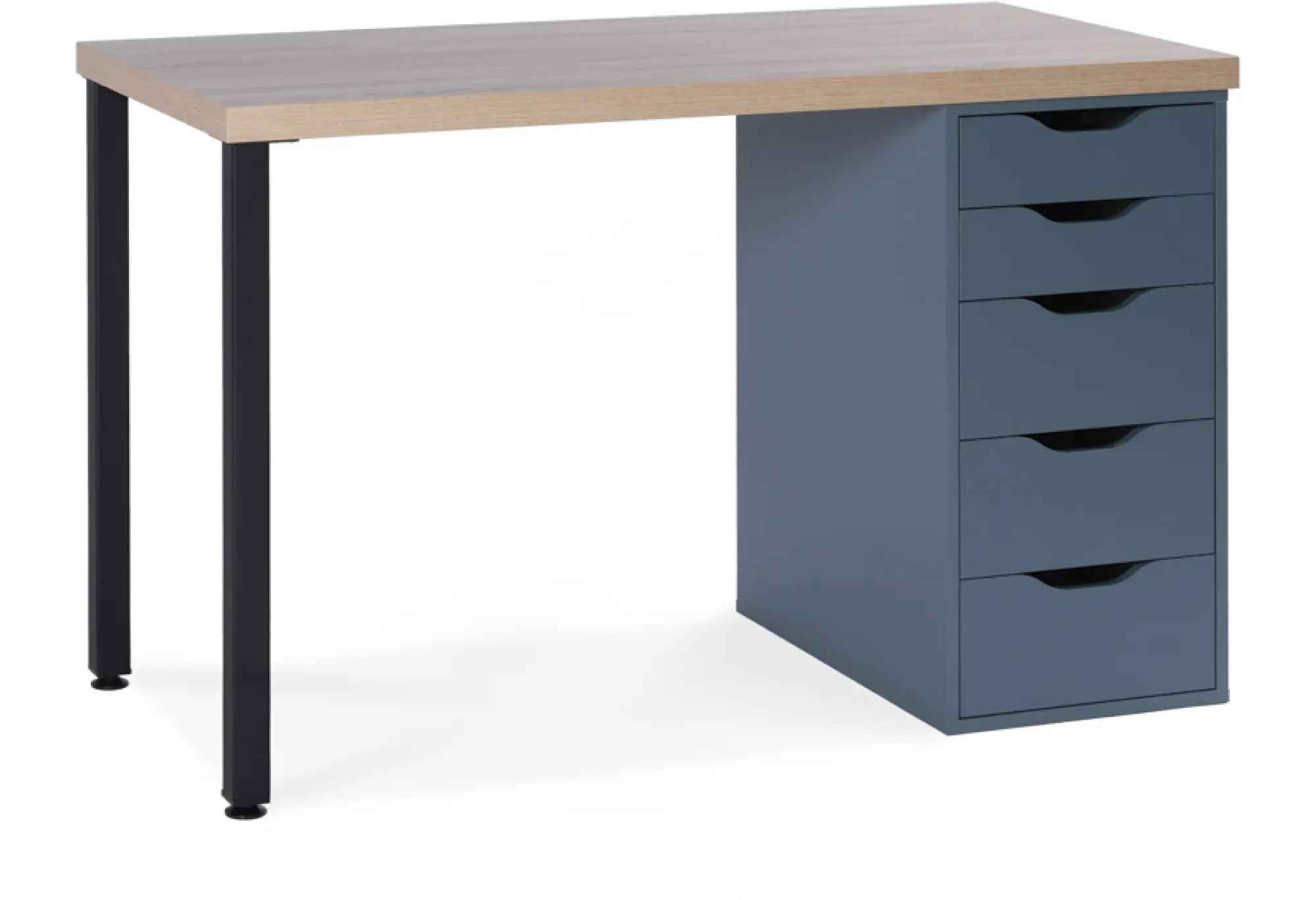 S01378 Ингар 1/5Т стол письменный 120x75x55, дуб беленый/серо-бирюзовый/черный