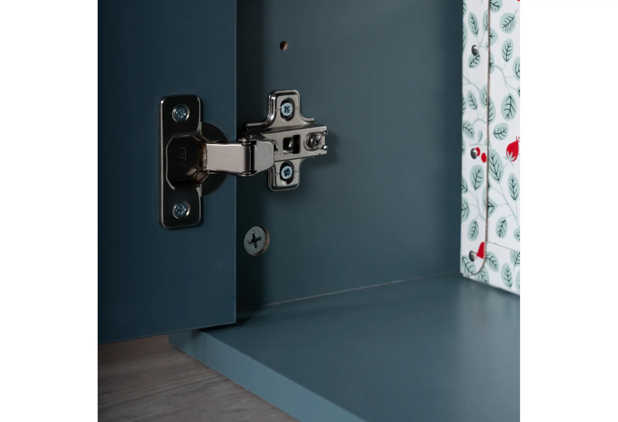 - Современное цветовое сочетание дуба и серо-бирюзового оттенка
