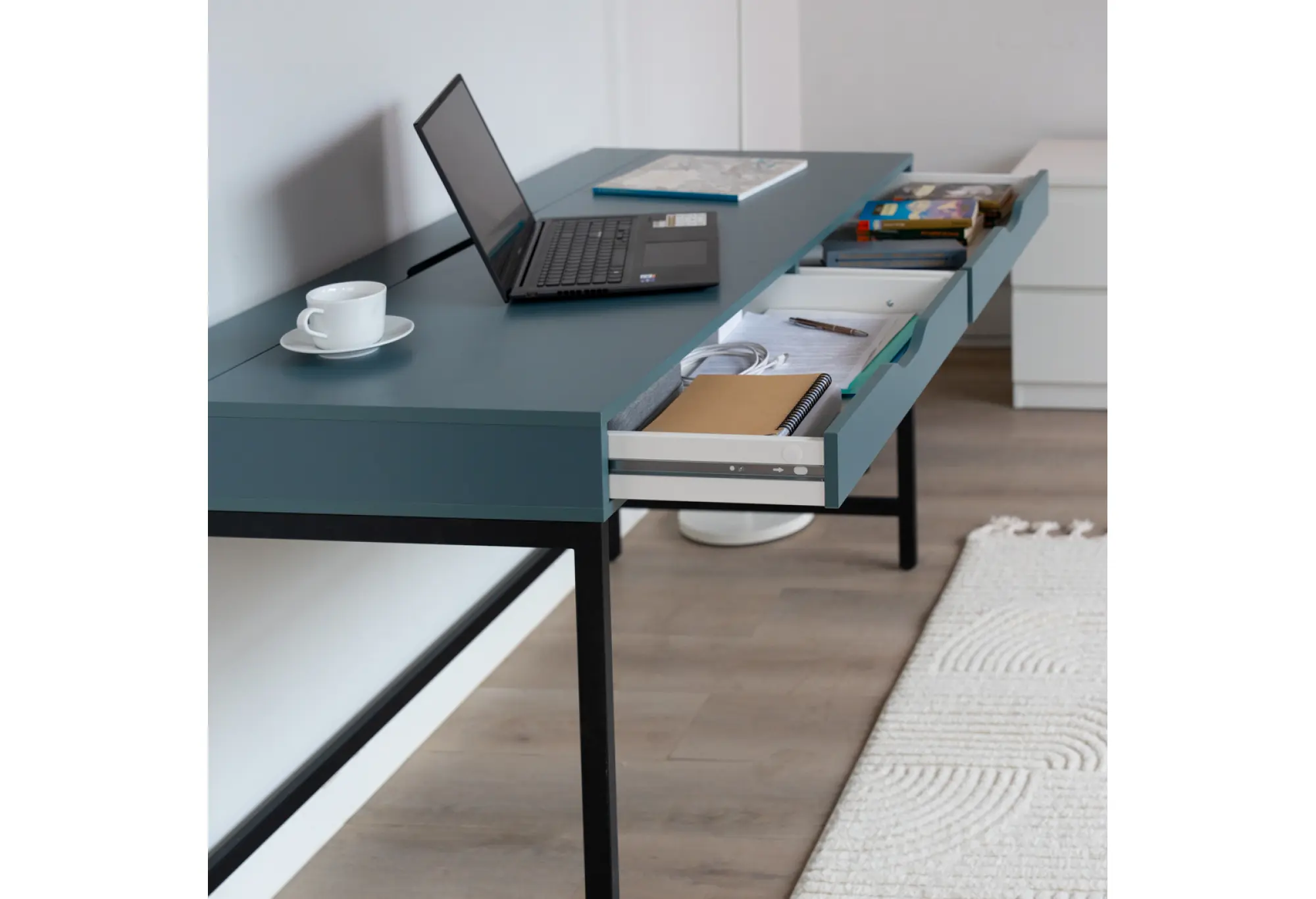 Комод Ингар Д 132, 132x58x76, цвет серо-бирюзовый/черный. Гарантийный срок для жилых и общественных помещений 24 месяца.