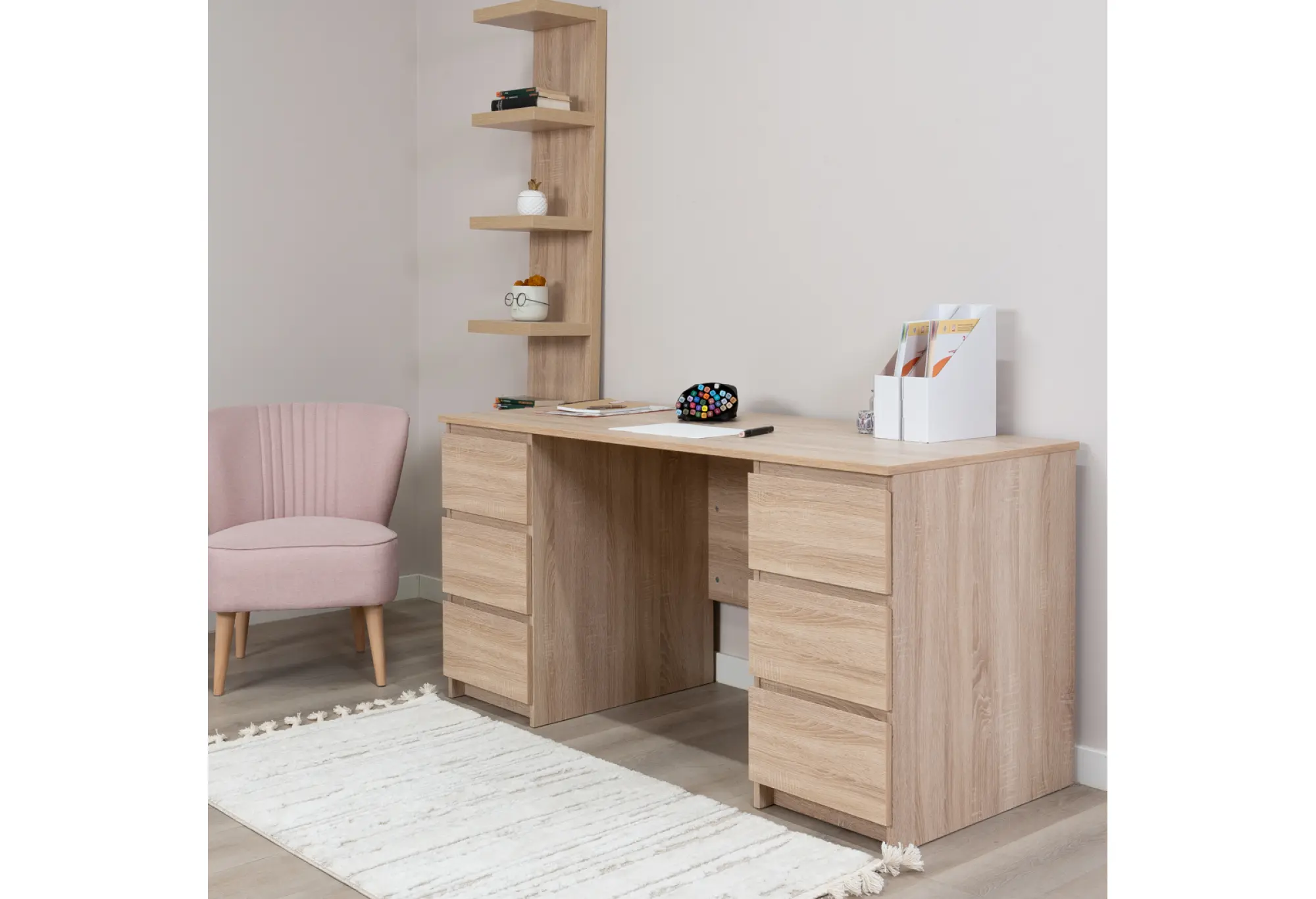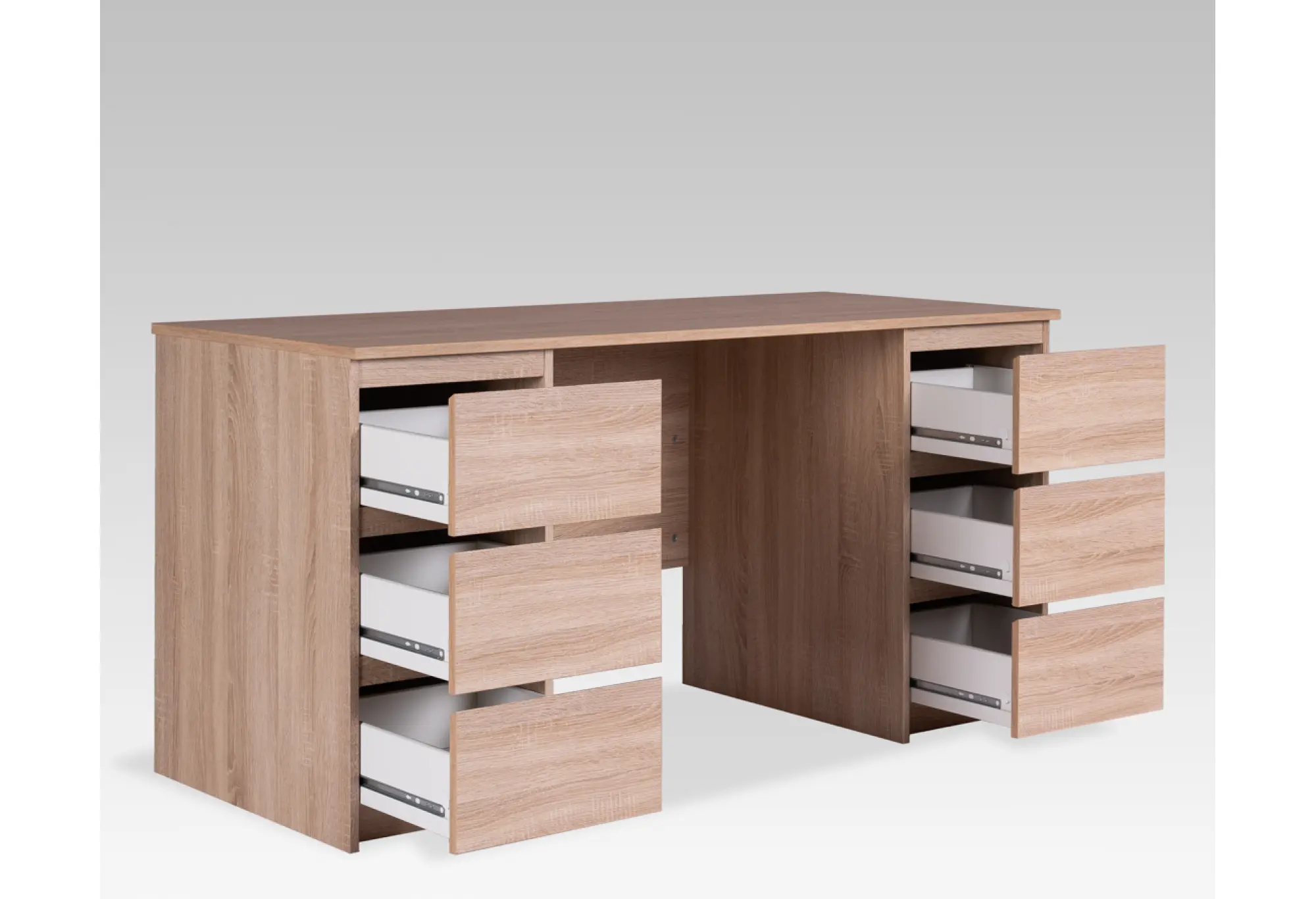 Стол КАСТОР письменный двухтумбовый с шестью ящиками, цвет Дуб Сонома