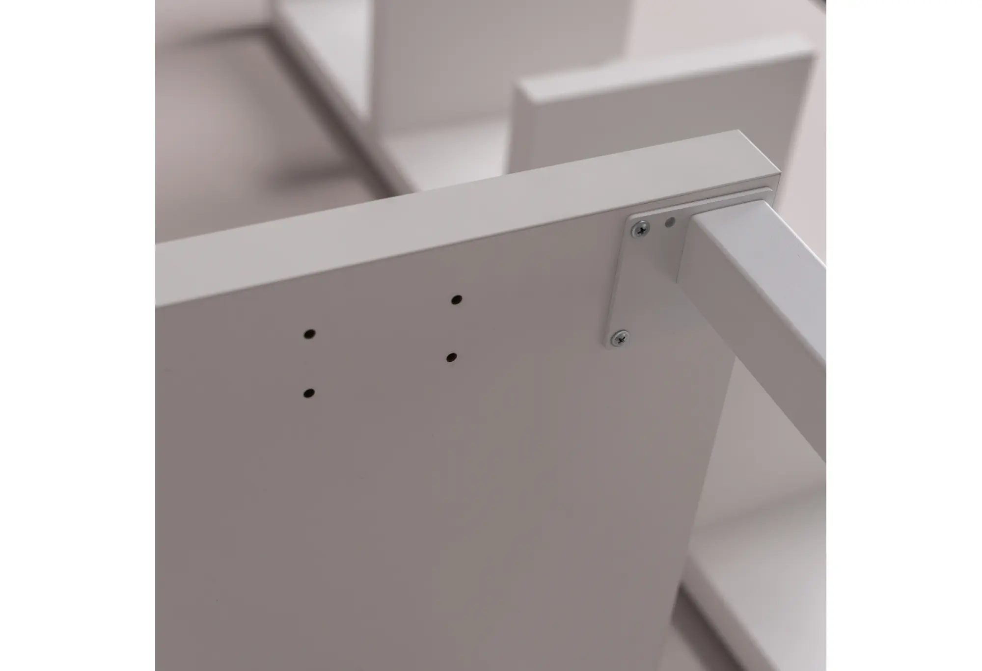 Столешница выполнена по технологии тамбурат - рамка из ДСП и HDF с сотовым заполнением делает конструкцию легче без ущерба для прочности. Это современный подход, который широко применяется в мебели скандинавского направления. Белый цвет добавляет визуальной легкости и помогает поддерживать аккуратный, нейтральный интерьер дома или офиса.
