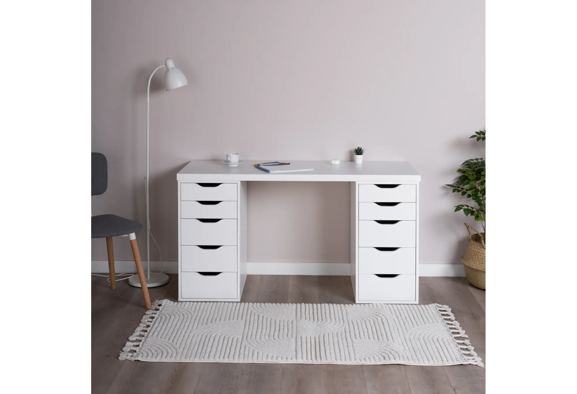 Стол письменный Ингар белый, 140x75, с двумя тумбами