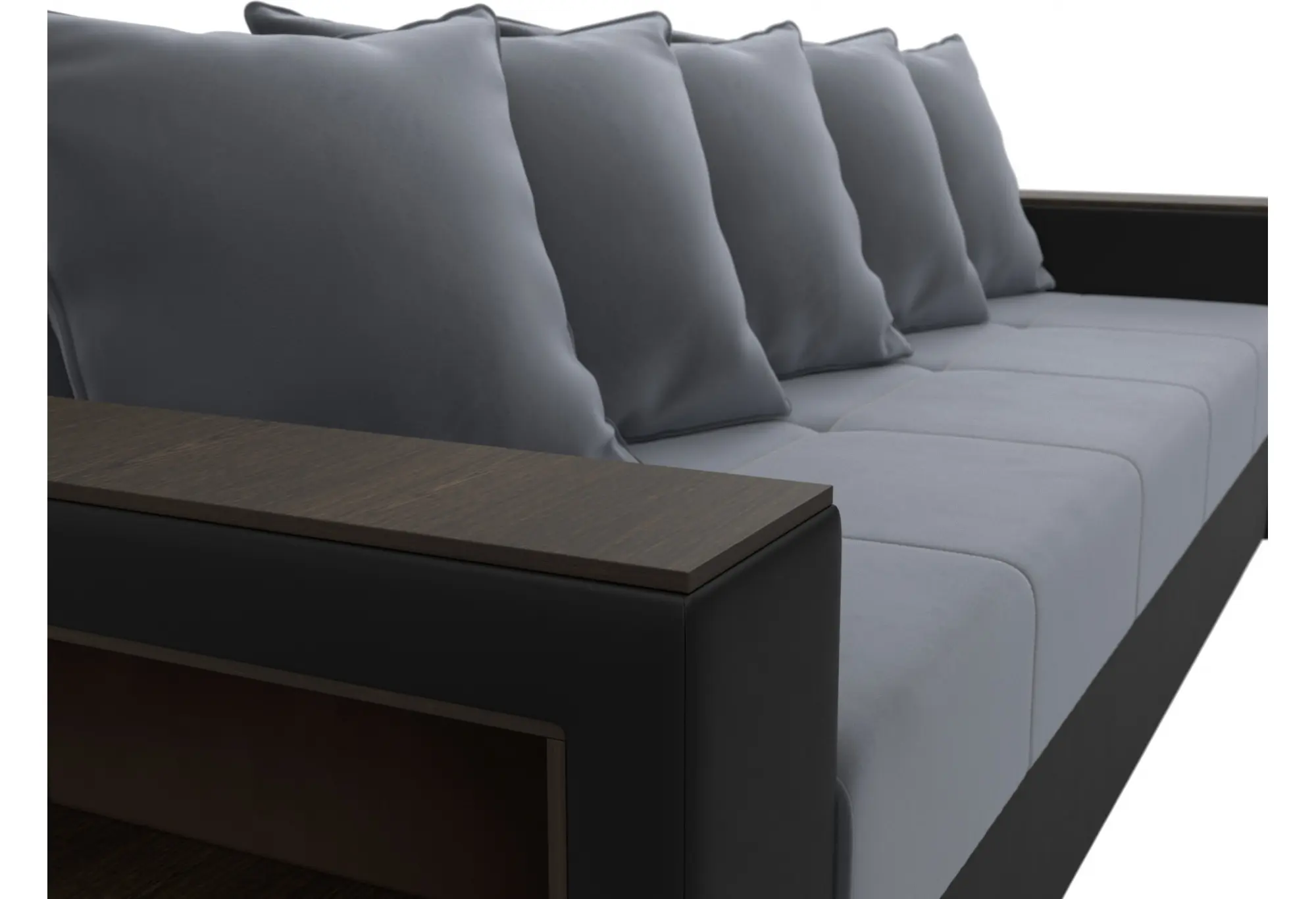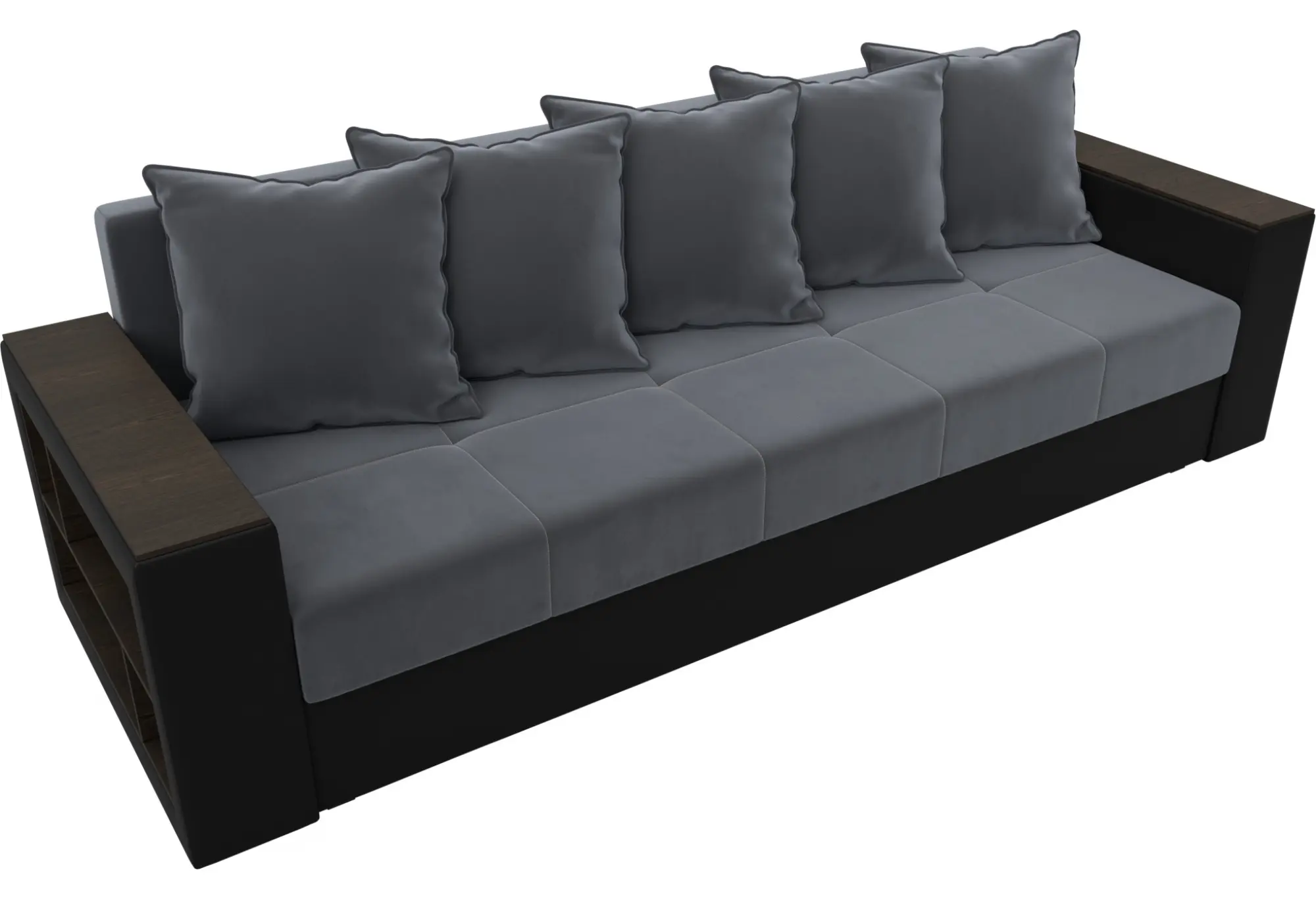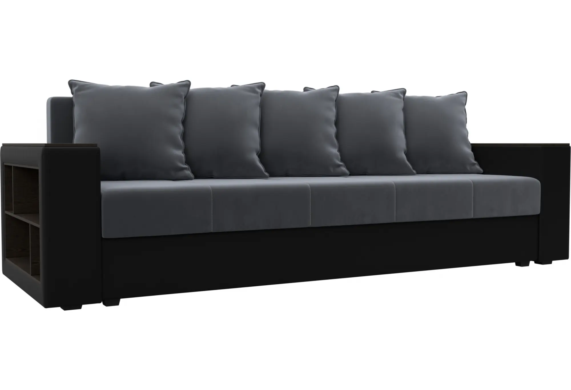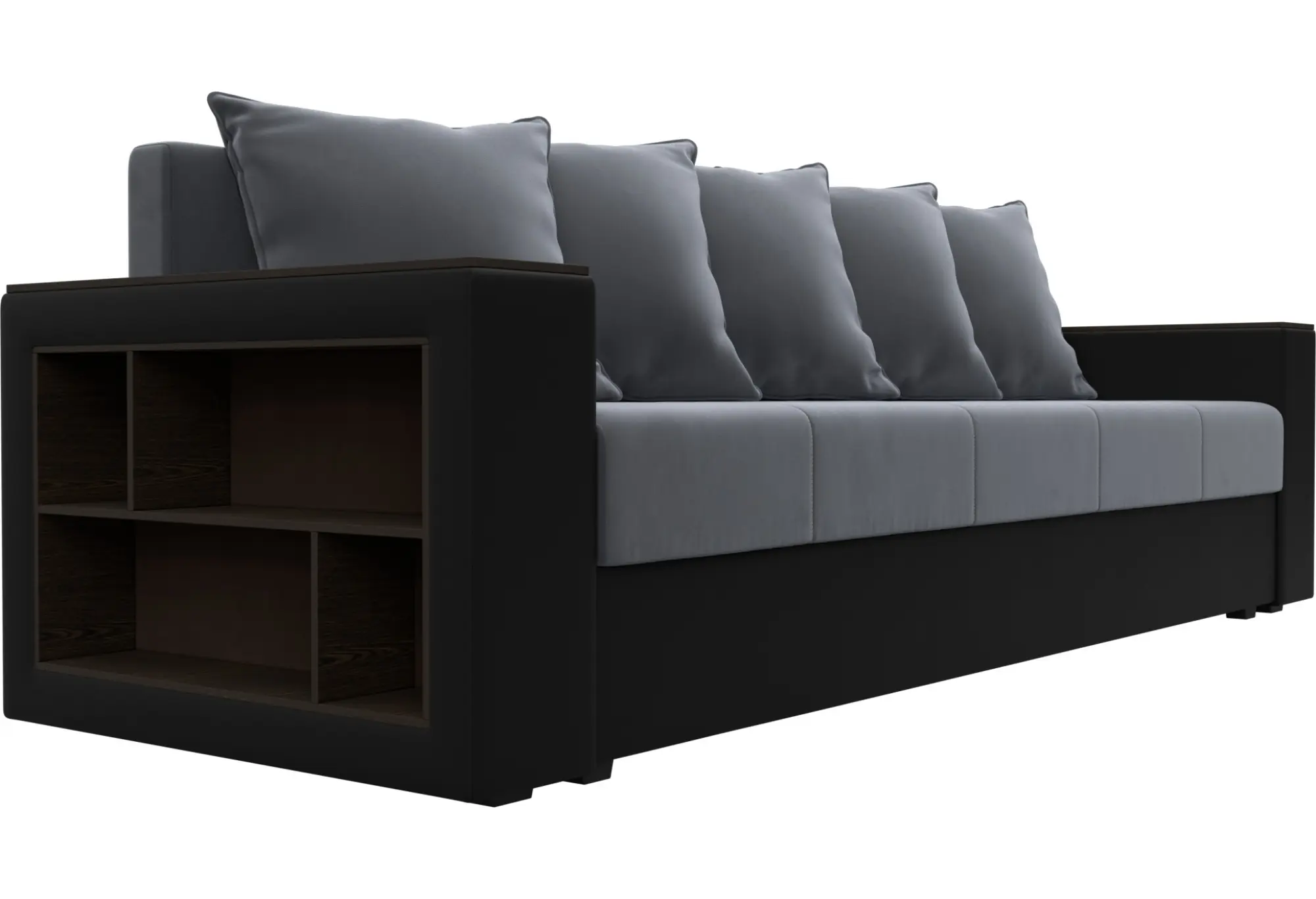 Диван прямой Дубай Лайт полки слева Серый/Черный (Велюр/Экокожа)