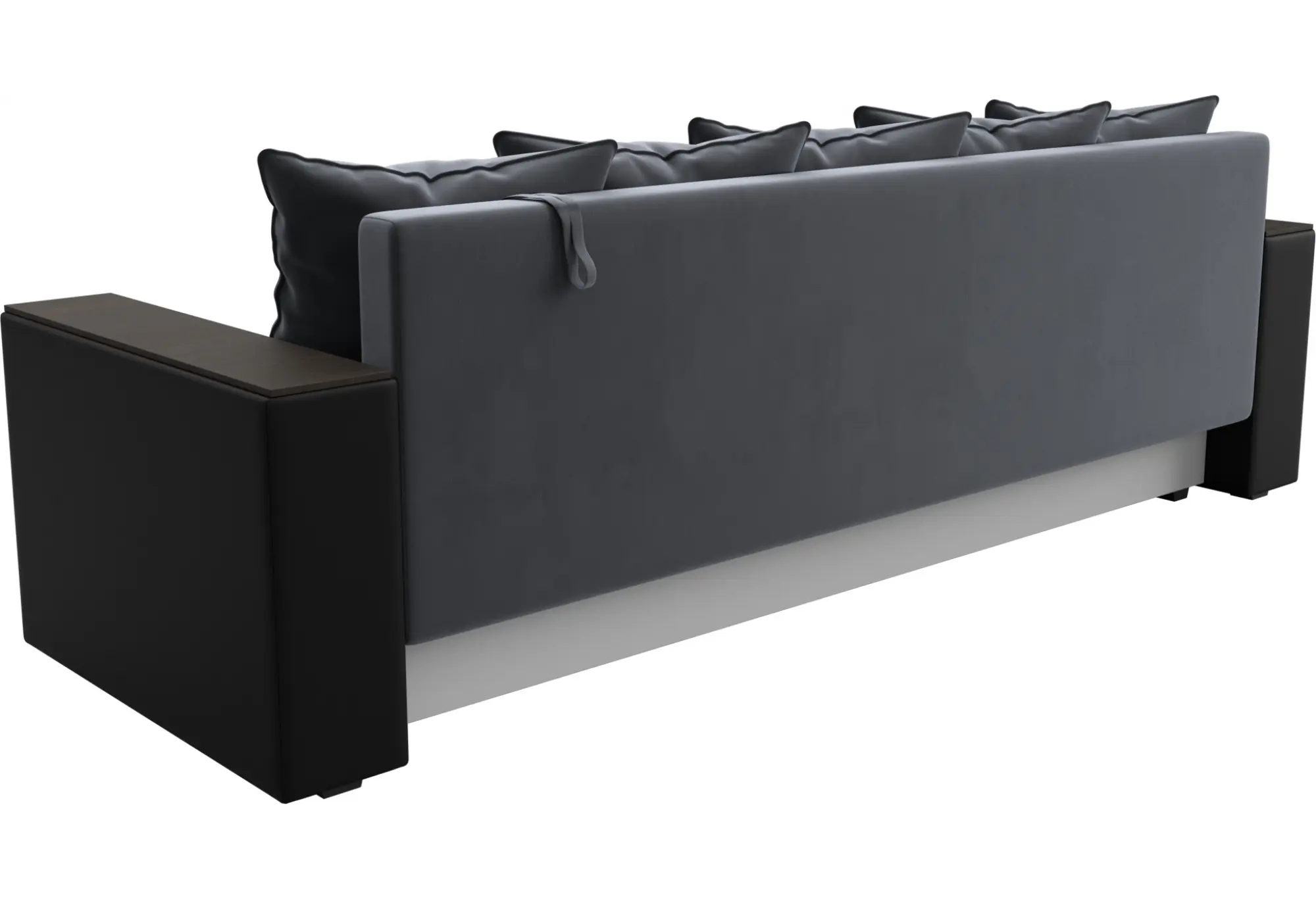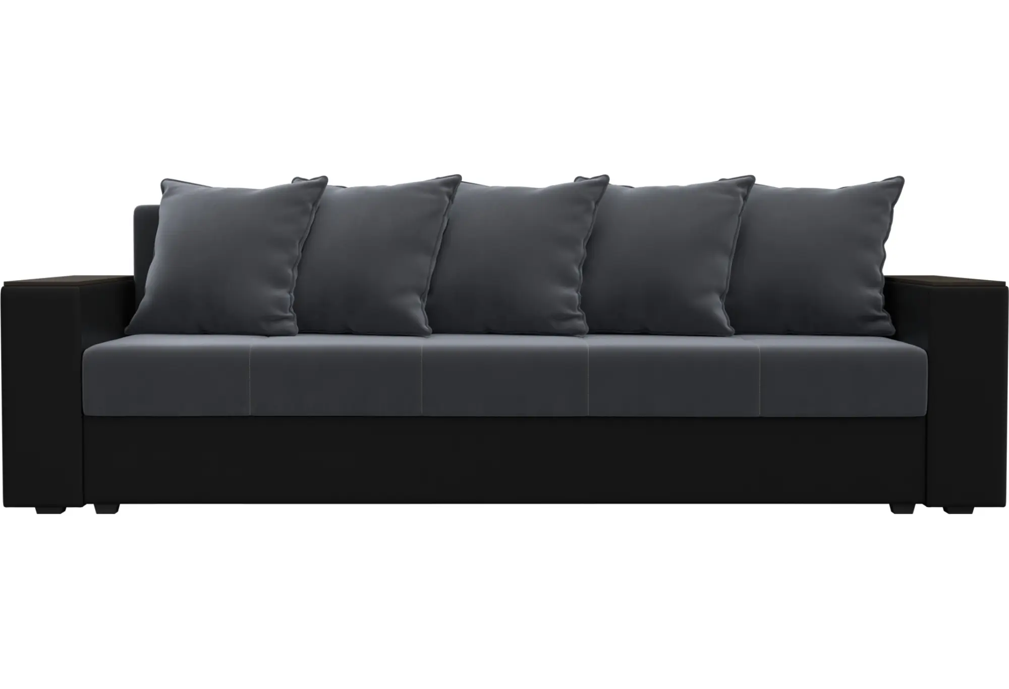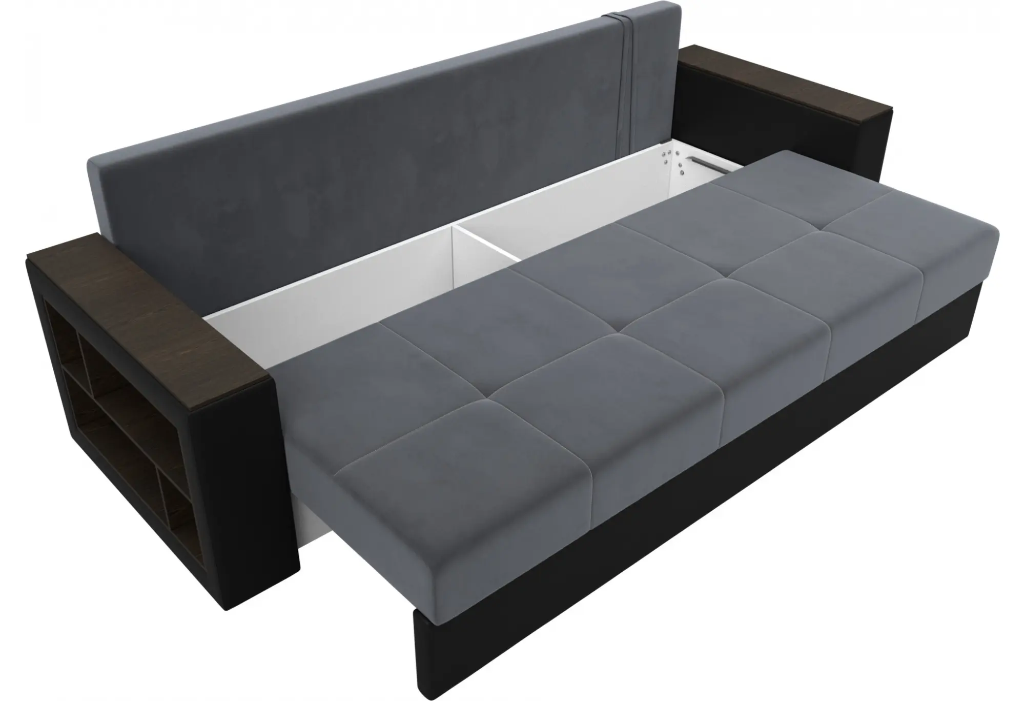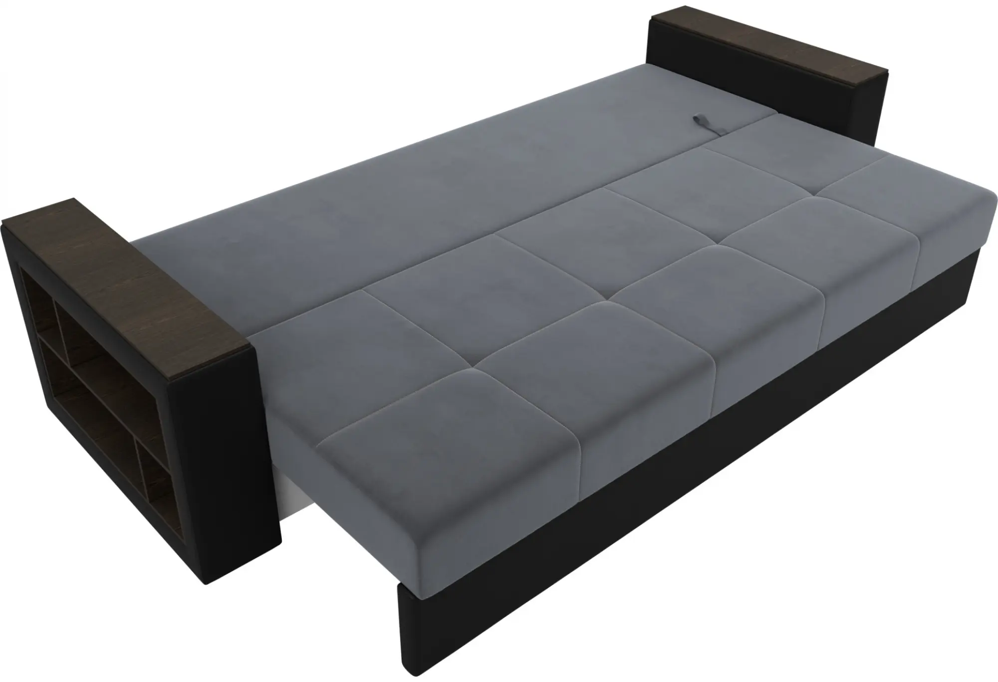 Диван прямой Дубай Лайт полки слева Серый/Черный (Велюр/Экокожа)