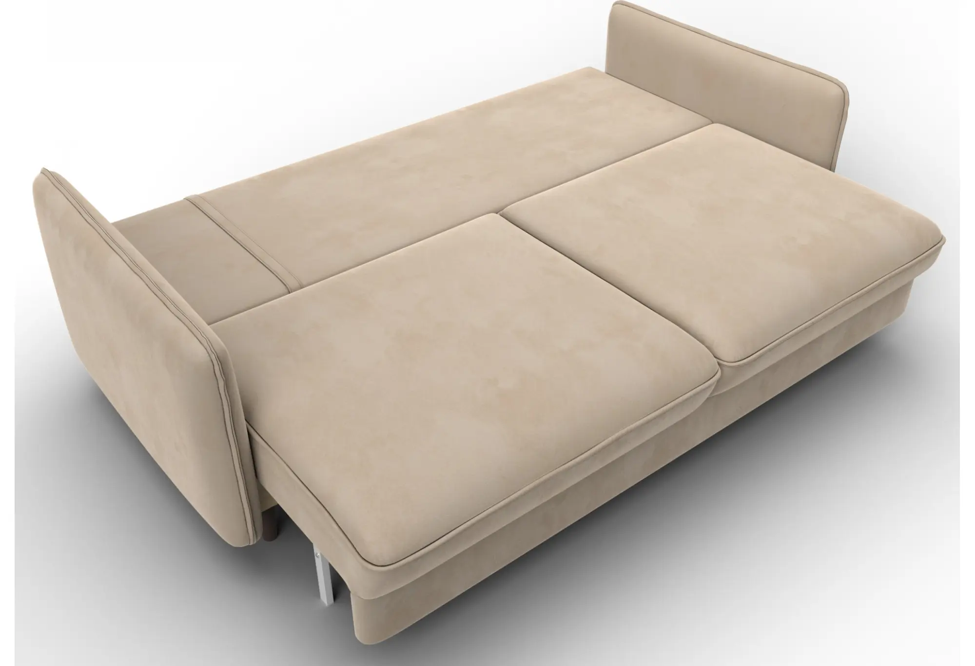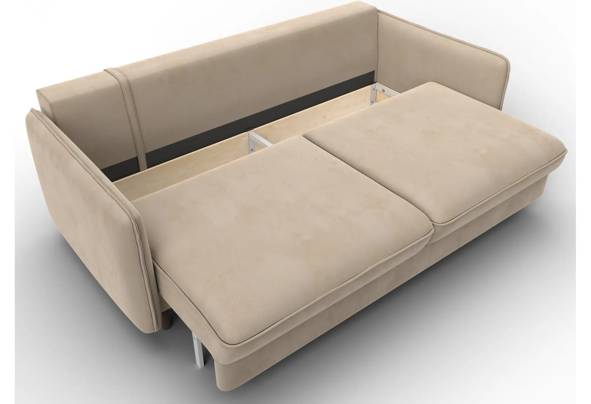 Велюр, использованный в обивке, не только приятен на ощупь, но и практичен в уходе. Прочный каркас из ДСП обещает долгий срок службы, а механизм раскладки «пантограф» позволяет без усилий превратить диван в комфортное спальное место размером 1510х1990 мм.