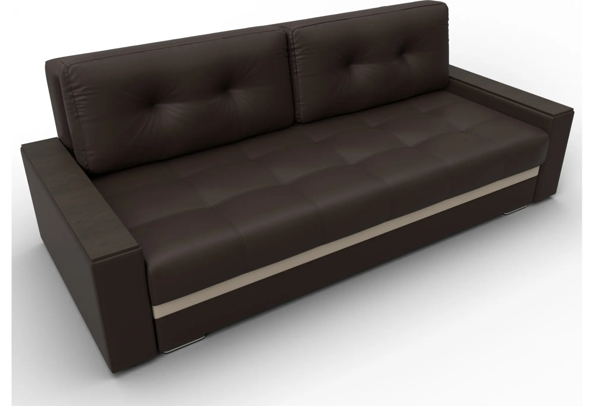 Ищете стильный, надежный и удобный диван, который легко трансформируется в комфортное спальное место? Обратите внимание на диван Лига-096 НПБ. Этот современный диван украшен экокожей в сочетании классических коричневых и бежевых оттенков, что обеспечит ему гармоничное вписывание в любой интерьер — от уютной гостиной до строгого офиса.