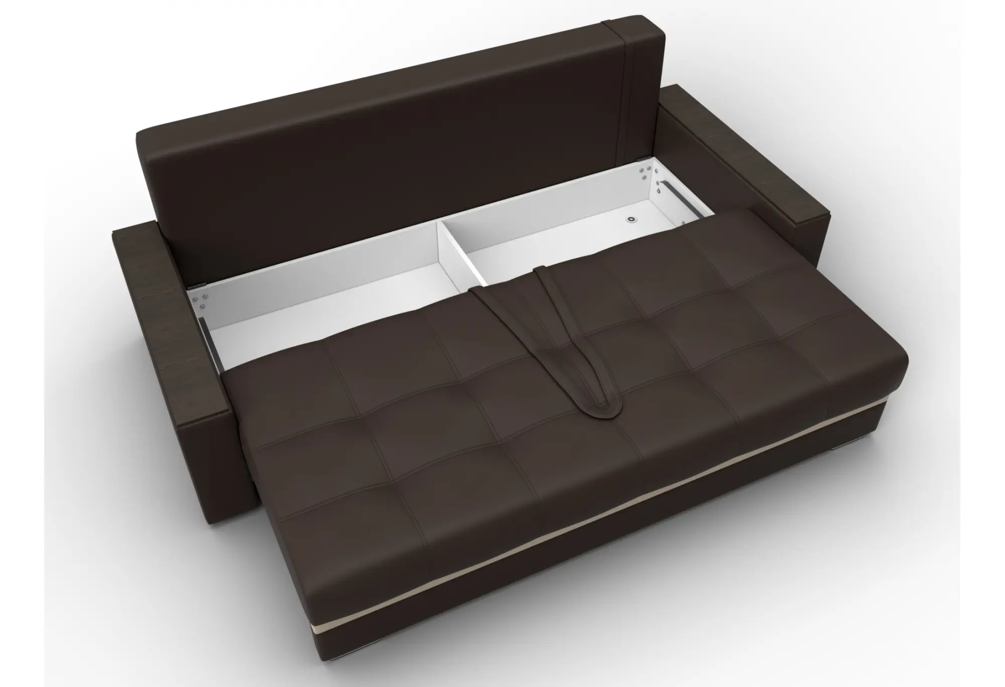 Механизм раскладки "еврокнижка" делает трансформацию в кровать лёгкой и быстрой. Широкие подлокотники функциональны, их можно использовать в качестве мини-столиков для напитков или гаджетов. Две удобные спинные подушки добавляют комфорт и уют.