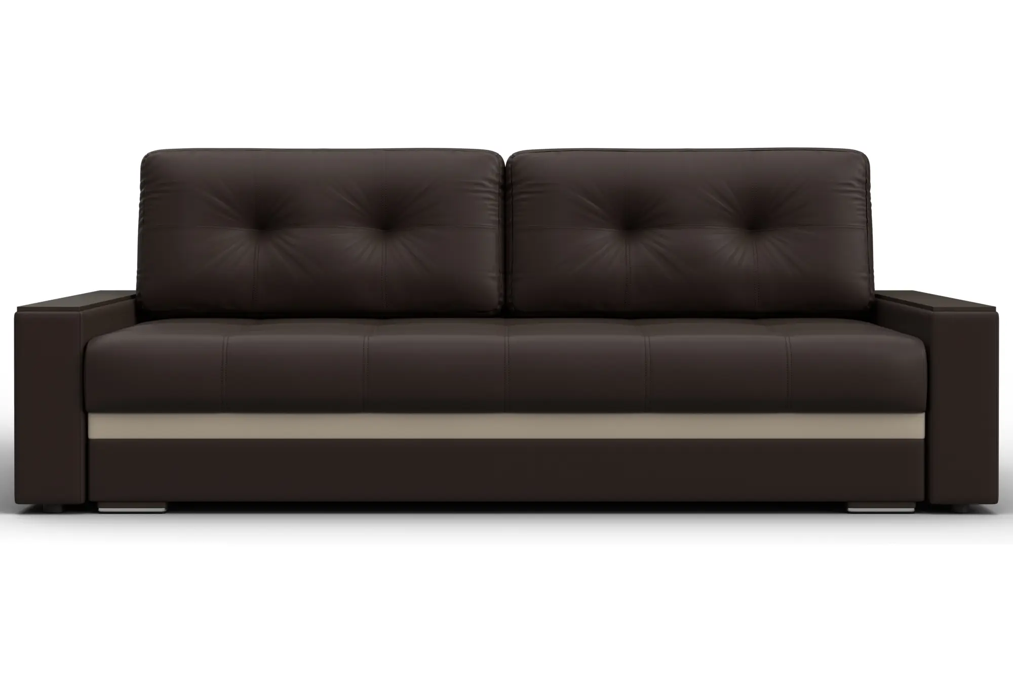 Диван прямой с декором Лига-096 НПБ Коричневый/Бежевый (Экокожа)