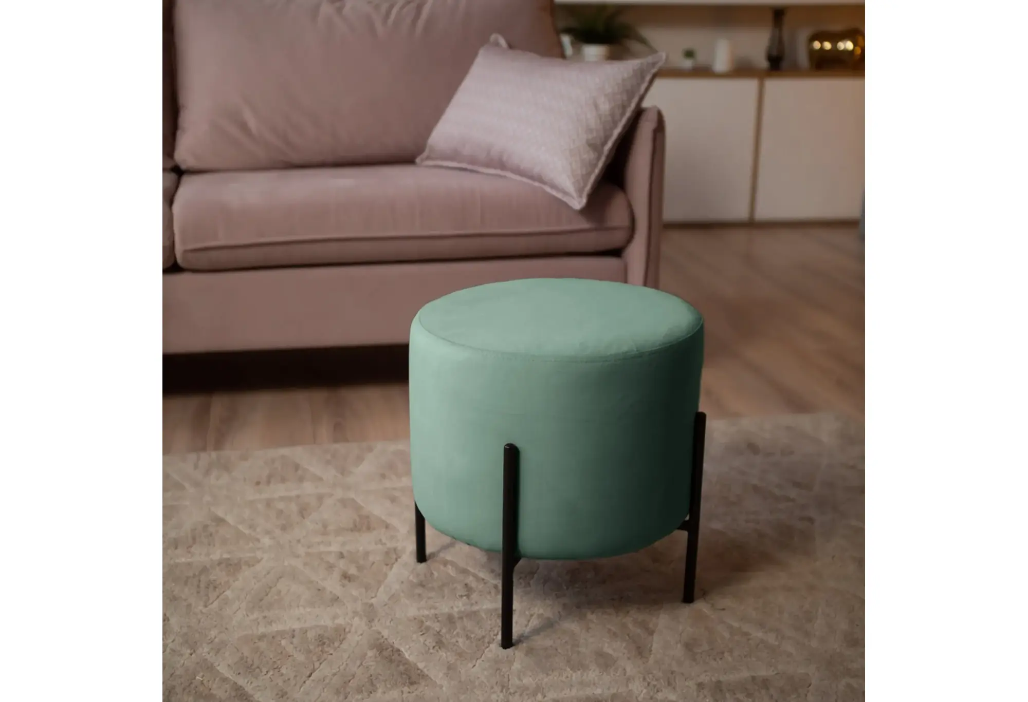 - Высокие ножки 15 см облегчают визуальное восприятие и уборку под пуфом