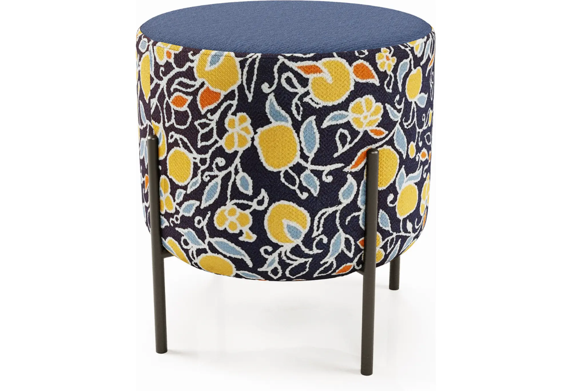 Обивка из велюра Danco 796 в синем цвете дополняется выразительным цветочным рисунком по корпусу, делая пуф декоративным элементом в интерьере. Велюр приятен на ощупь и визуально добавляет уют, а лаконичные высокие ножки делают модель более легкой и воздушной, упрощают уборку под мебелью.