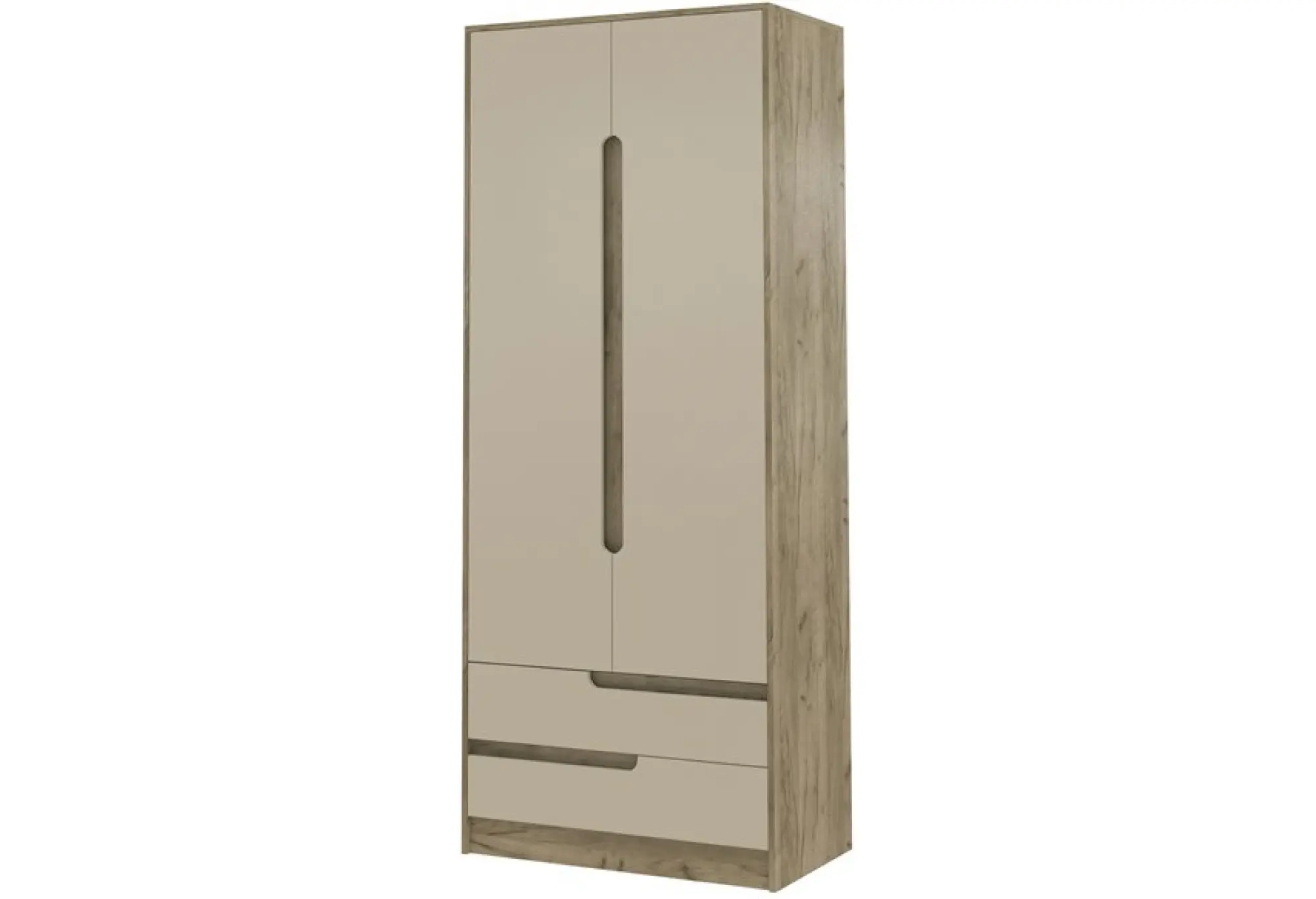 Двухстворчатый шкаф "Гавана" — практичное решение для тех, кто ценит порядок и аккуратный внешний вид интерьера. Компактная ширина при внушительной высоте позволяет рационально использовать пространство, не перегружая комнату. Продуманное внутреннее наполнение со штангой обеспечивает удобное хранение одежды на плечиках, а выдвижной ящик в нижней части подойдёт для белья, аксессуаров или повседневных мелочей.