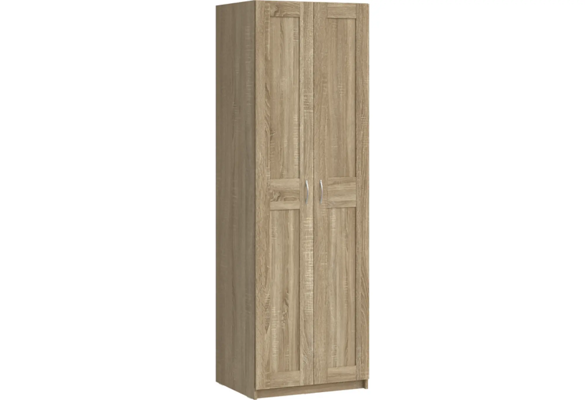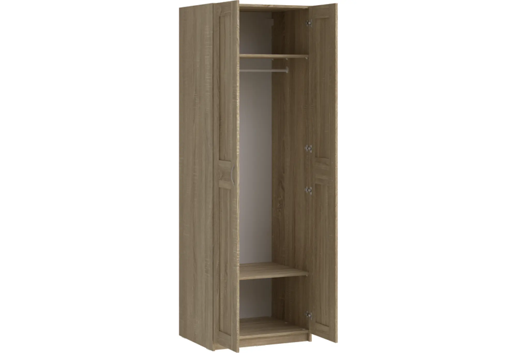 Шкаф МАКС для одежды двухдверный, 750х610х2330, цвет Дуб Сонома. Укомлектован двумя полками и штангой для вешалок. Изготовлен из кашированного ДСП толщиной 18 мм. Крепится к стене. Гарантийный срок для жилых помещений 24 месяца, для общественных помещений - 18 месяцев.