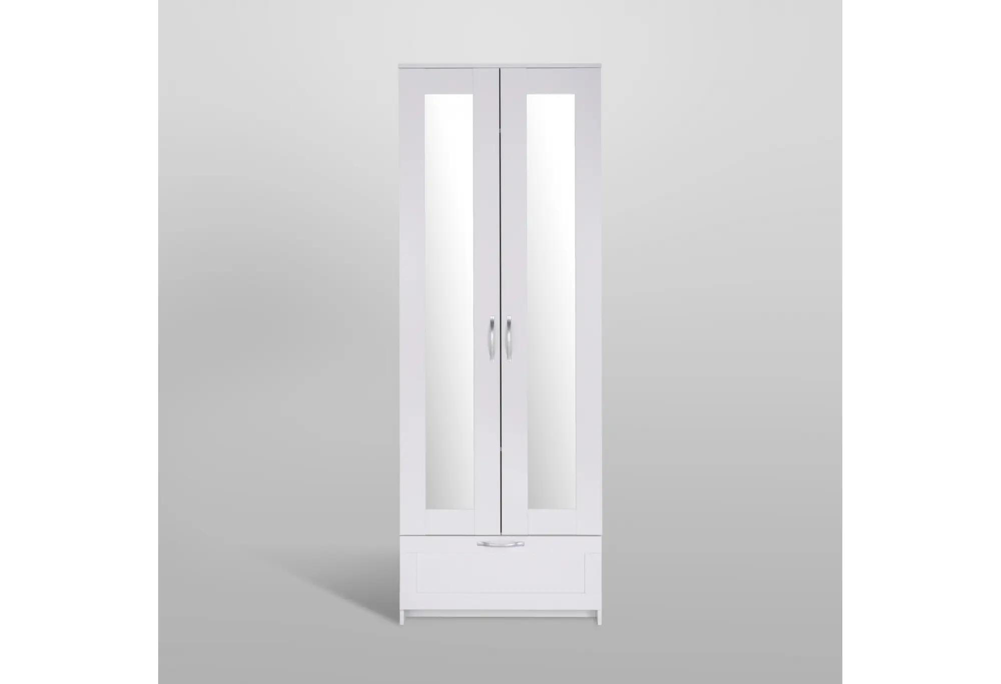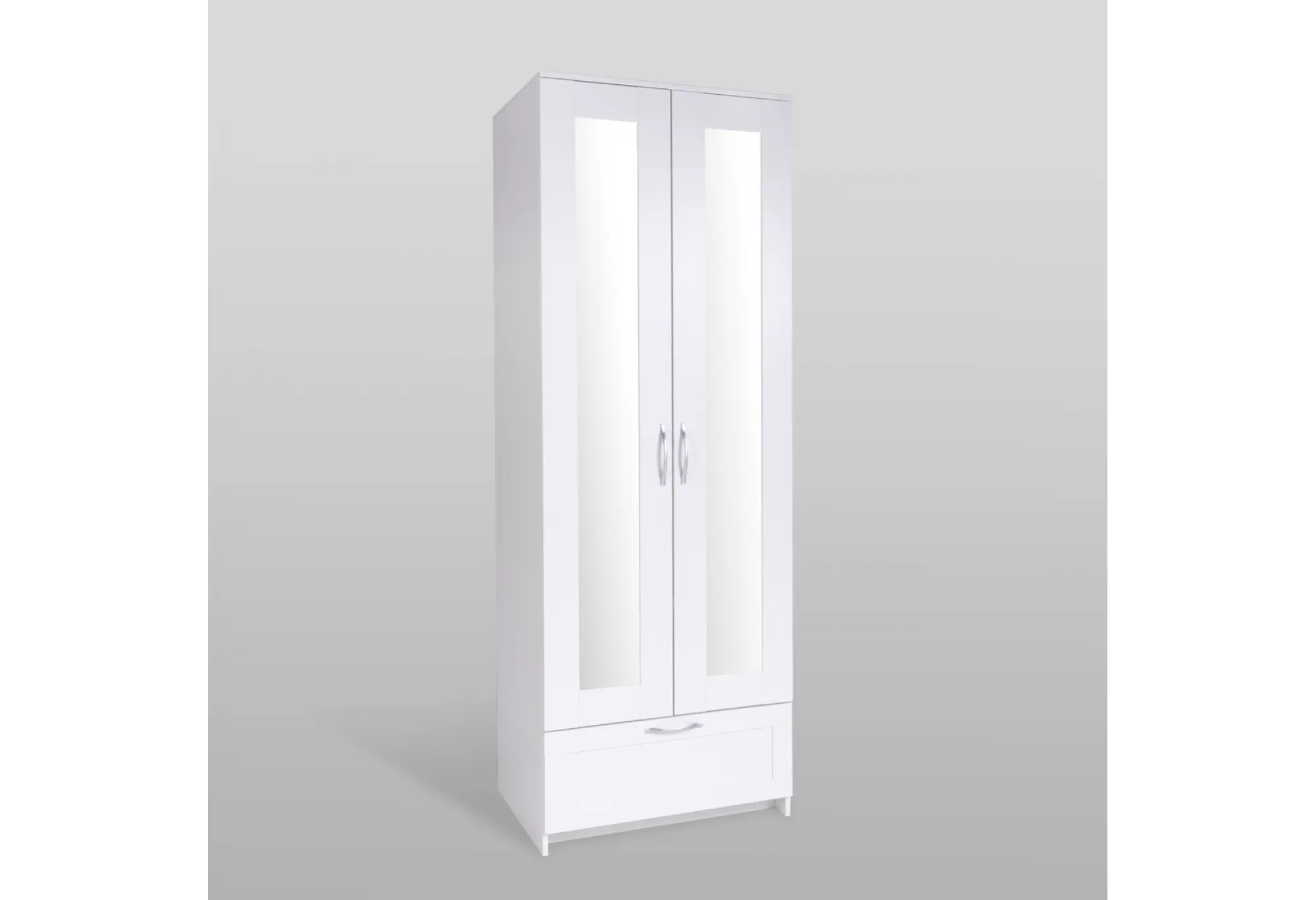 Шкаф СИРИУС двухдверный белый с одним выдвижным ящикам и двумя зеркалами