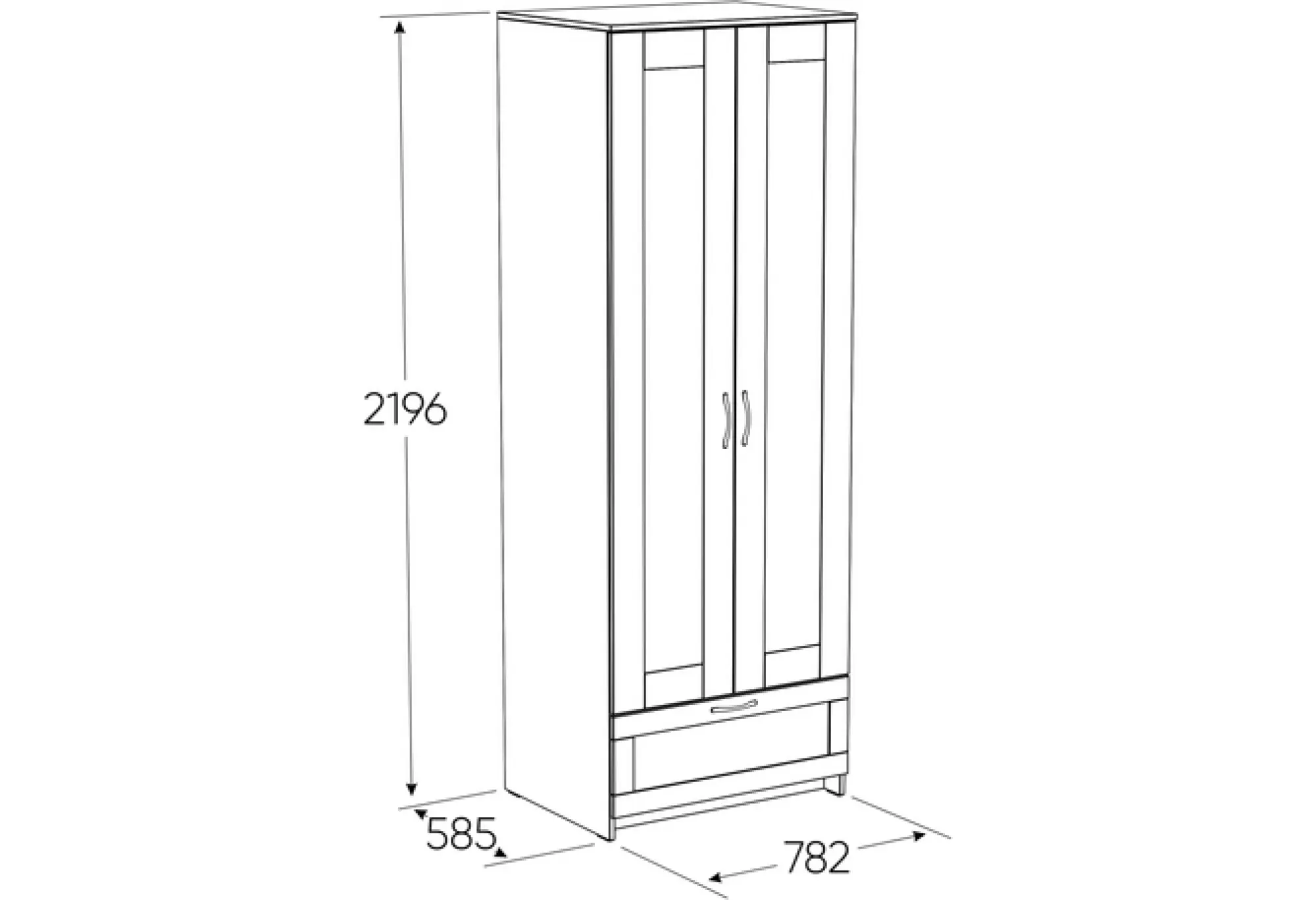 Шкаф предусматривает крепление к стене, что повышает безопасность эксплуатации, особенно в семьях с детьми или при установке в общественных помещениях. Габариты 782x585x2196 мм позволяют рационально использовать вертикальное пространство, не перегружая комнату по ширине и глубине.