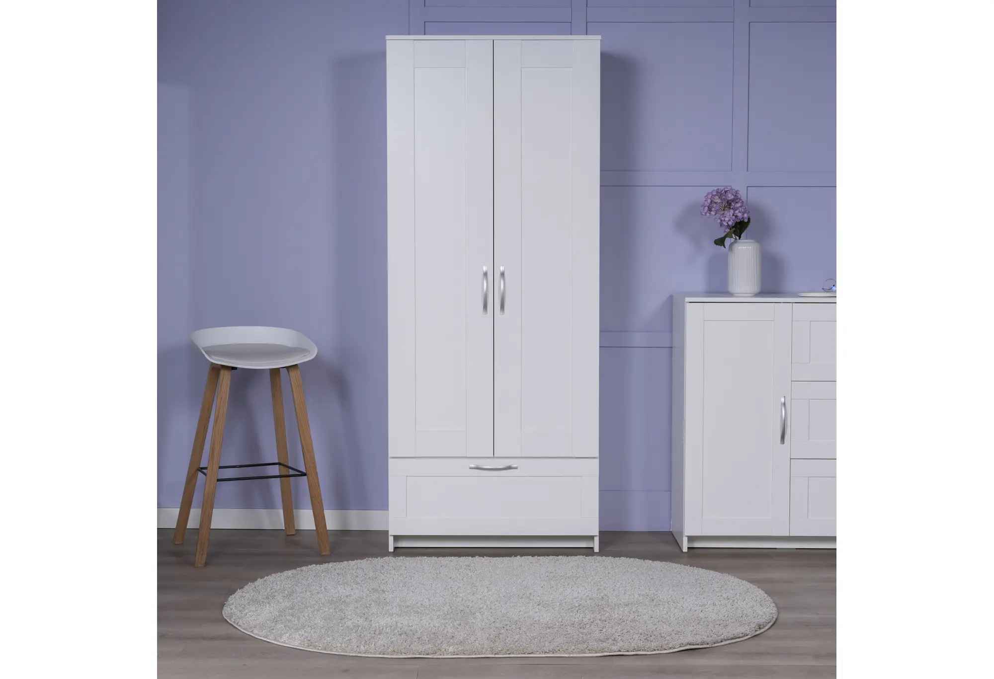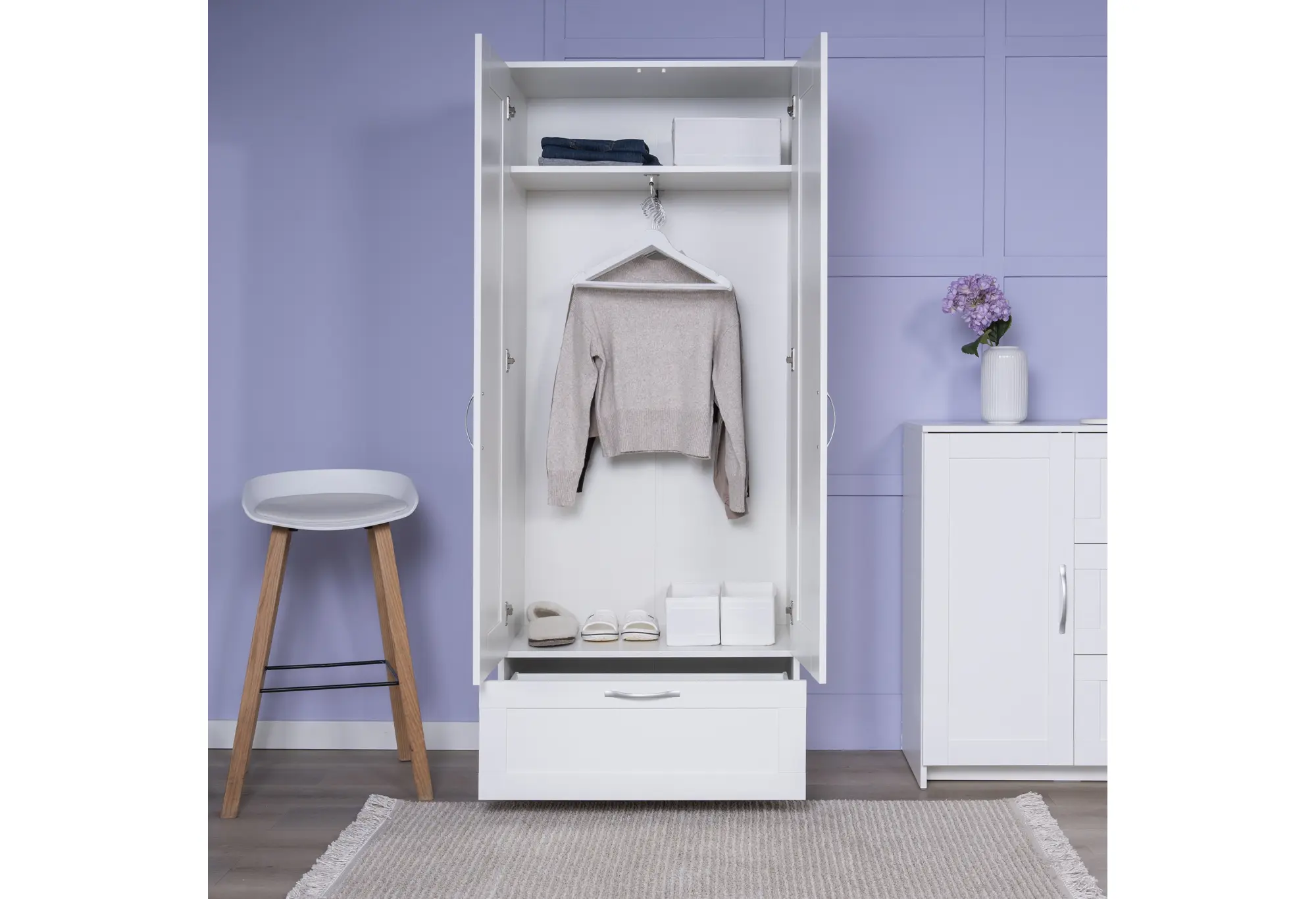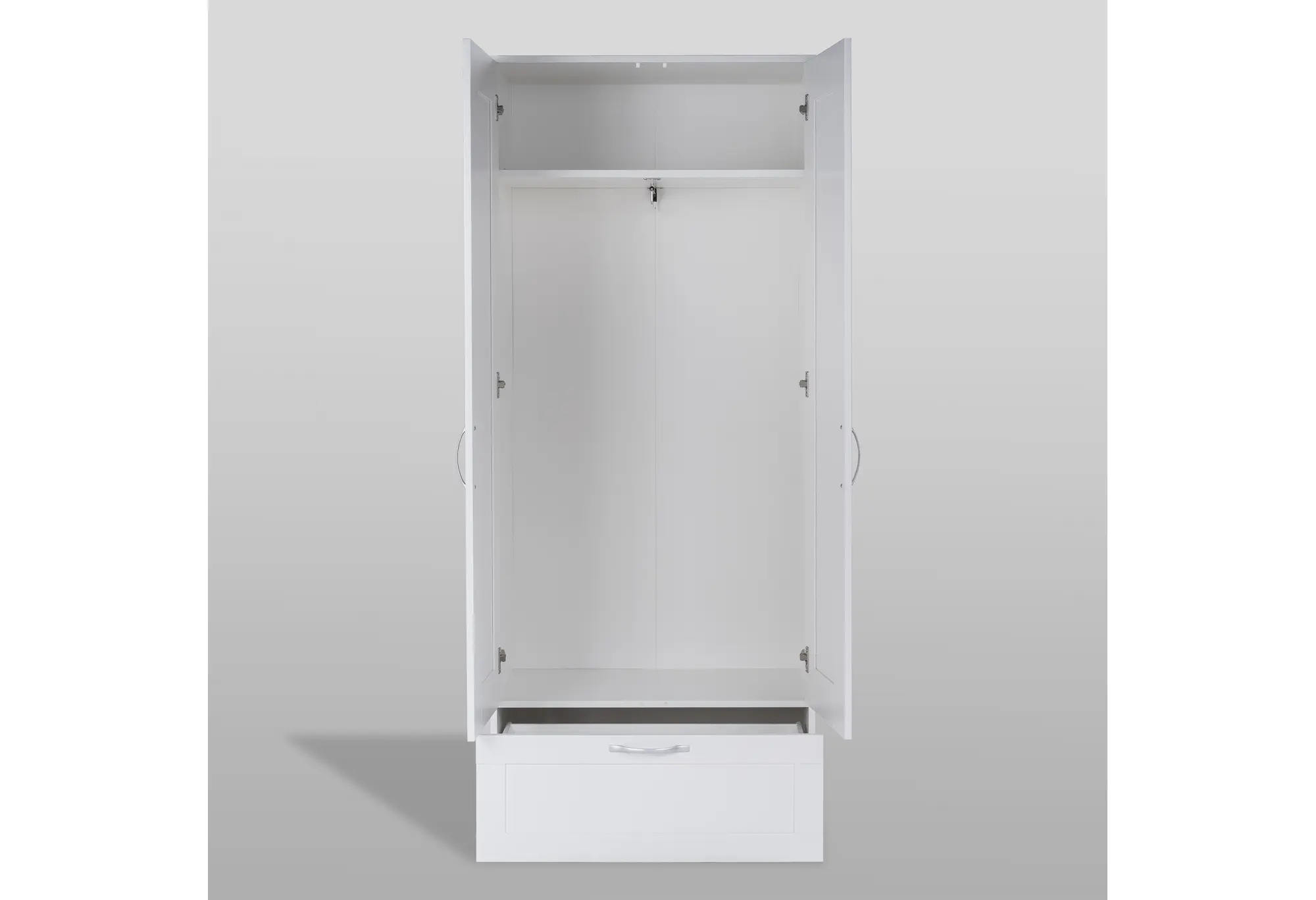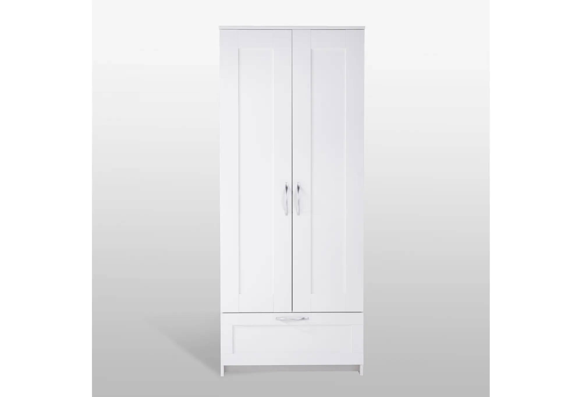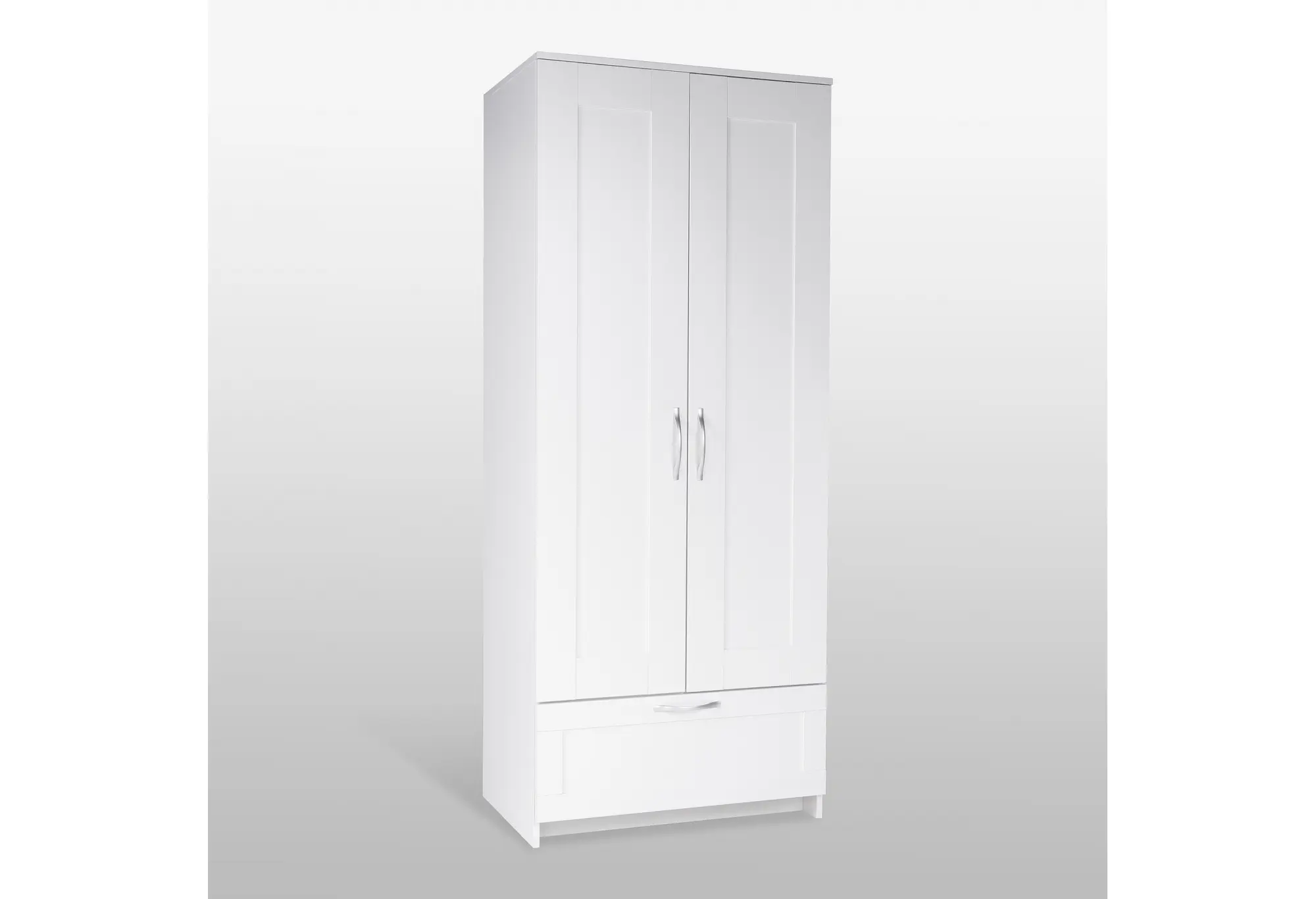 Шкаф СИРИУС для одежды двухдверный, с выдвижным ящиком, 782х412х1900, цвет Белый. Изготовлен из кашированного ДСП толщиной 16 мм. Крепится к стене. Гарантийный срок для жилых помещений 24 месяца, для общественных помещений - 18 месяцев.