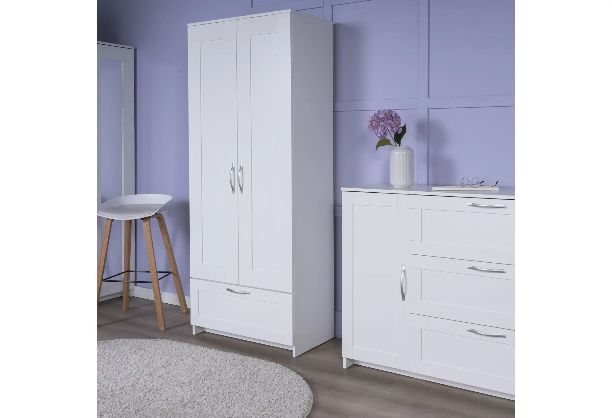 Шкаф СИРИУС двухстворчатый с выдвижным ящиком, белый