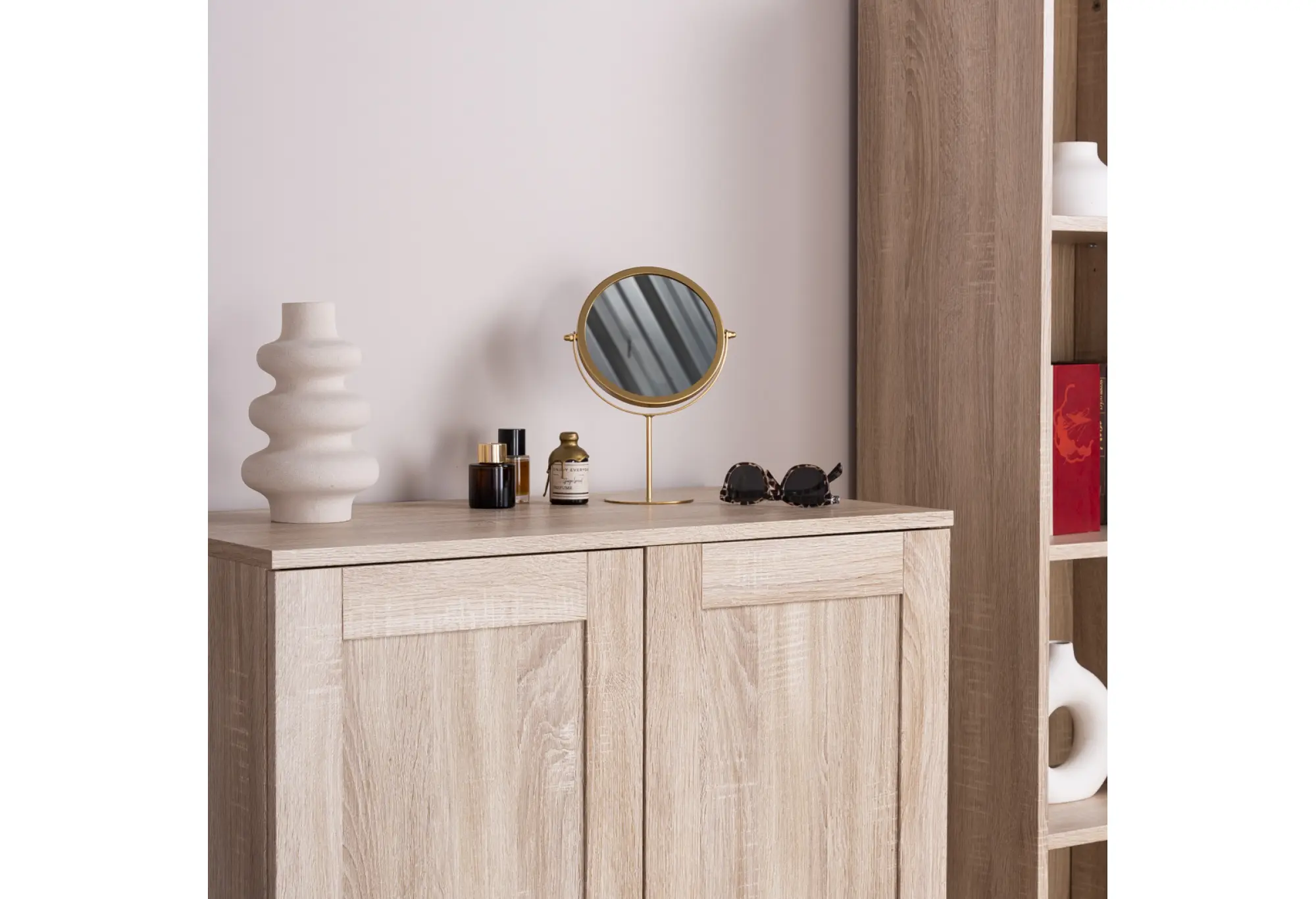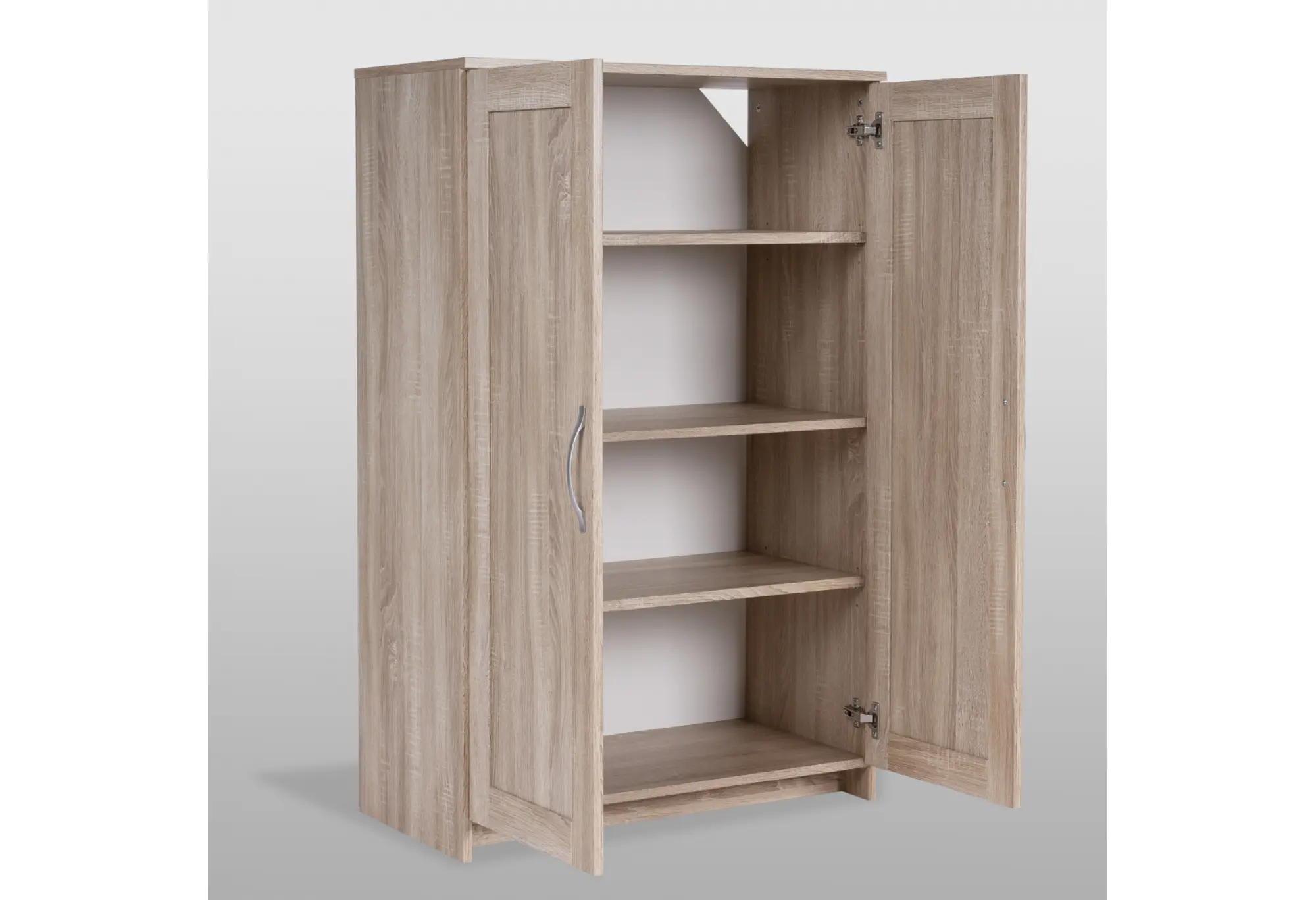 Высокая двухдверная тумба «СИРИУС» в цвете дуб сонома — компактное решение для хранения в доме или офисе. Корпус выполнен из кашированного ДСП толщиной 16 мм, что обеспечивает устойчивость конструкции и ровные плоскости стенок и фасадов. Натуральный оттенок дуба с выраженной древесной текстурой делает модель универсальной для современных интерьеров и спокойных классических обстановок.