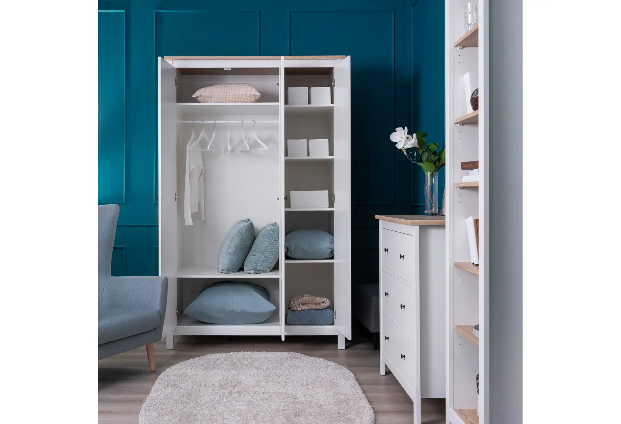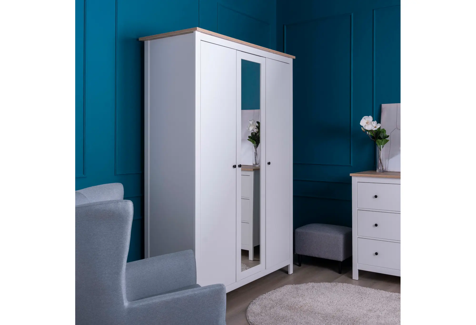 2.08.01.040.14 САГА шкаф 3 двери с зеркалом белый/ясень