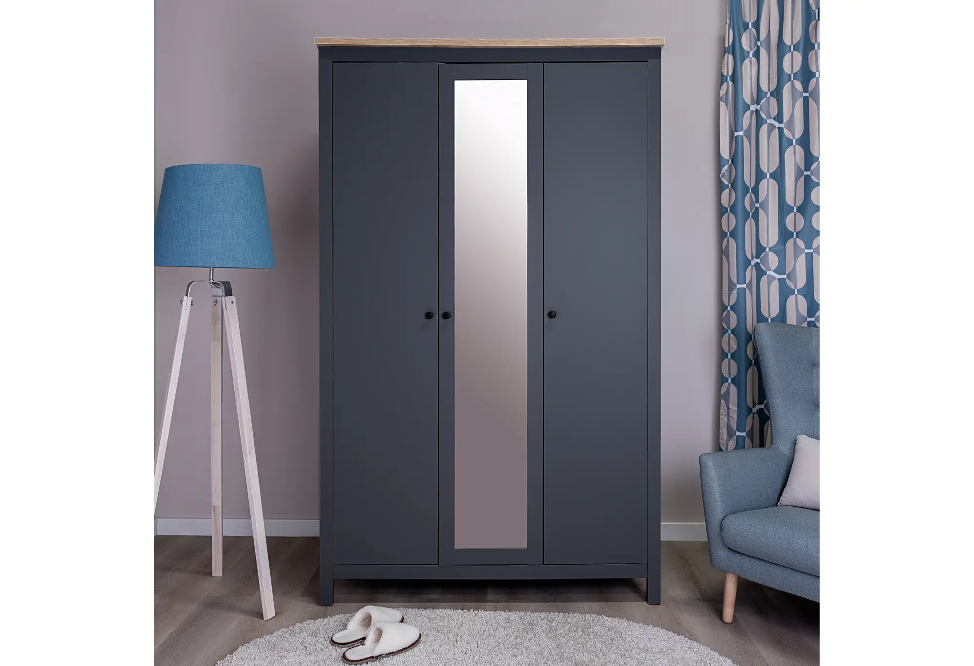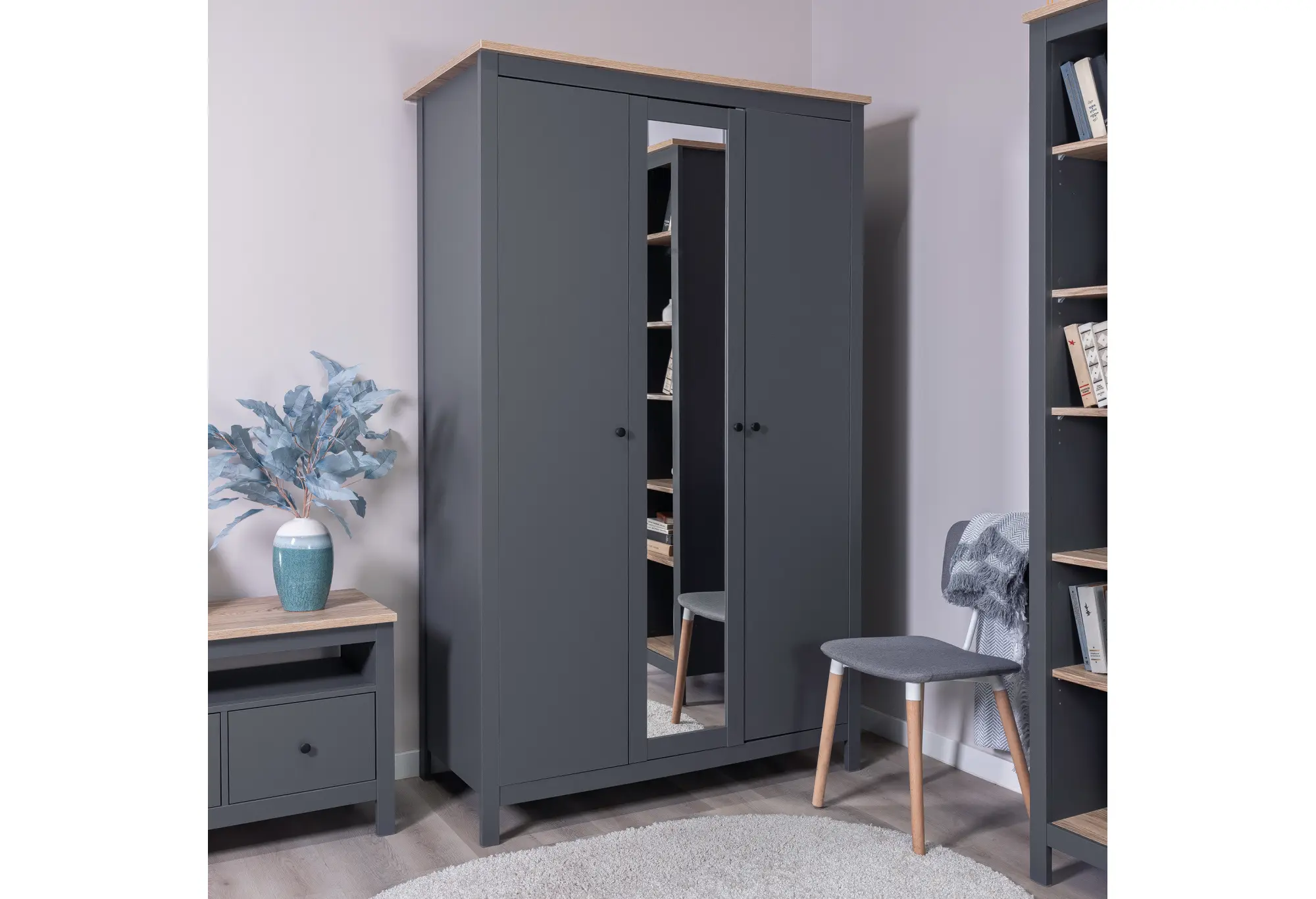 2.08.01.040.15 САГА шкаф 3 двери с зеркалом серый/ясень