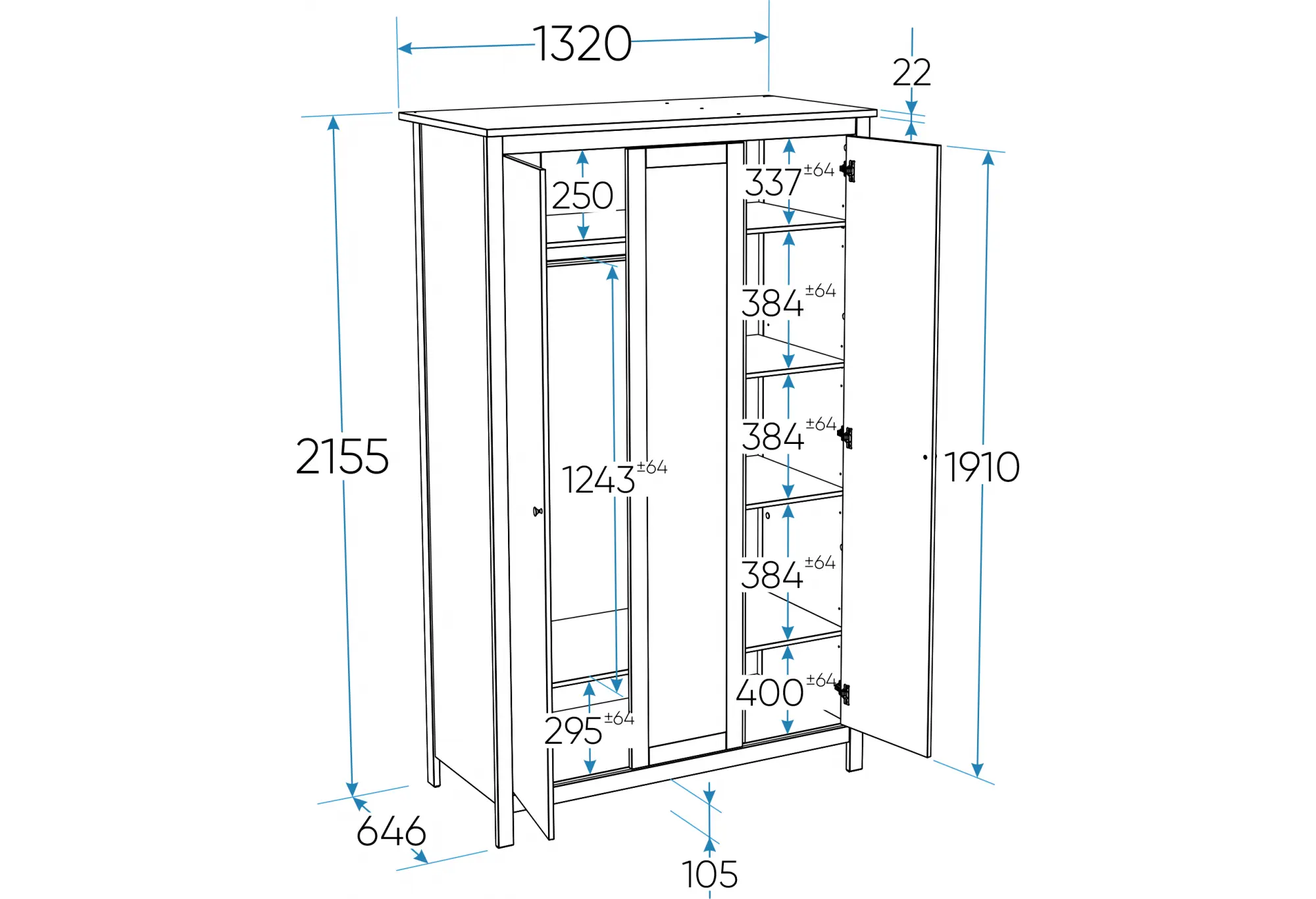 2.08.01.040.6 САГА шкаф 3 двери с зеркалом темно-бирюзовый