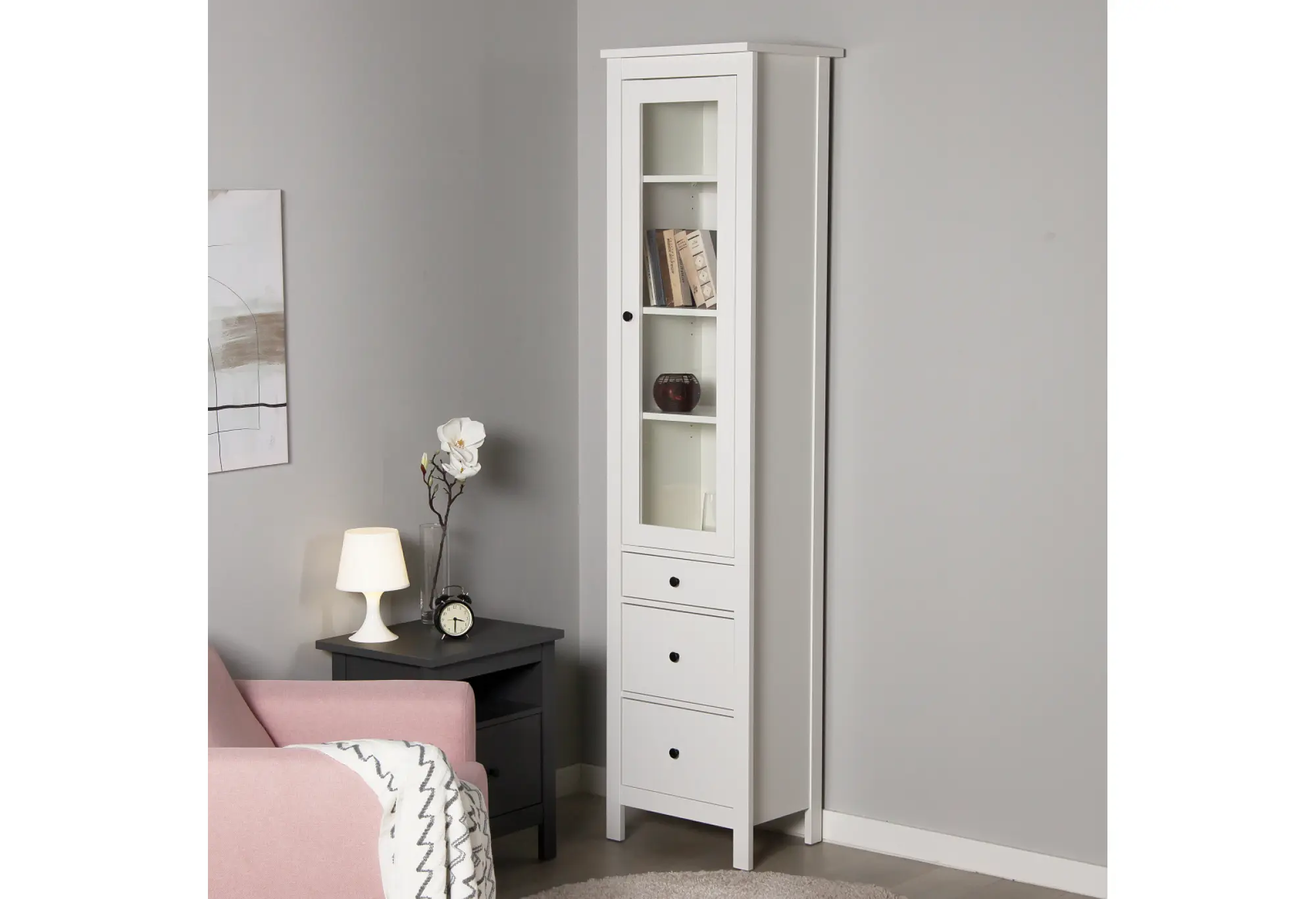2.08.07.120.1 САГА шкаф с витриной 50 белый RU