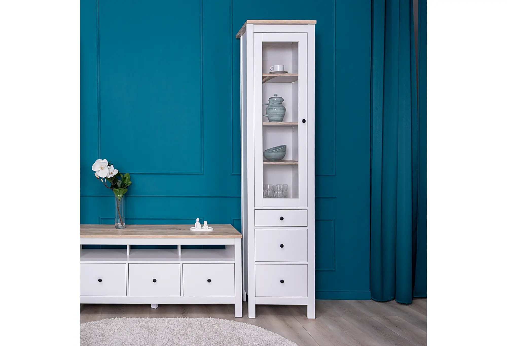 2.08.07.120.14 САГА шкаф с витриной 50 белый/ясень RU