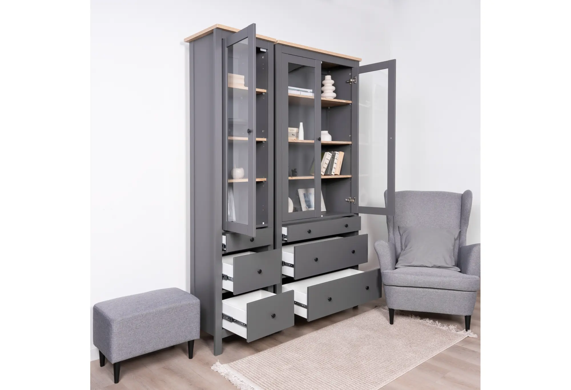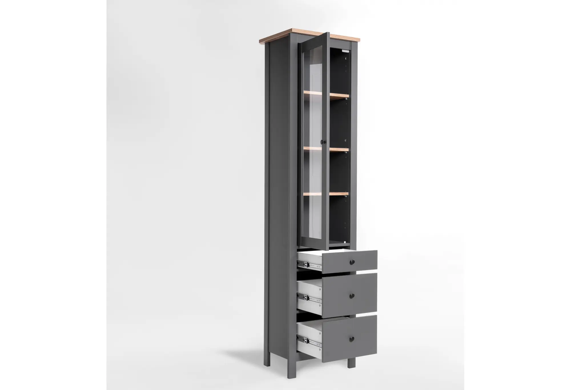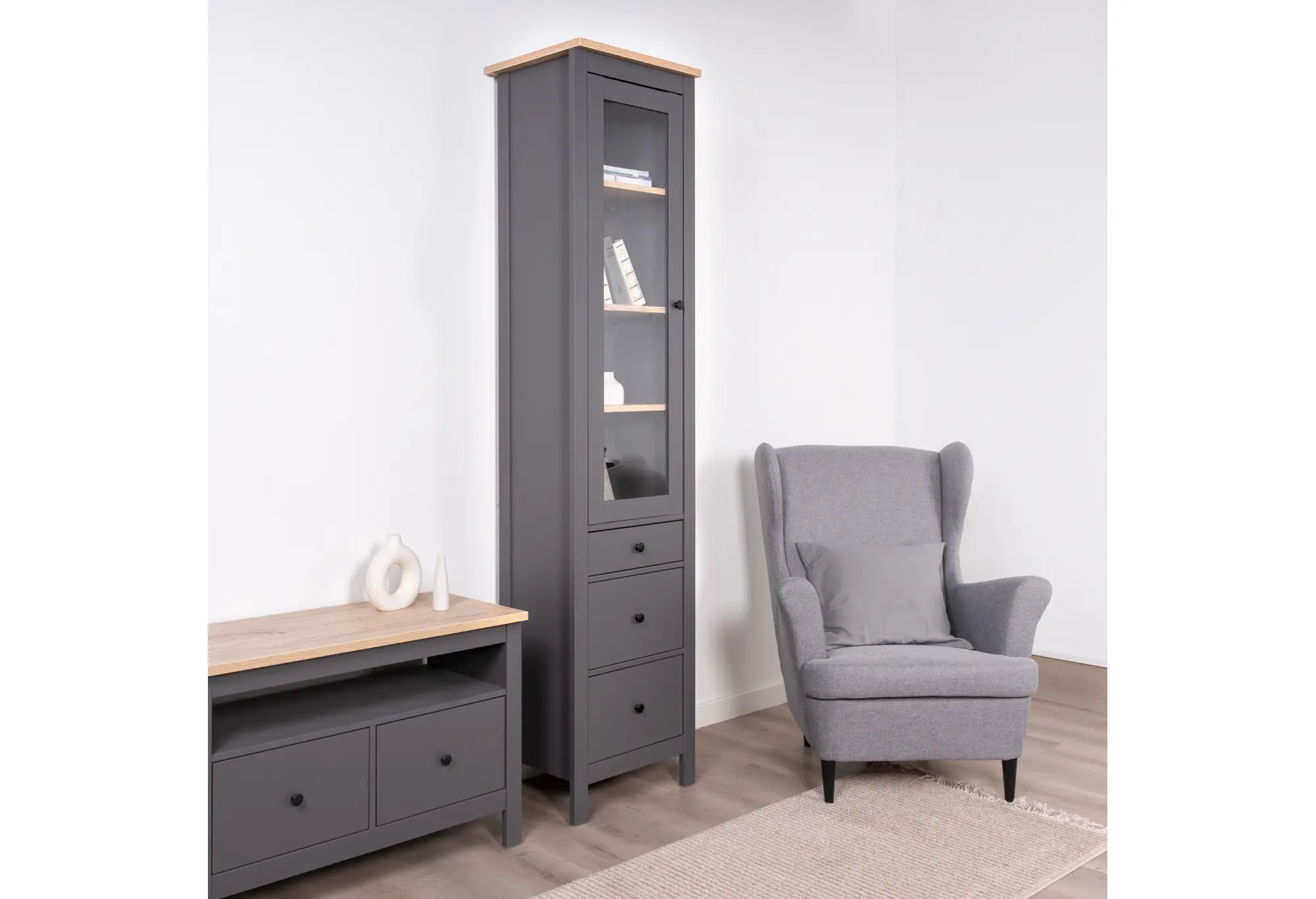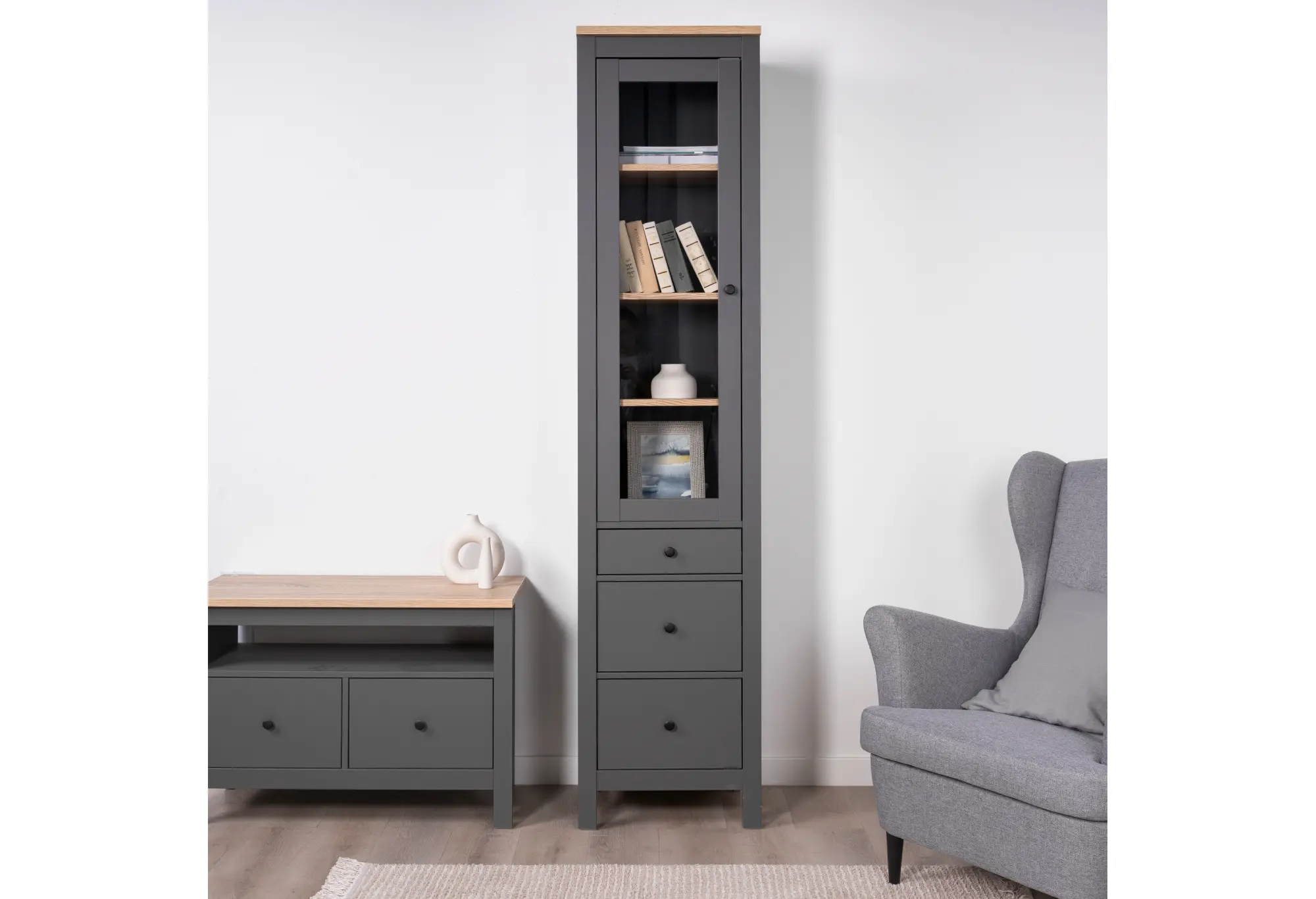 2.08.07.120.15 САГА шкаф с витриной 50 серый/ясень RU