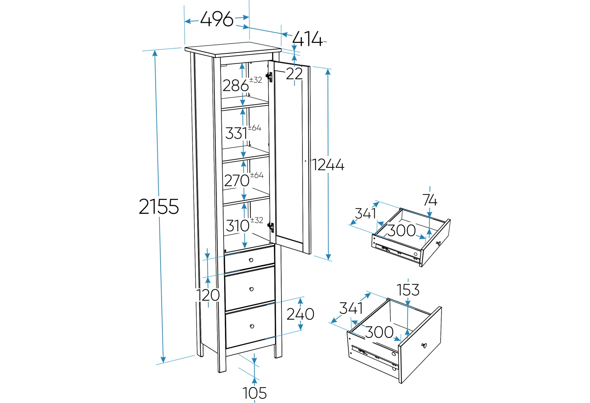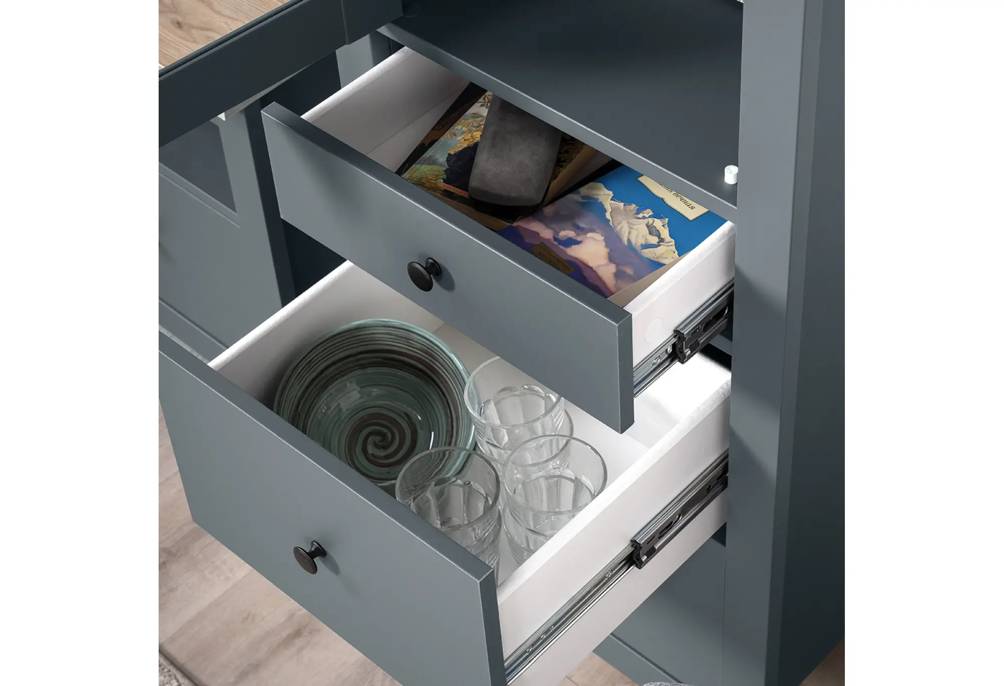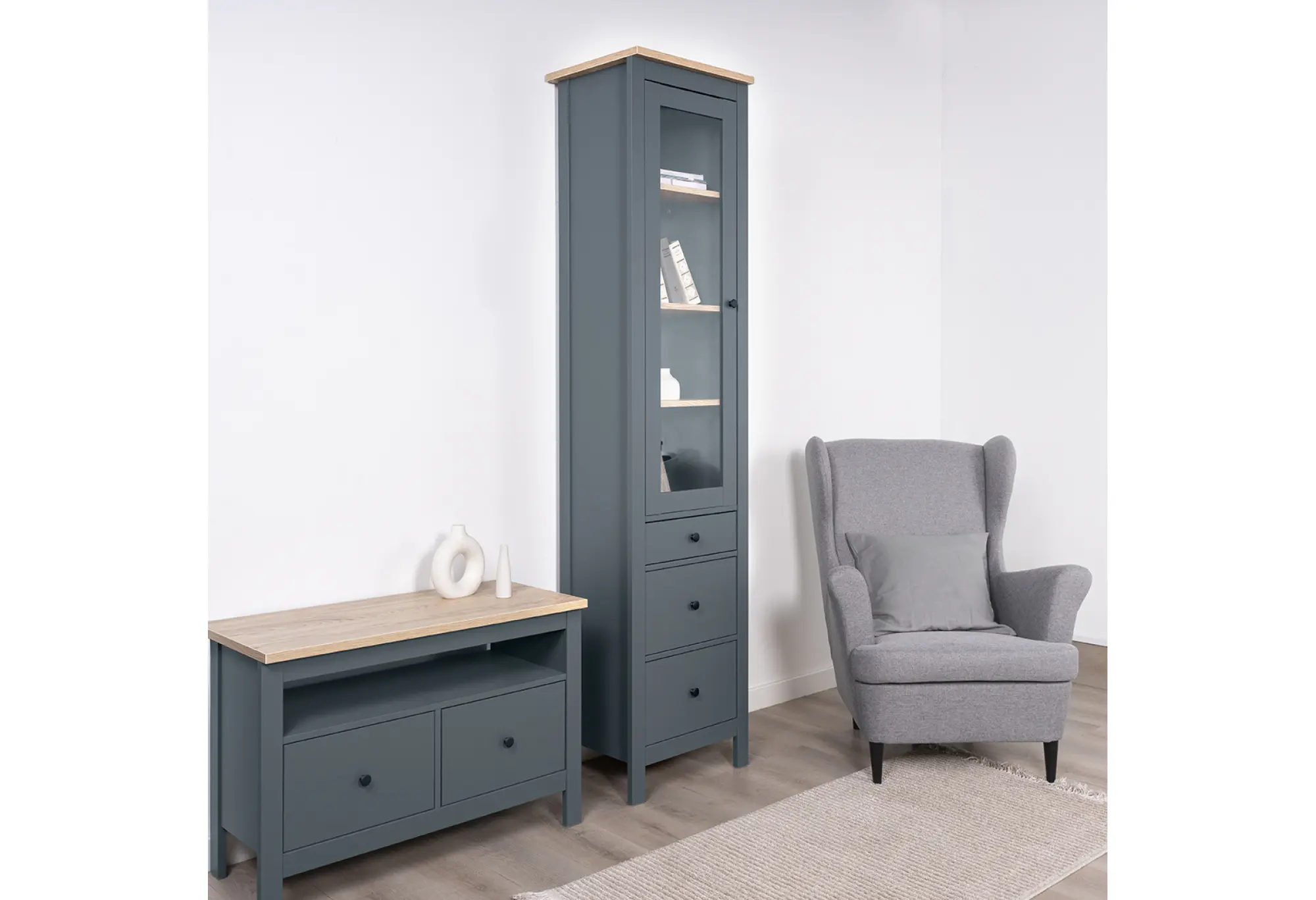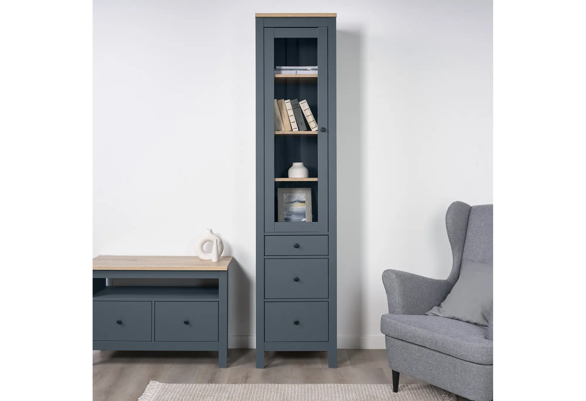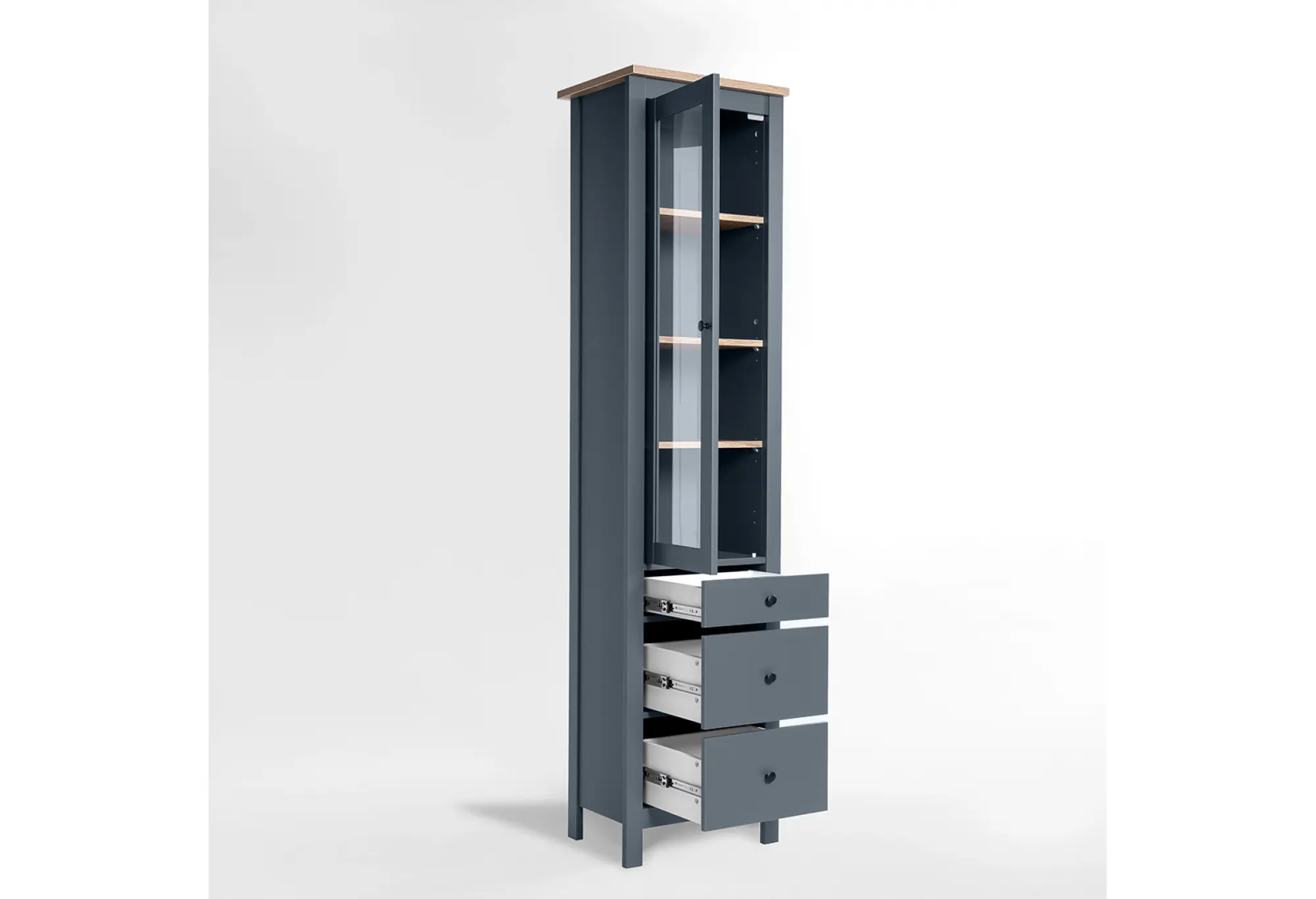2.08.07.120.16 САГА шкаф с витриной 50 темно-бирюзовый/ясень RU
