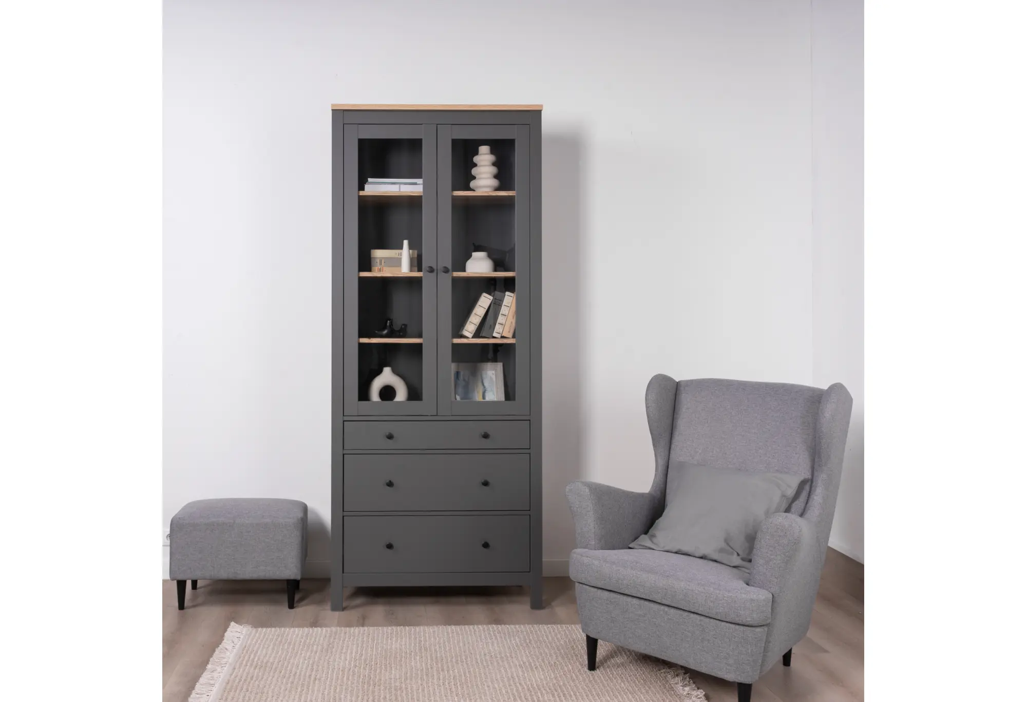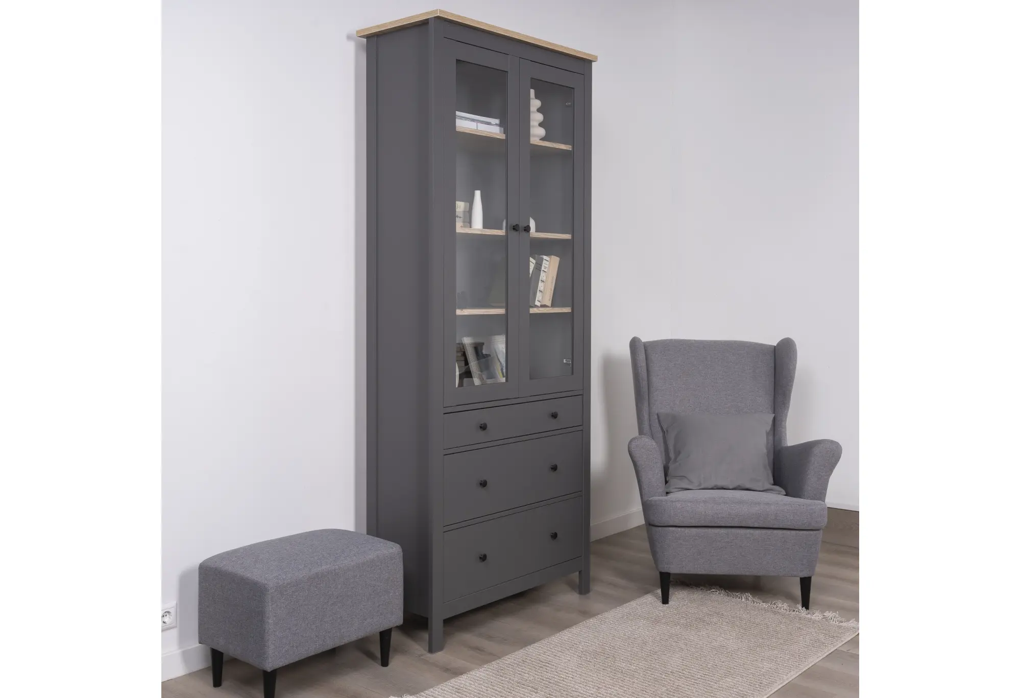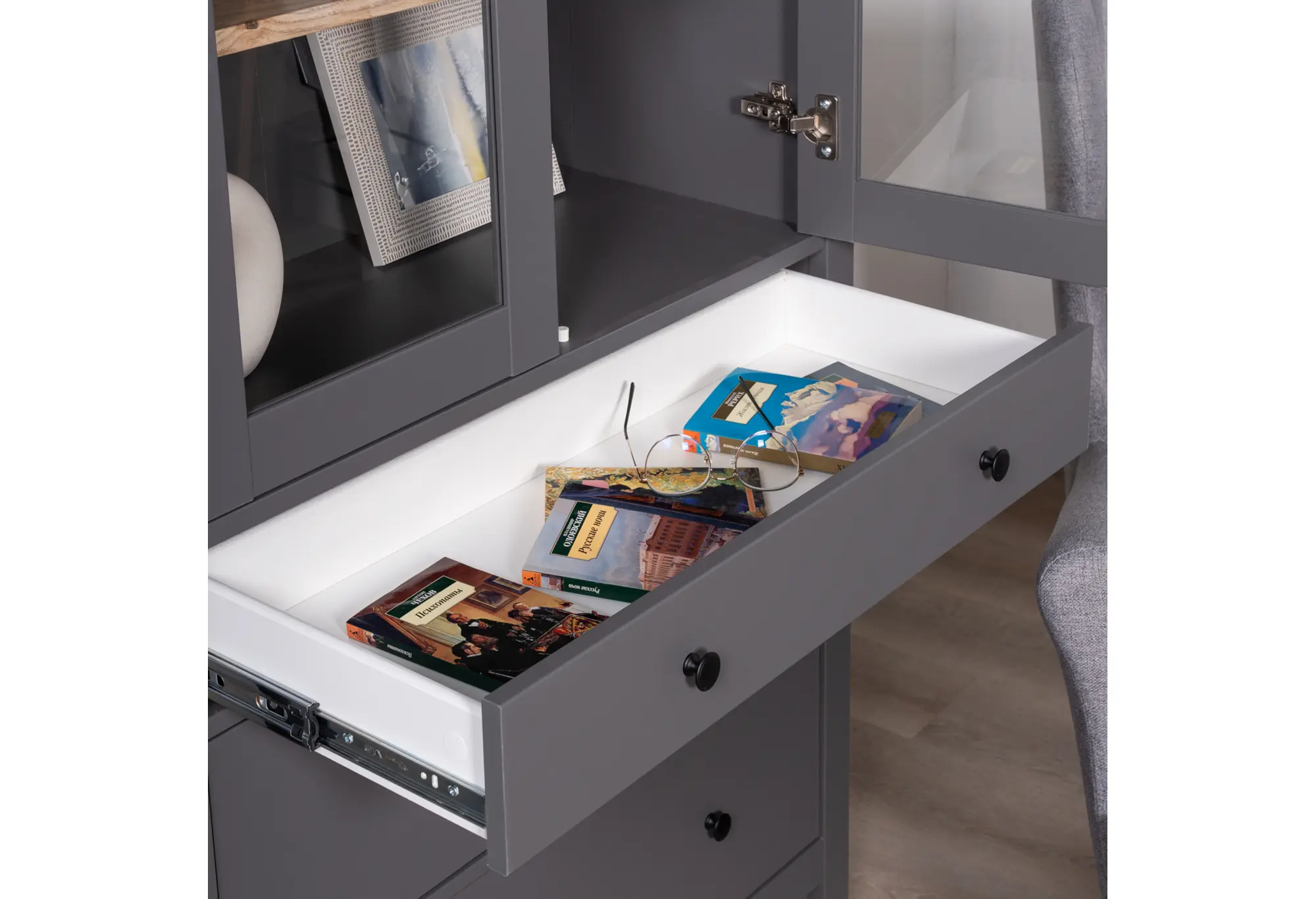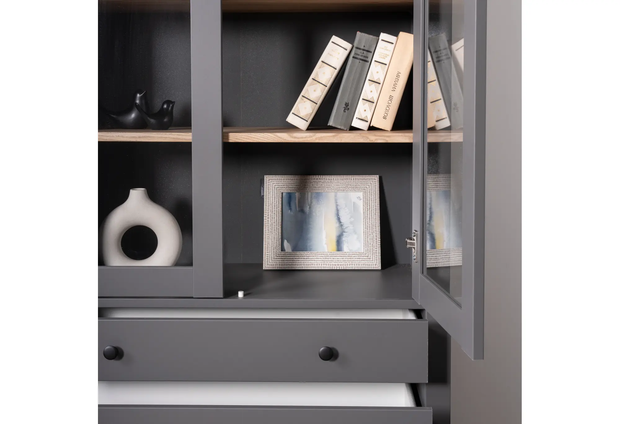 2.08.07.130.15 САГА шкаф с витриной 90 серый/ясень RU