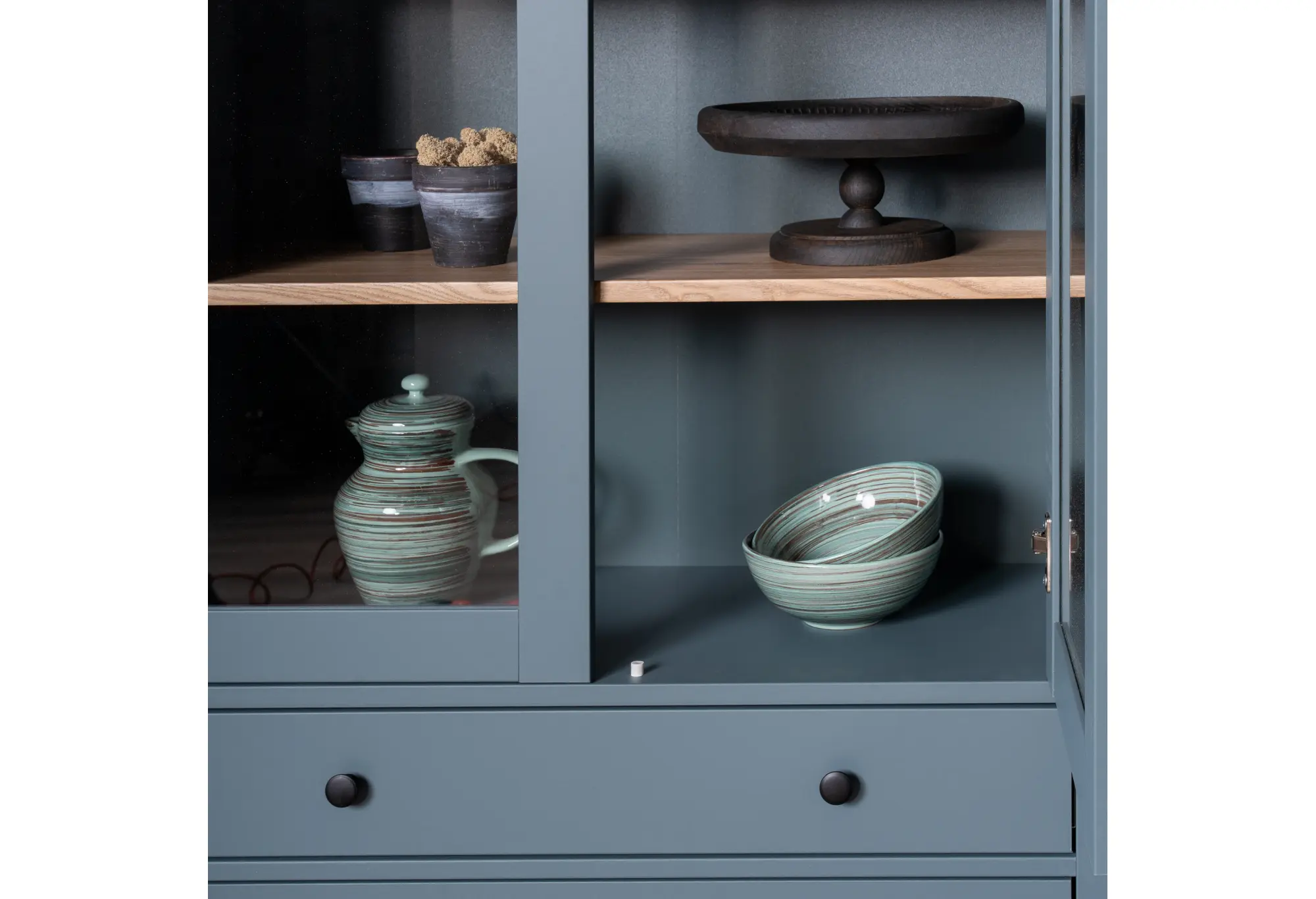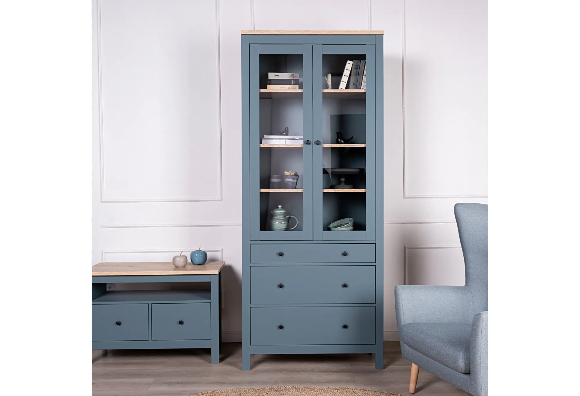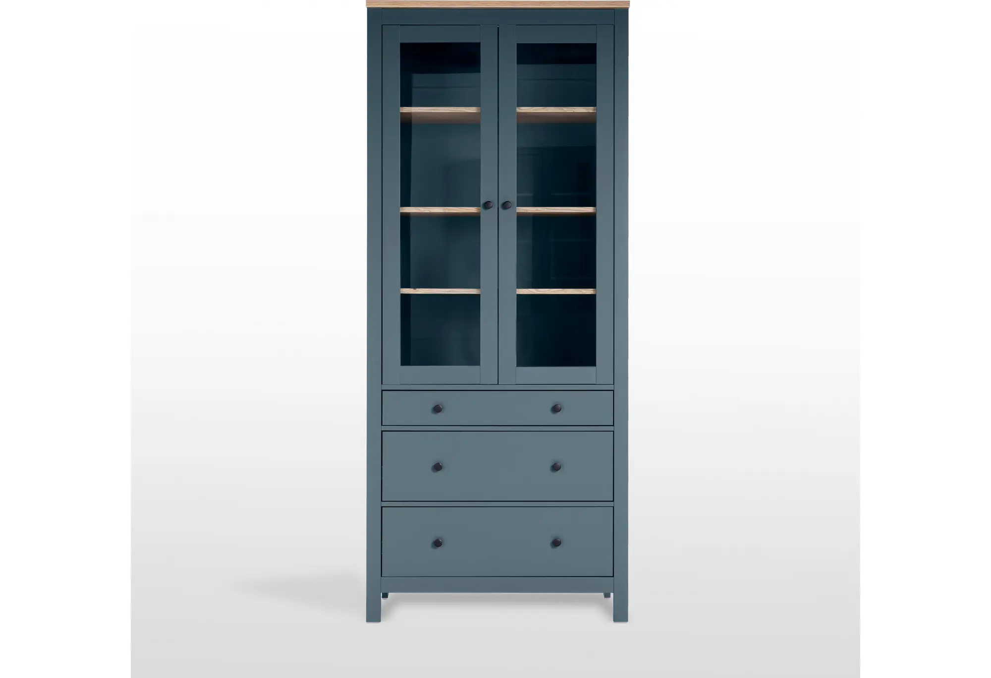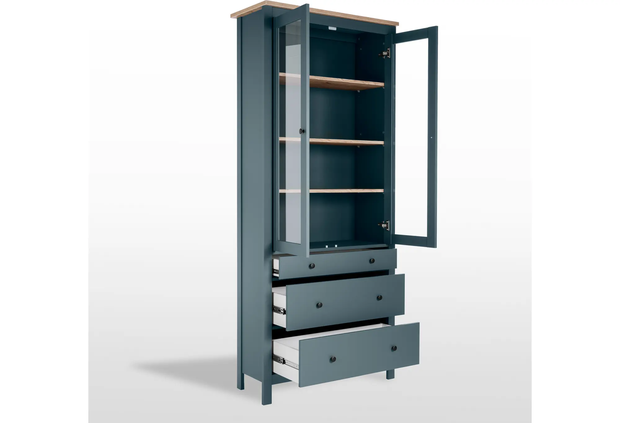 2.08.07.130.16 САГА шкаф с витриной 90 темно-бирюзовый/ясень RU