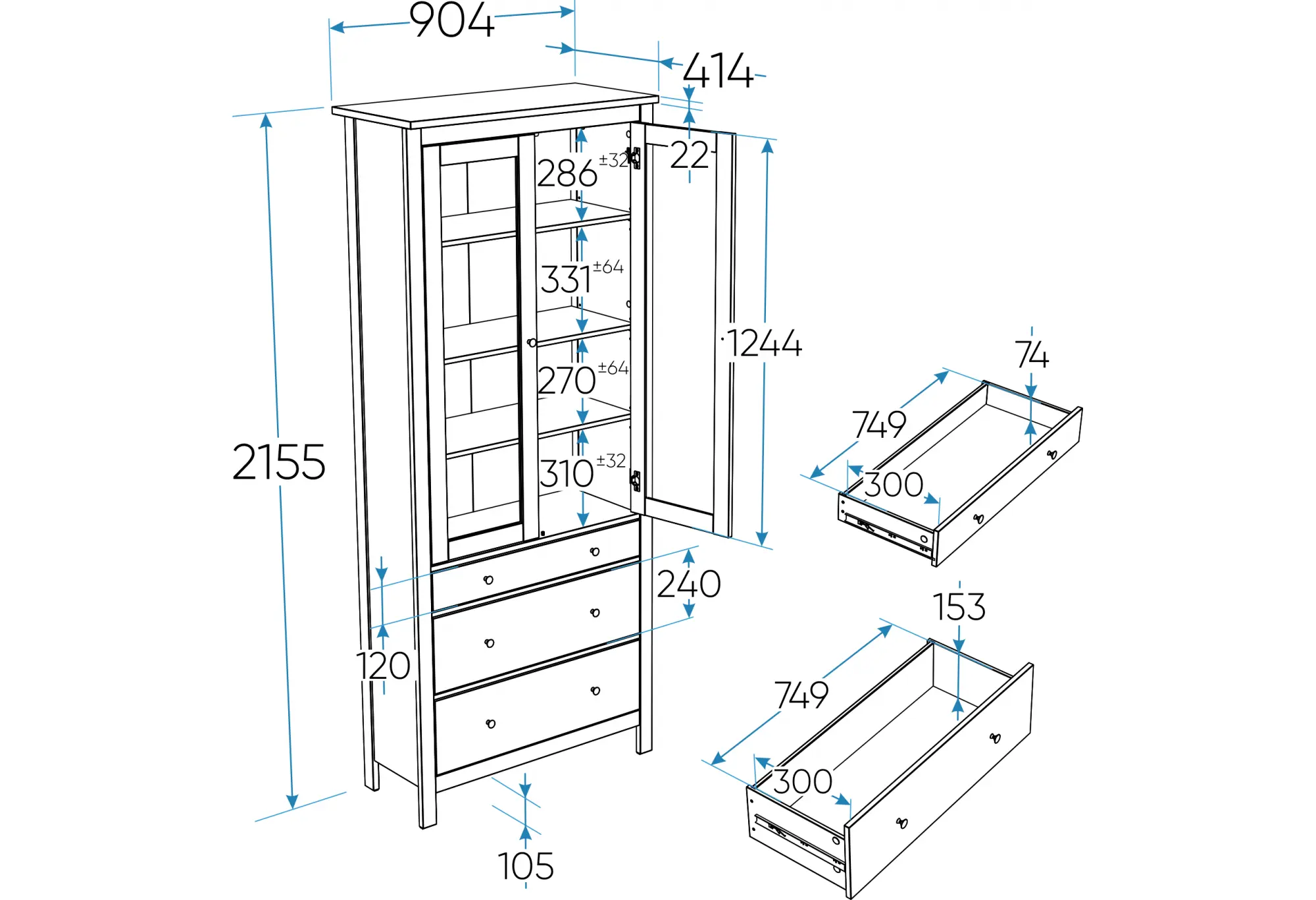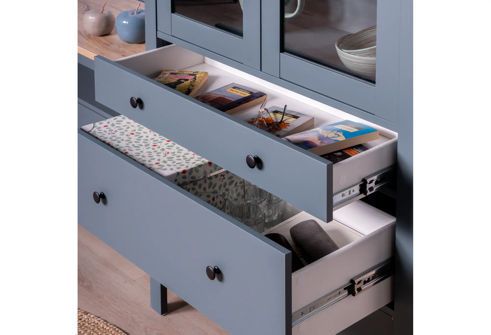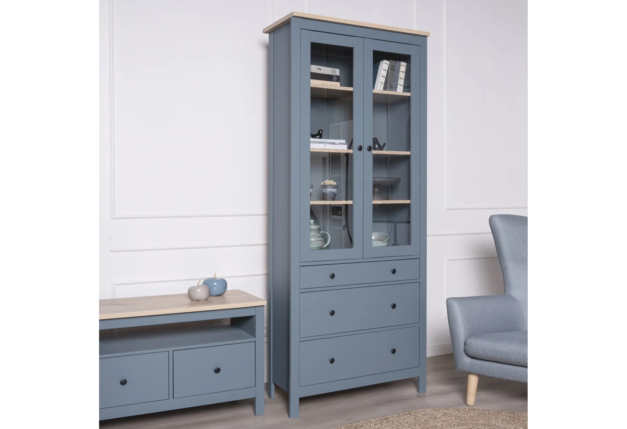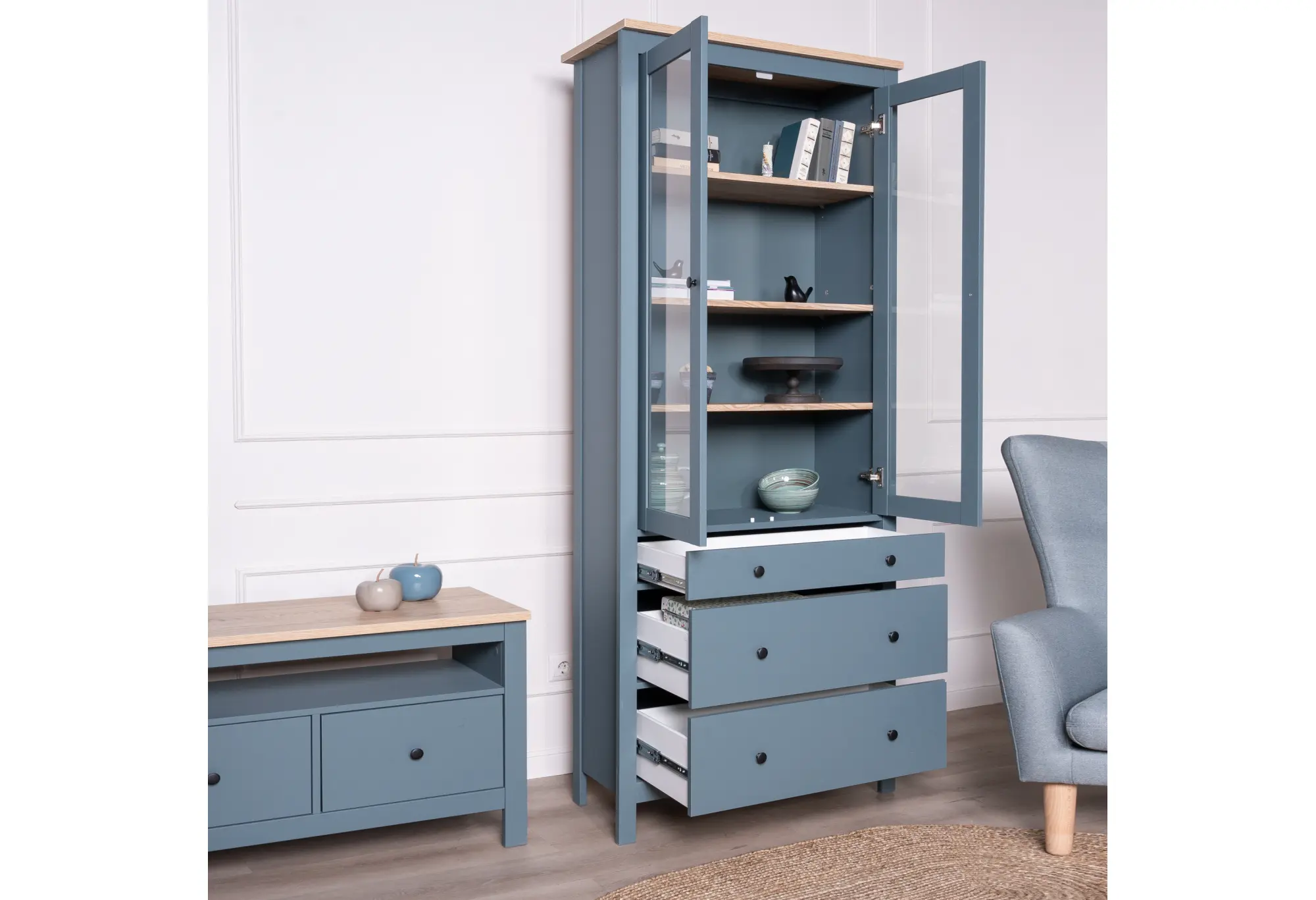 2.08.07.130.16 САГА шкаф с витриной 90 темно-бирюзовый/ясень RU