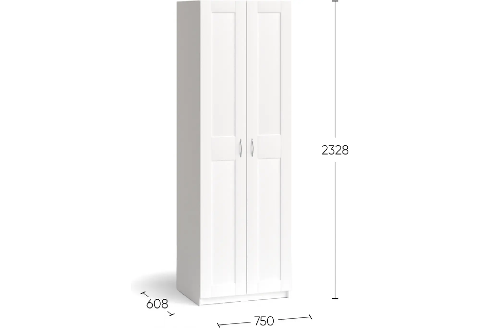 Шкаф МАКС для одежды двухдверный, 750х610х2330, цвет Дуб Сонома. Укомлектован двумя полками и штангой для вешалок. Изготовлен из кашированного ДСП толщиной 18 мм. Крепится к стене. Гарантийный срок для жилых помещений 24 месяца, для общественных помещений - 18 месяцев.