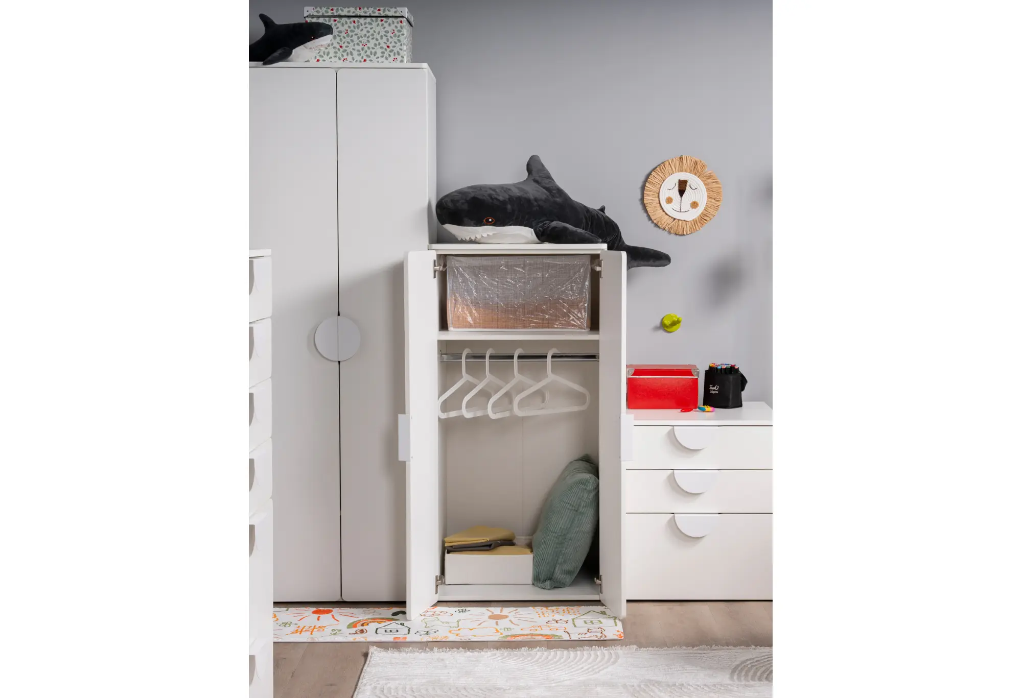 Компактный распашной шкаф ПИКСИ с двумя дверцами и внутренней полкой – практичное решение для небольших пространств. Продуманная высота позволяет разместить его в детской, прихожей, гардеробной или офисе, не перегружая интерьер и не занимая лишнее место.