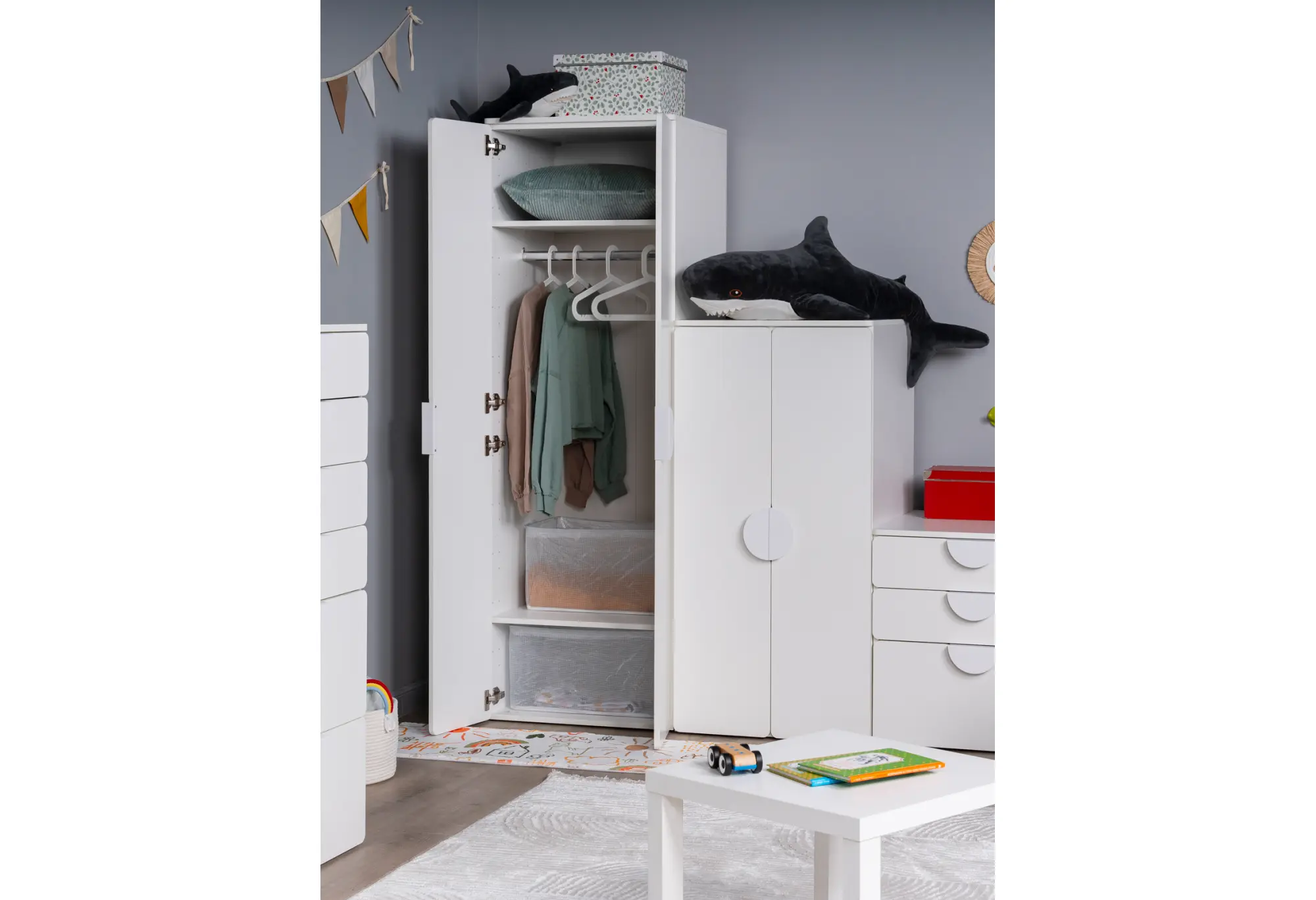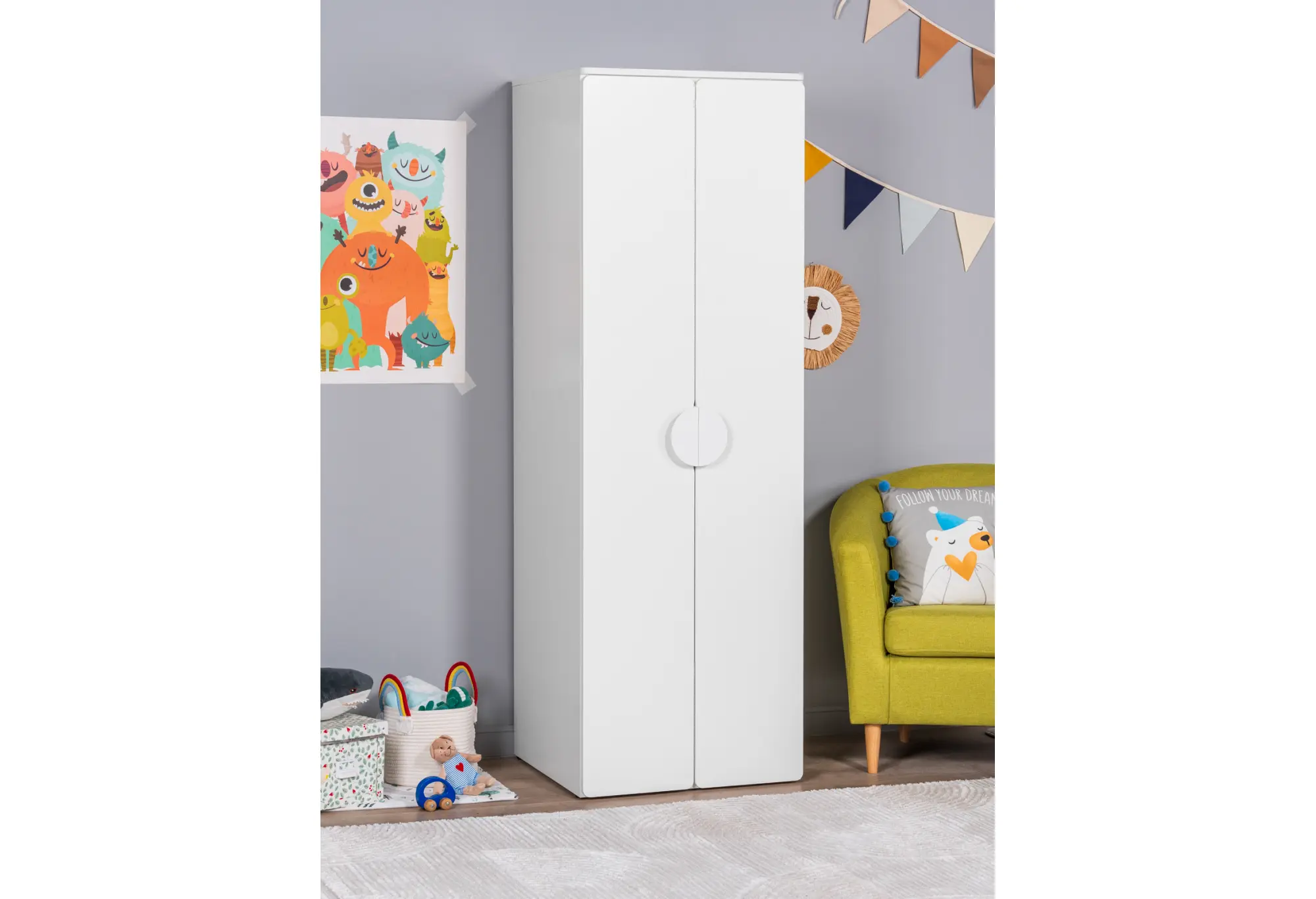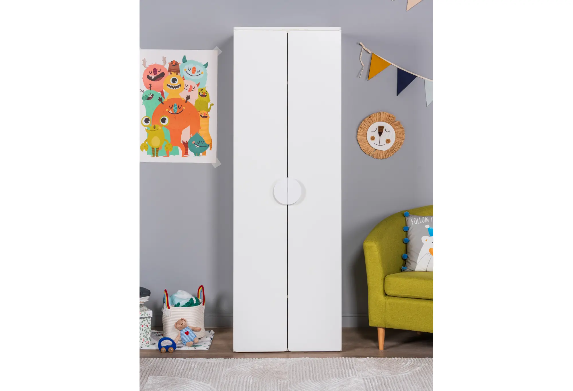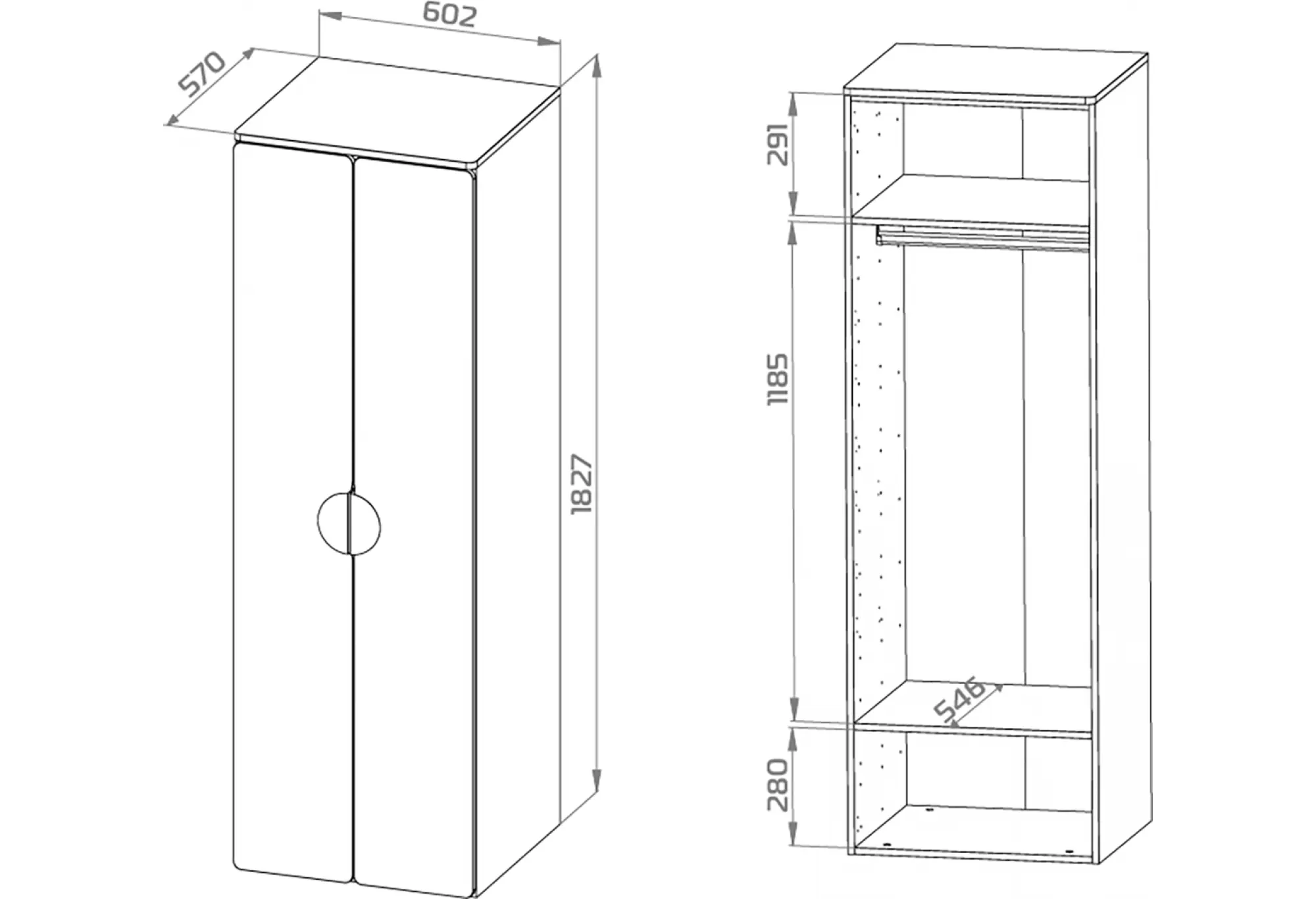 S02085 ПИКСИ шкаф распашной с 2 дверьми и полкой 60x57x183, робкий подснежник