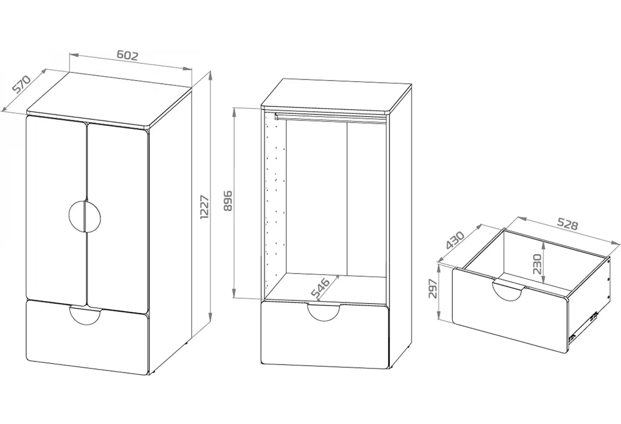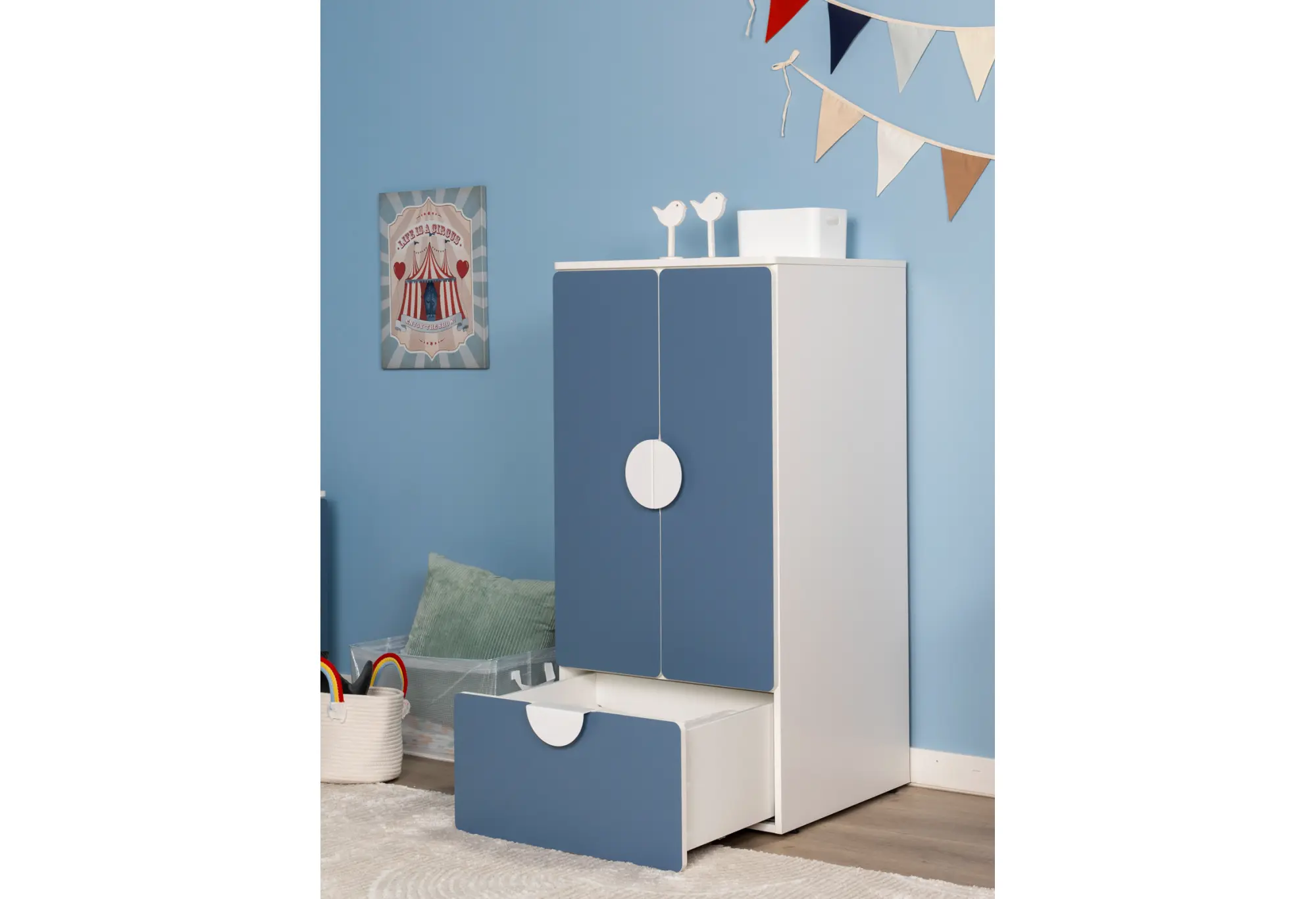 S02481 ПИКСИ шкаф распашной с 2 дверьми, полкой и ящиком 60х57х123, озорной василек